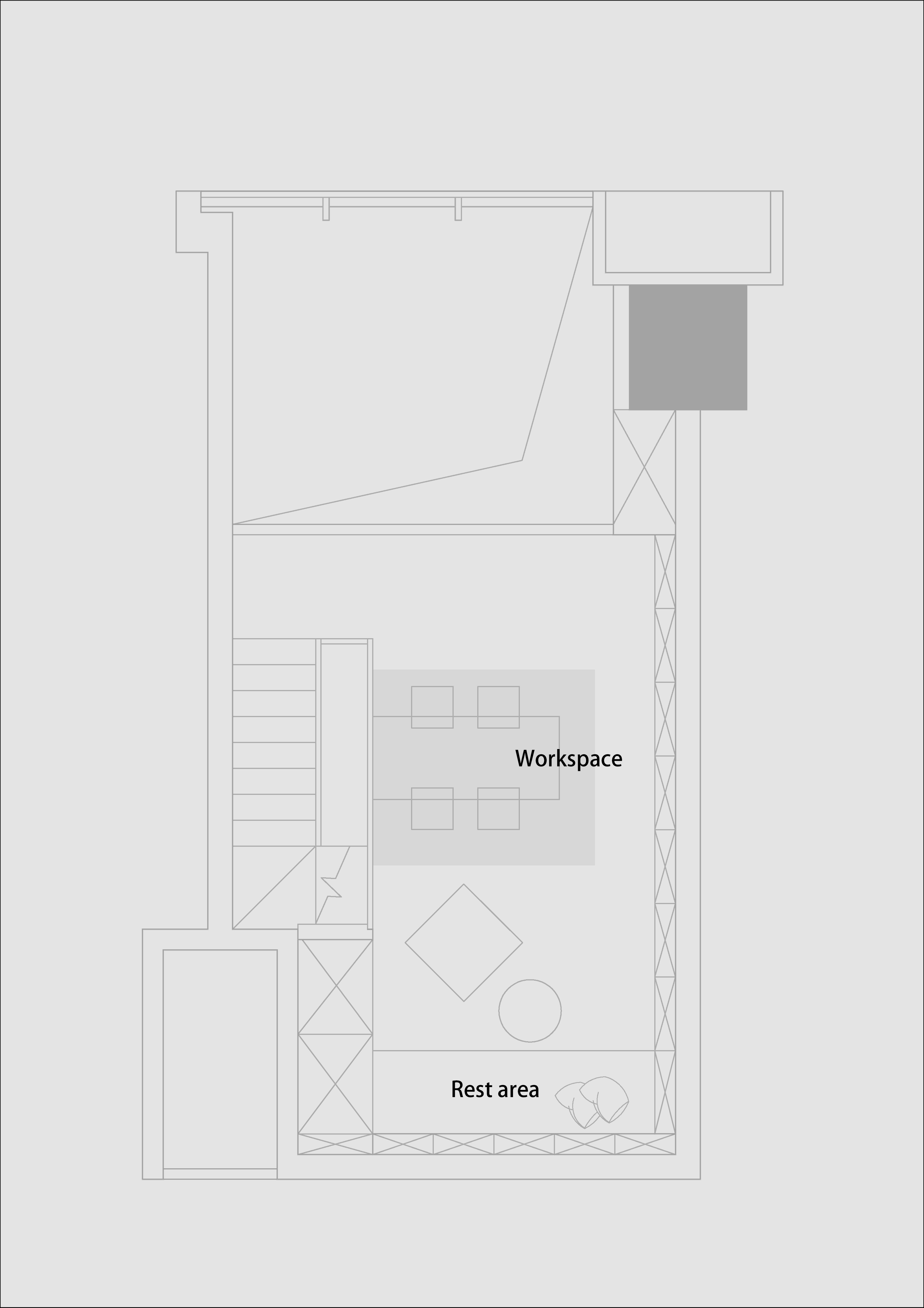 1F主要满足一些必要的接待工作,以及休憩、生活和工作的需求。