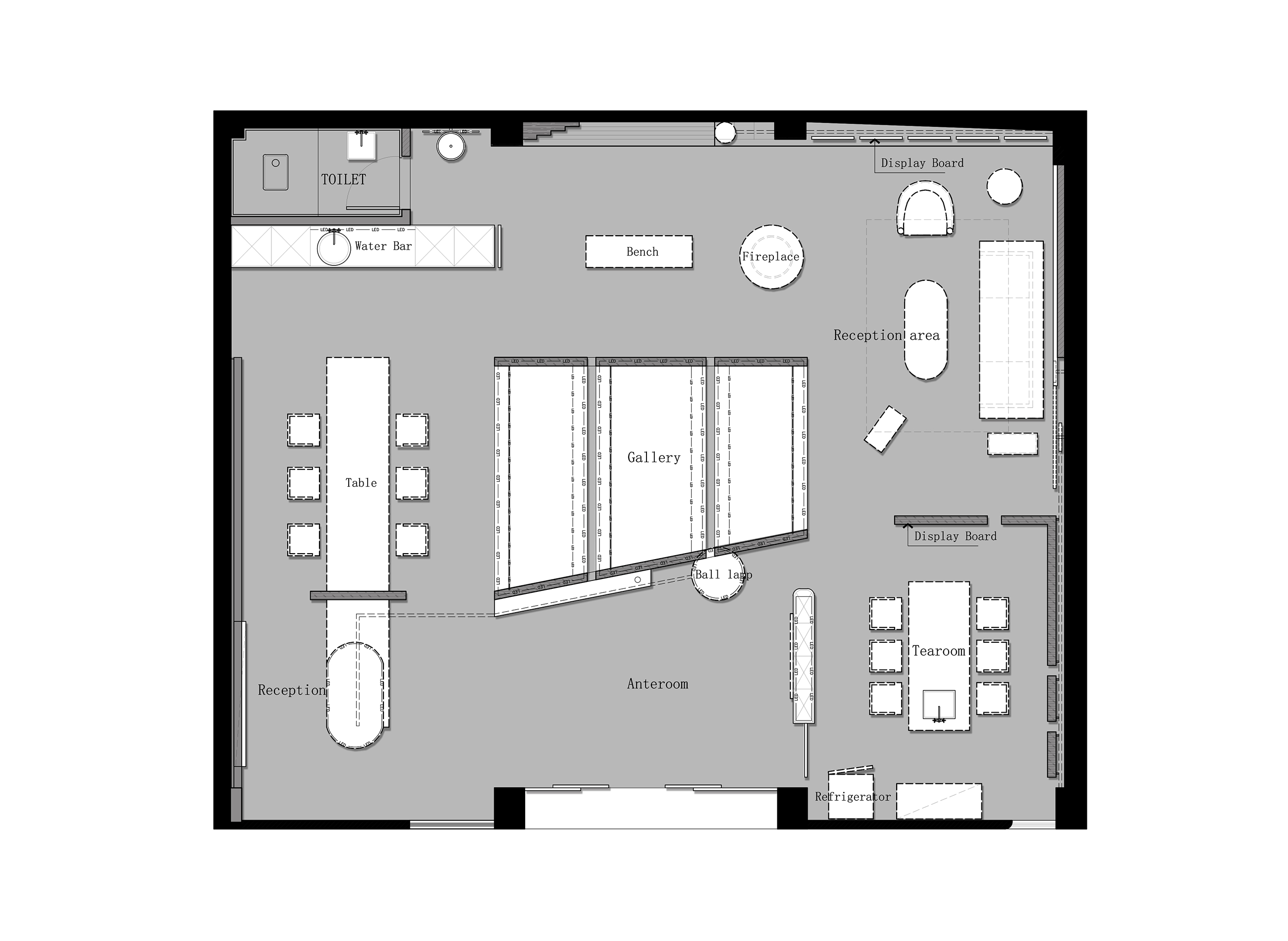 GALLERY 长廊 「时光隧道」以简洁的线条与块面勾勒室内,让空间与结构有序展开的同时满足功能划分,其敞开、通透的处理,让空间之间独立又相互渗透,彼此呈现出对话性、互动性、趣味性。