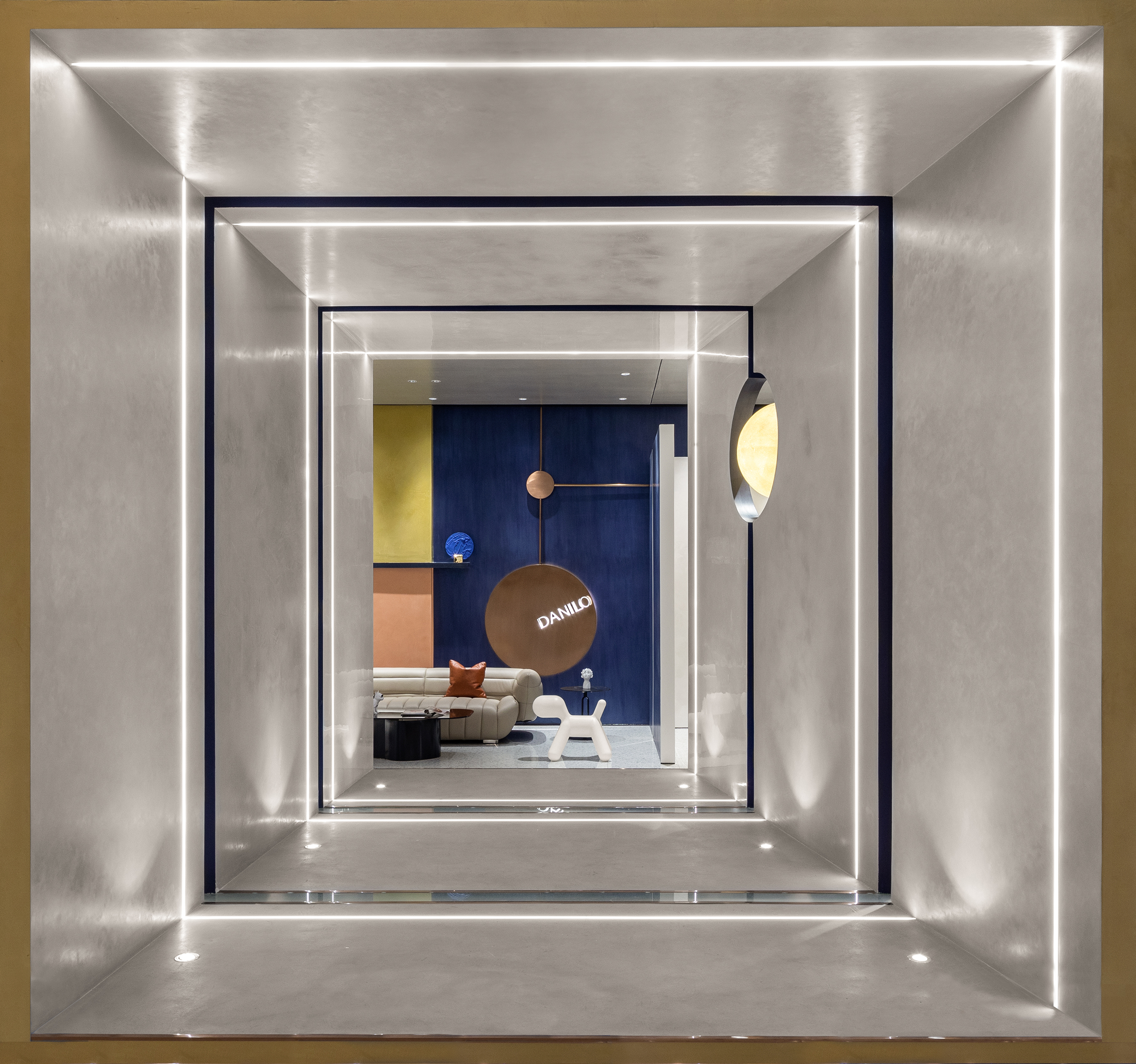 项目定位:该项目为金华达尼罗艺术漆展厅,以艺术为中心,结合不同事物的材质特性,让人置身于超现实主义的画作里,令空间和画作再次联动共生,摒弃传统艺术漆展厅的模式,打造参观、交流等多种场景的互动沉浸体验式展厅,增加空间的互动性与趣味性。