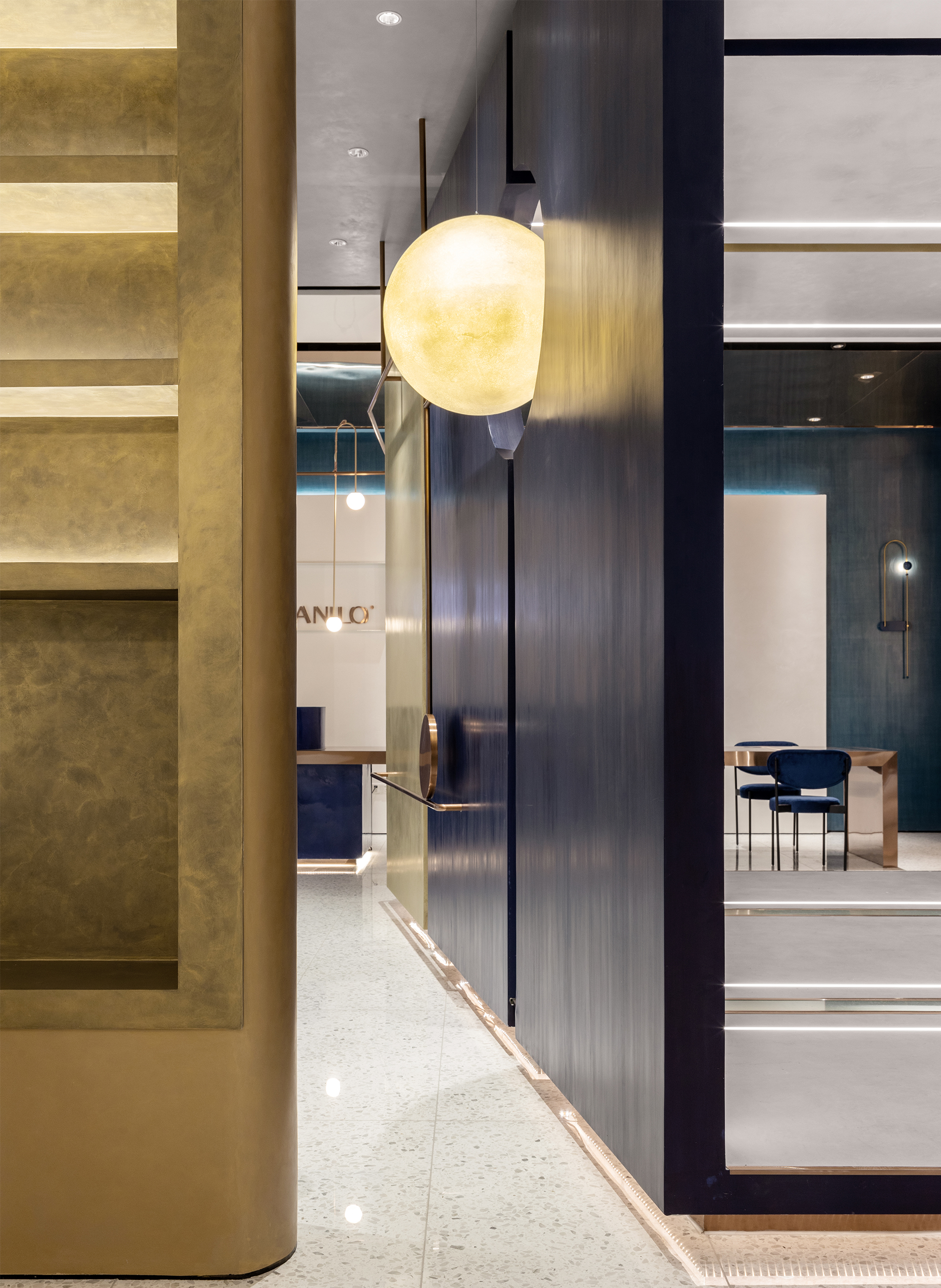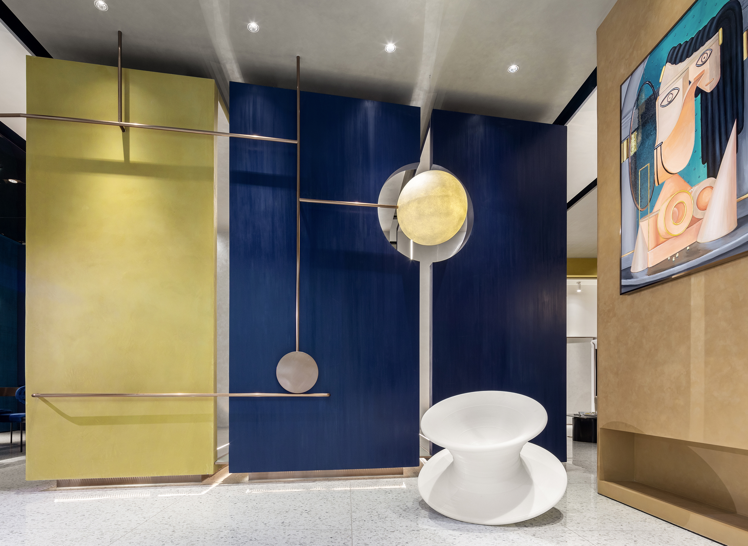 ANTEROOM 前厅 明亮轻快的黄色,与蓝色的神秘高雅形成了完美的互补,绚丽的对撞犹如明月高悬的夜空,藏纳万千风华。