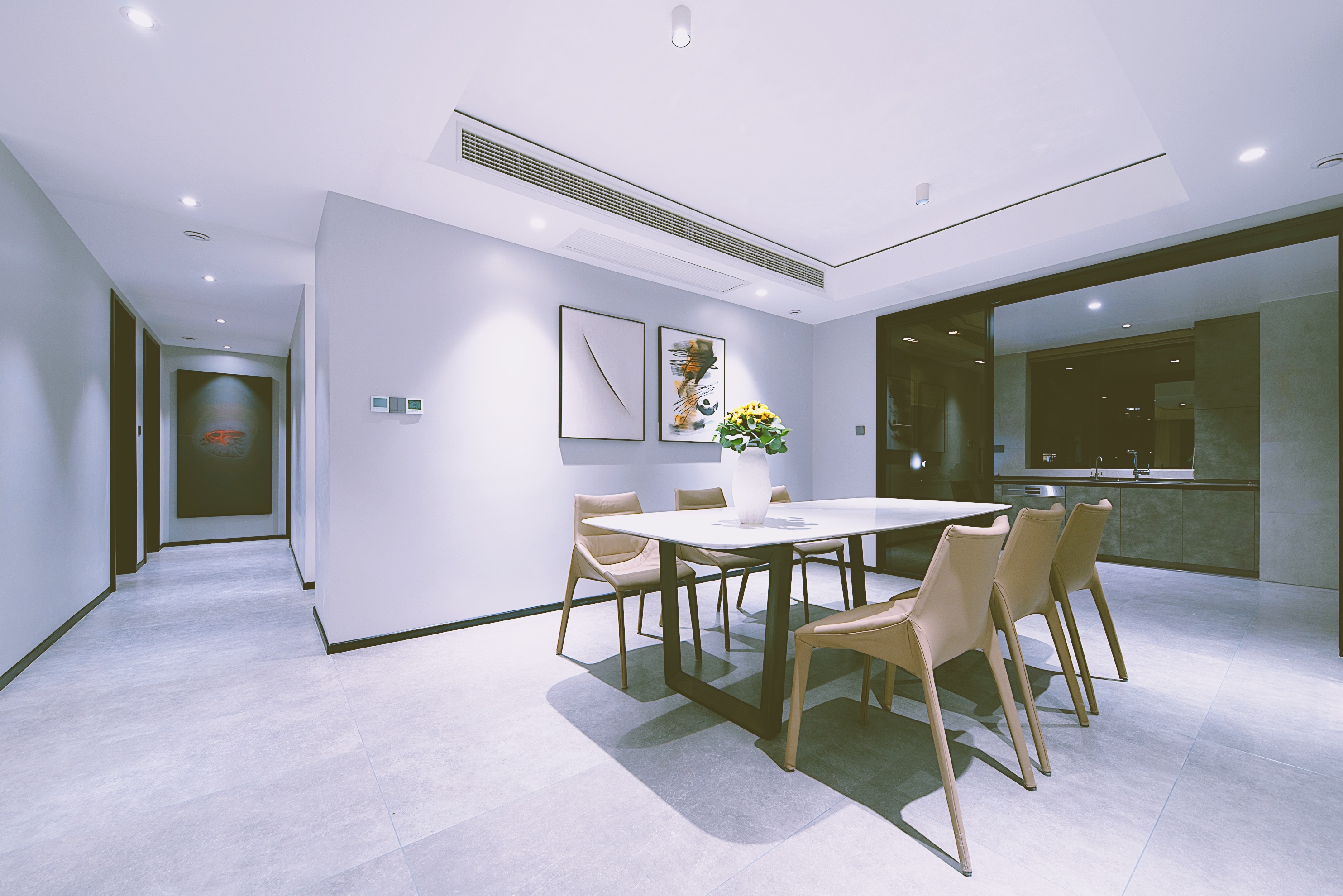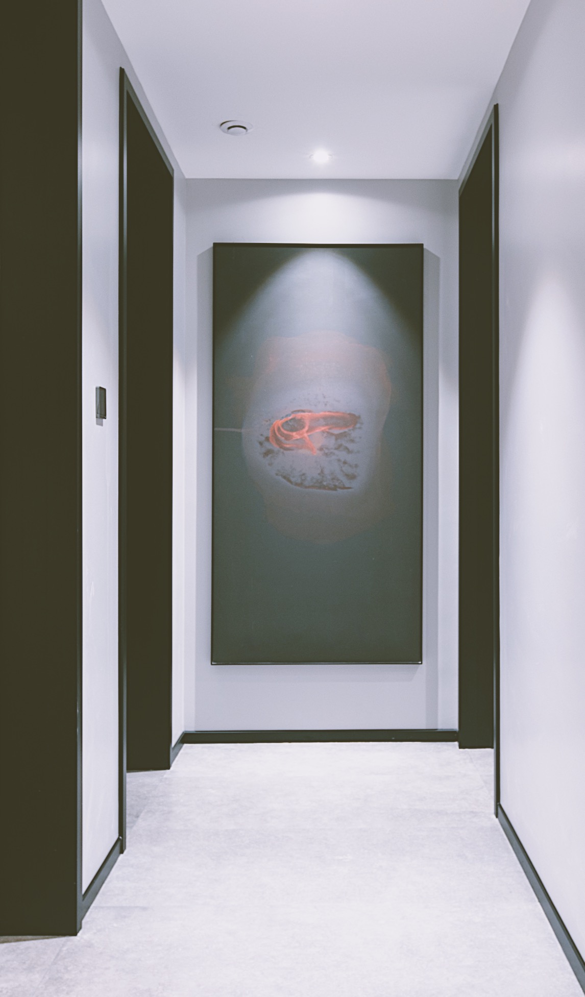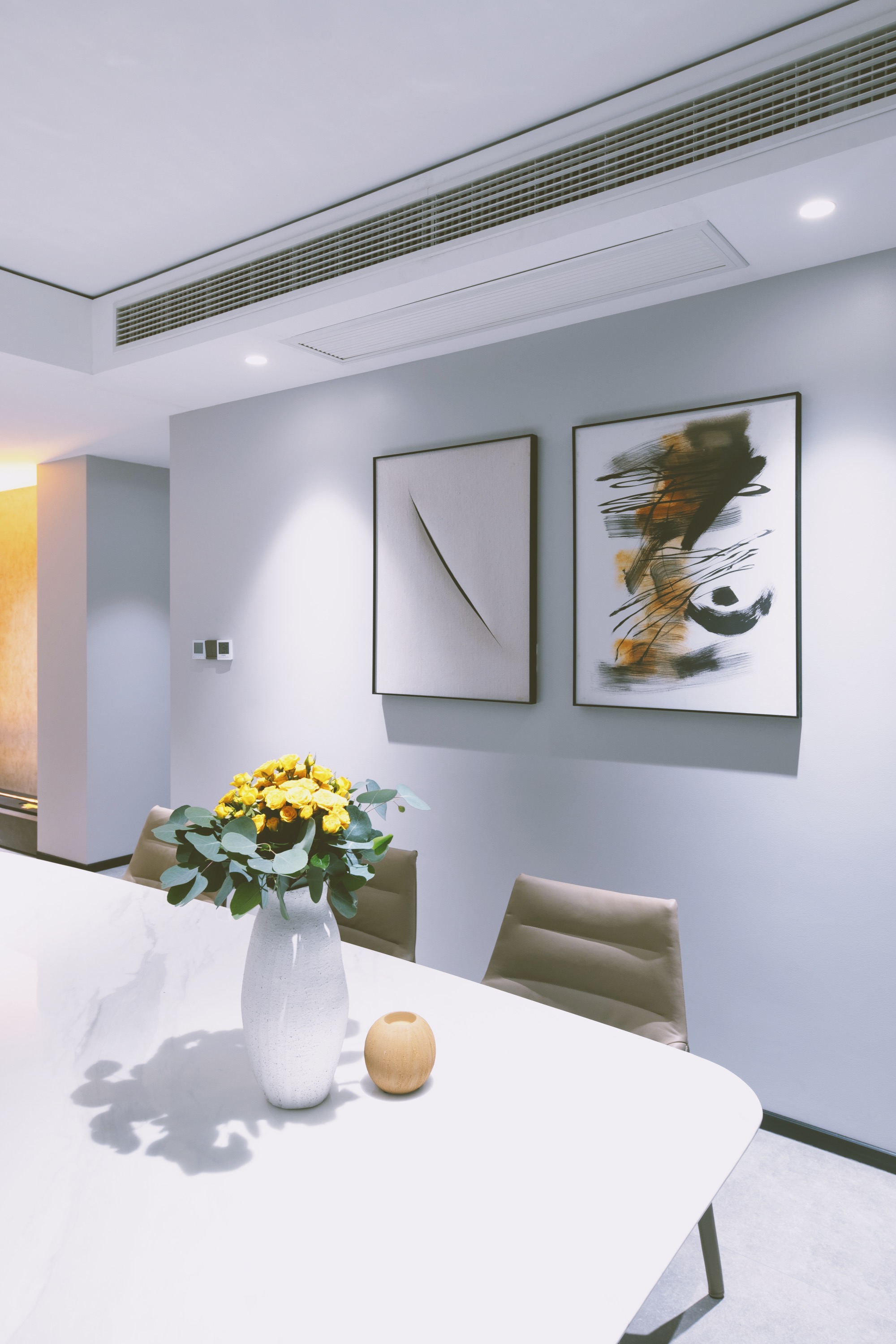 走廊的色彩明亮,灯光充足,弥补了阳光不能直射的弊端,墙面上挂着我们为业主精心挑选的装饰艺术品。