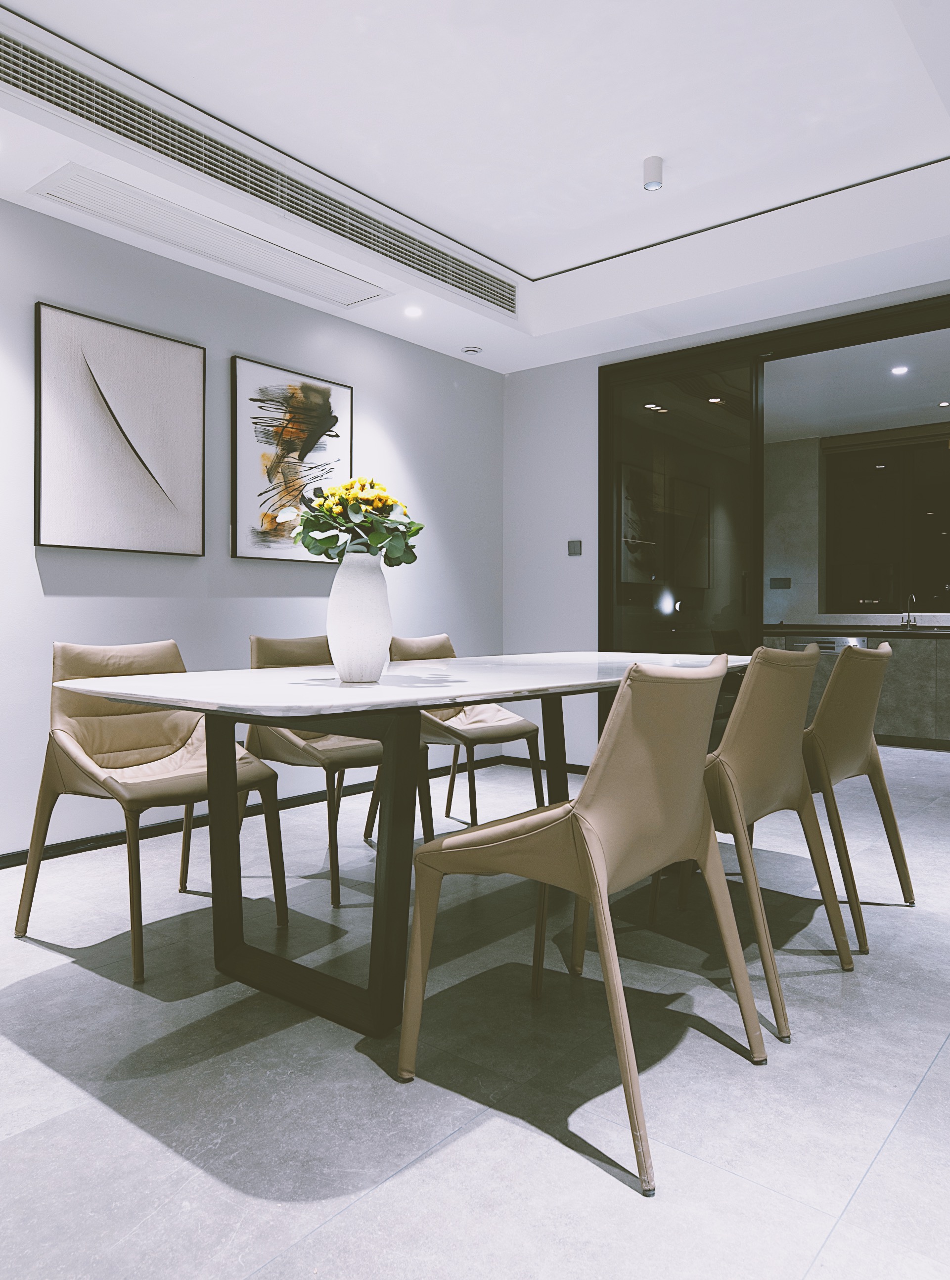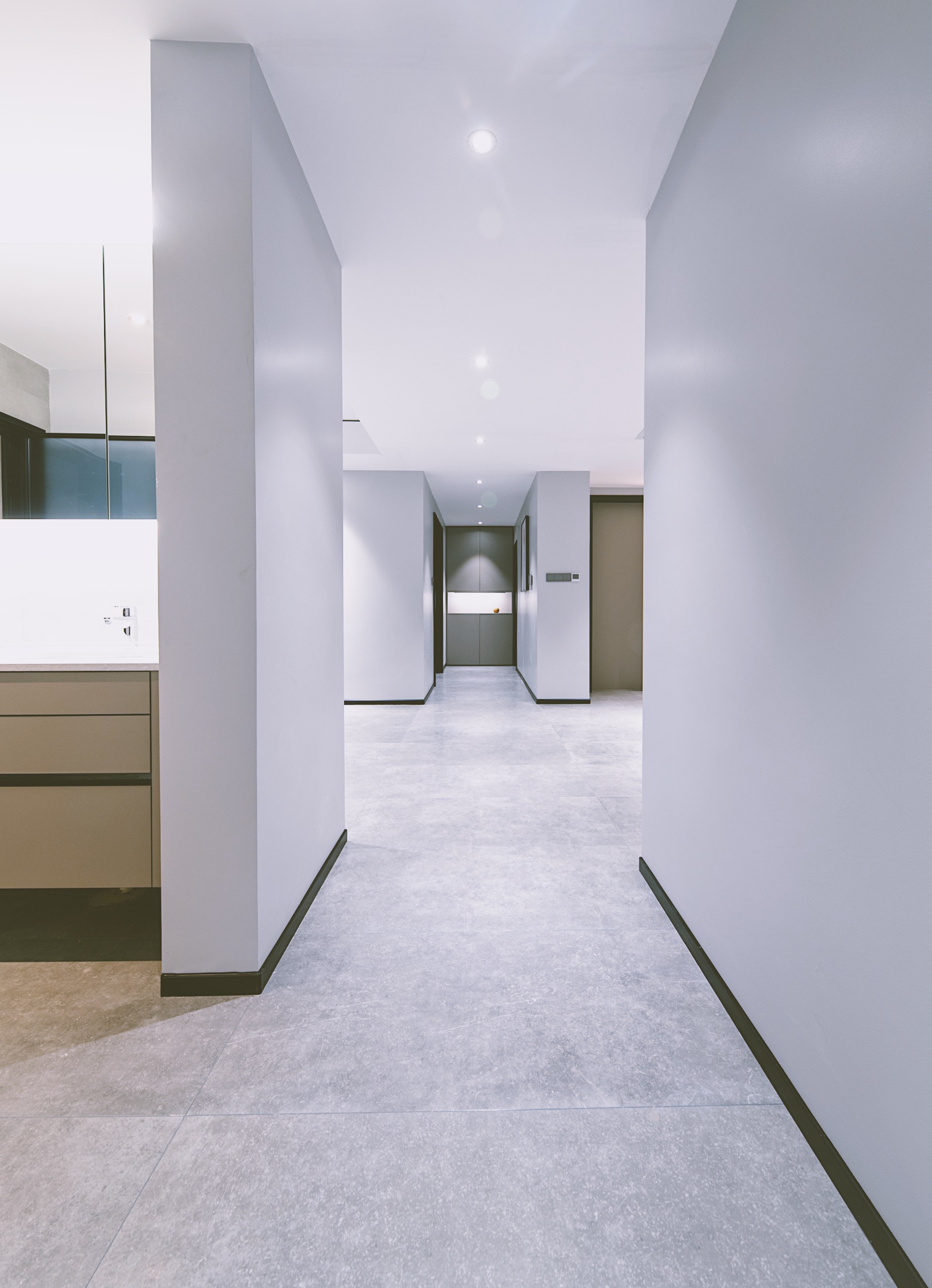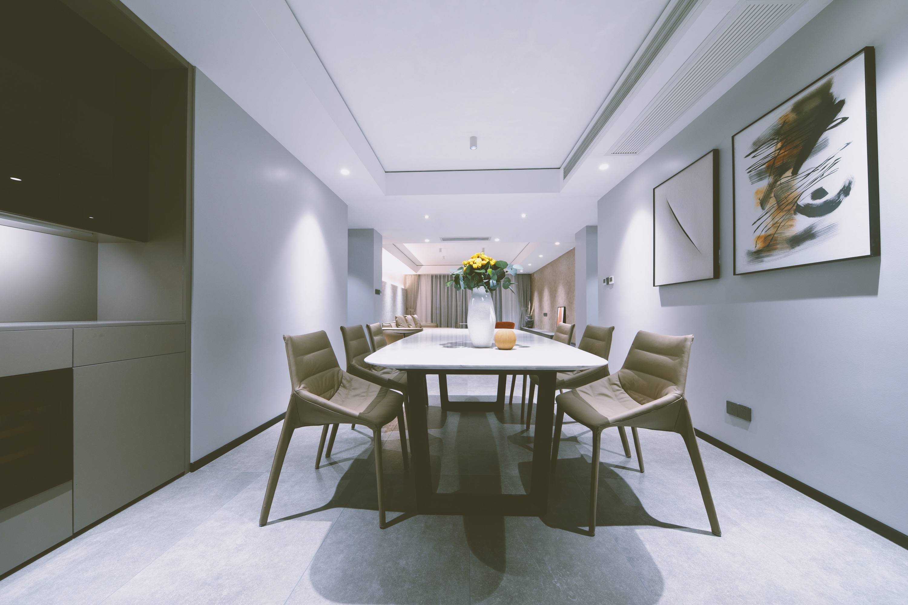 走廊的色彩明亮,灯光充足,弥补了阳光不能直射的弊端,墙面上挂着我们为业主精心挑选的装饰艺术品。
