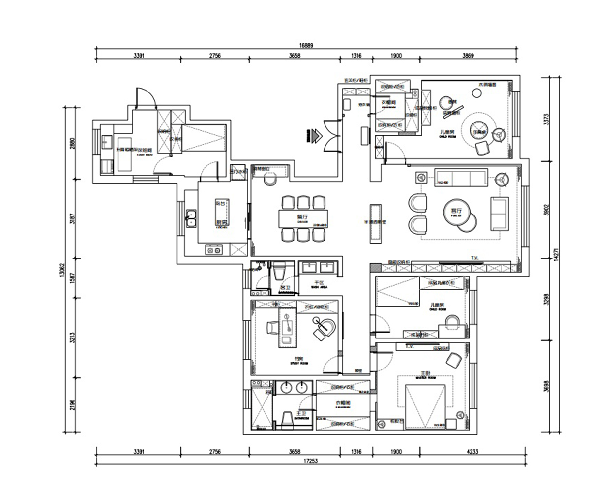 半开放的厨房空间更综合解决了家人的功能需求。
