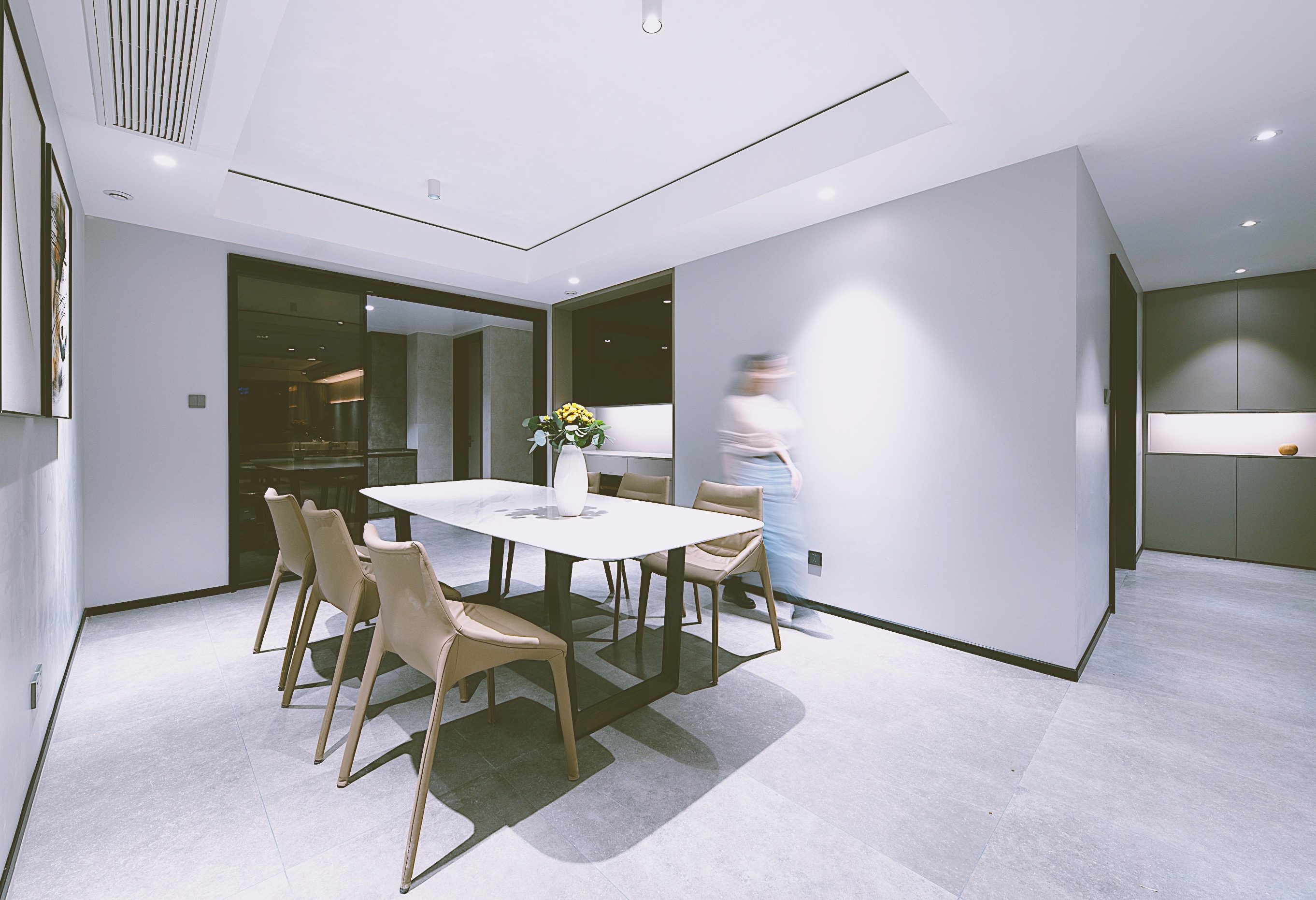 空间布局:空间中没有明显的储物空间,而是在将储物空间进行了隐藏。