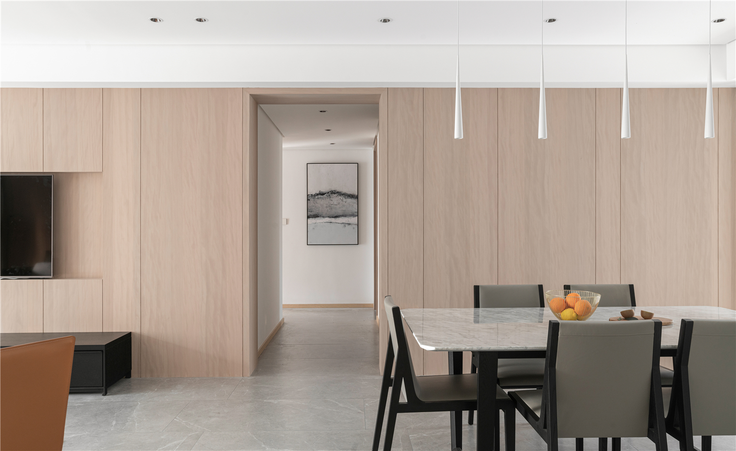 浅淡的木色主调从入户起便酝酿着自然的气息,没有高冷的隔阂,更适合家人之间的亲近。 -