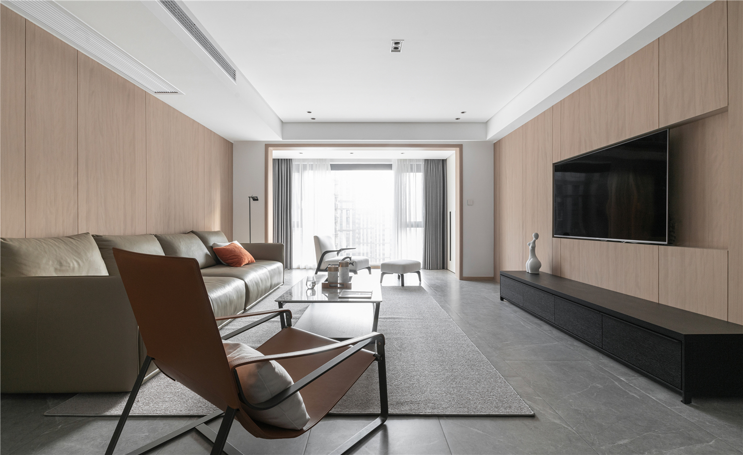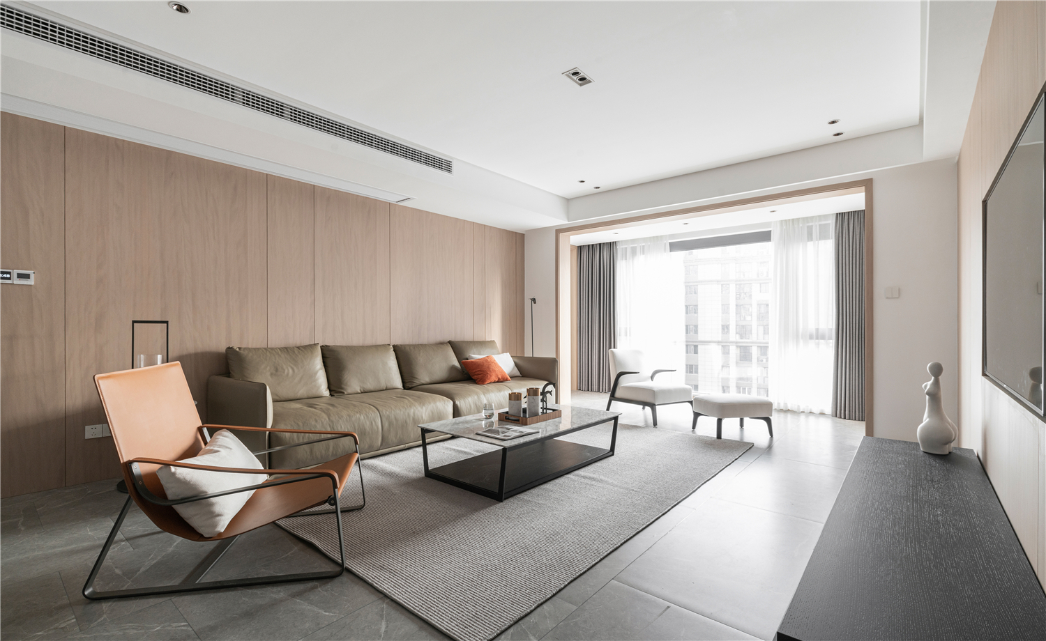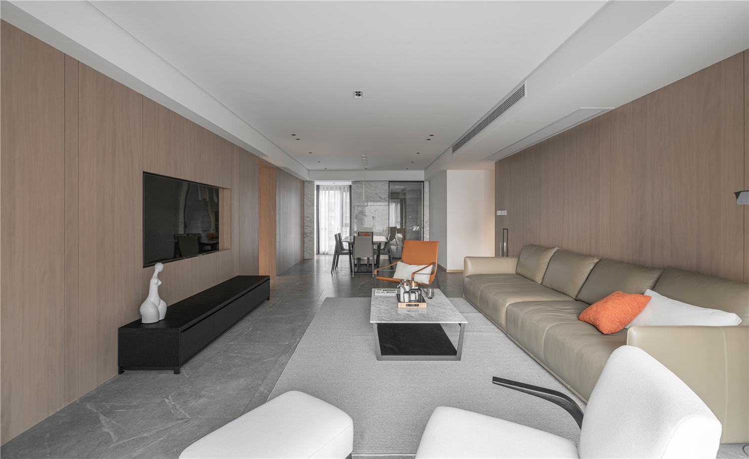项目定位:本案为三室两厅两卫的大平层住宅,实际面积约为200㎡,是一对小夫妻的婚房。本案呈现了现代极简风格,在整体布局方面满足了一个三口之家的使用需求,整体效果简洁明快。