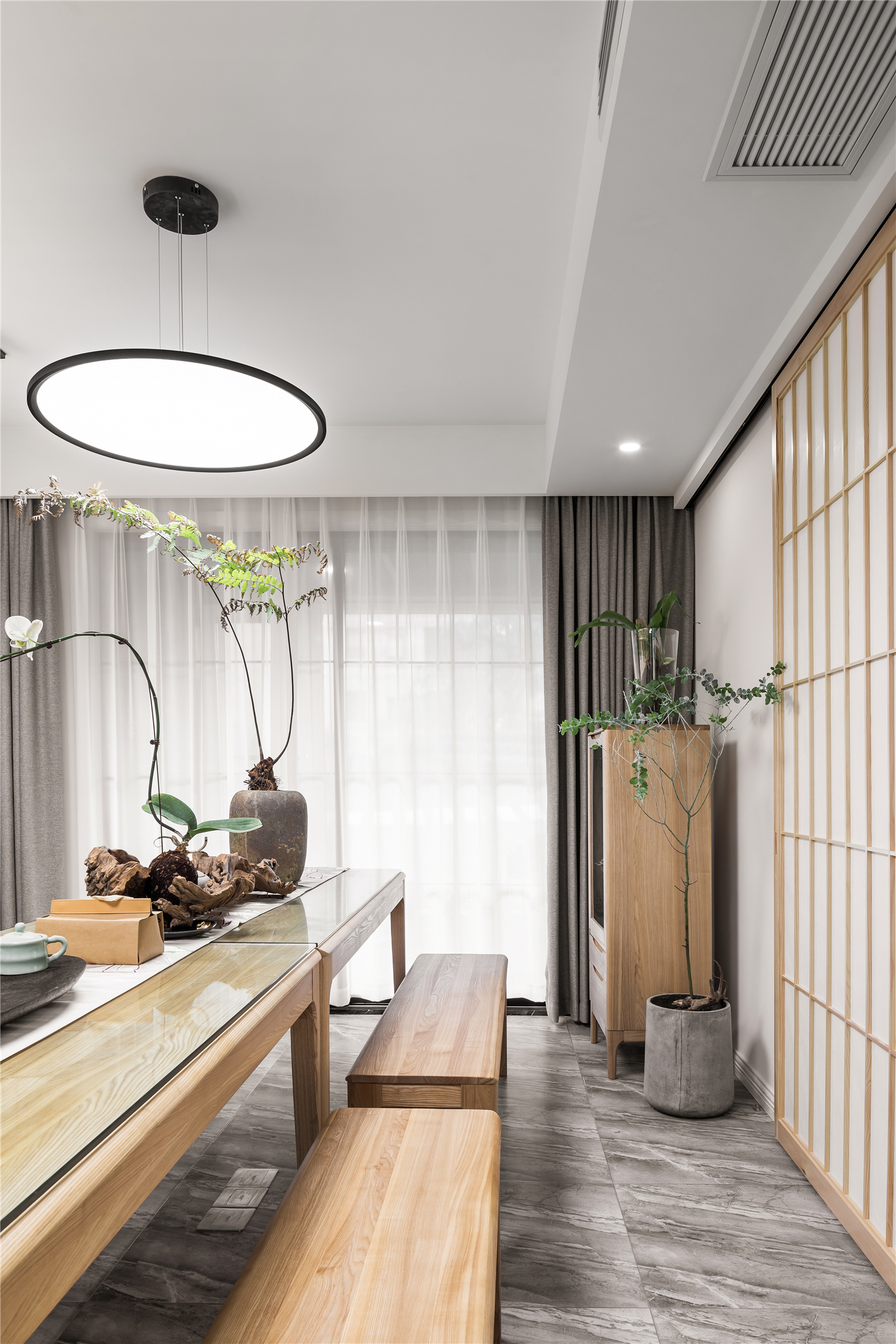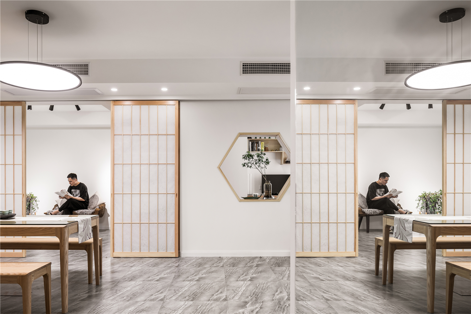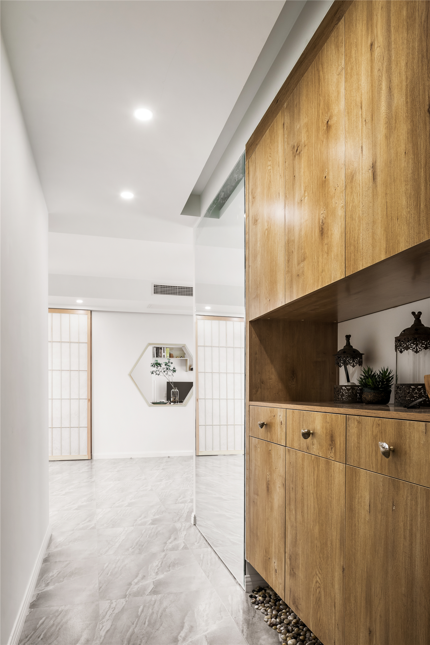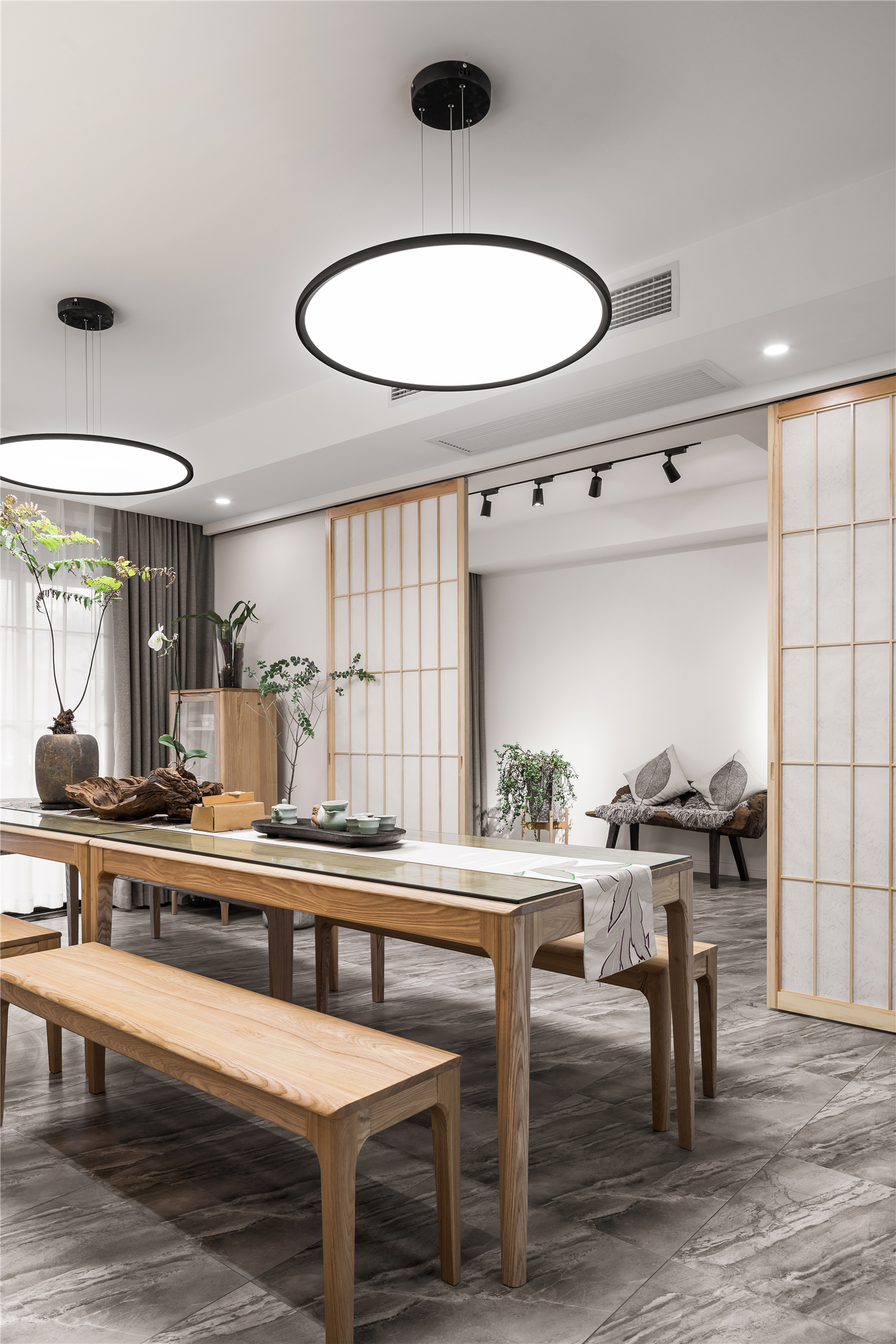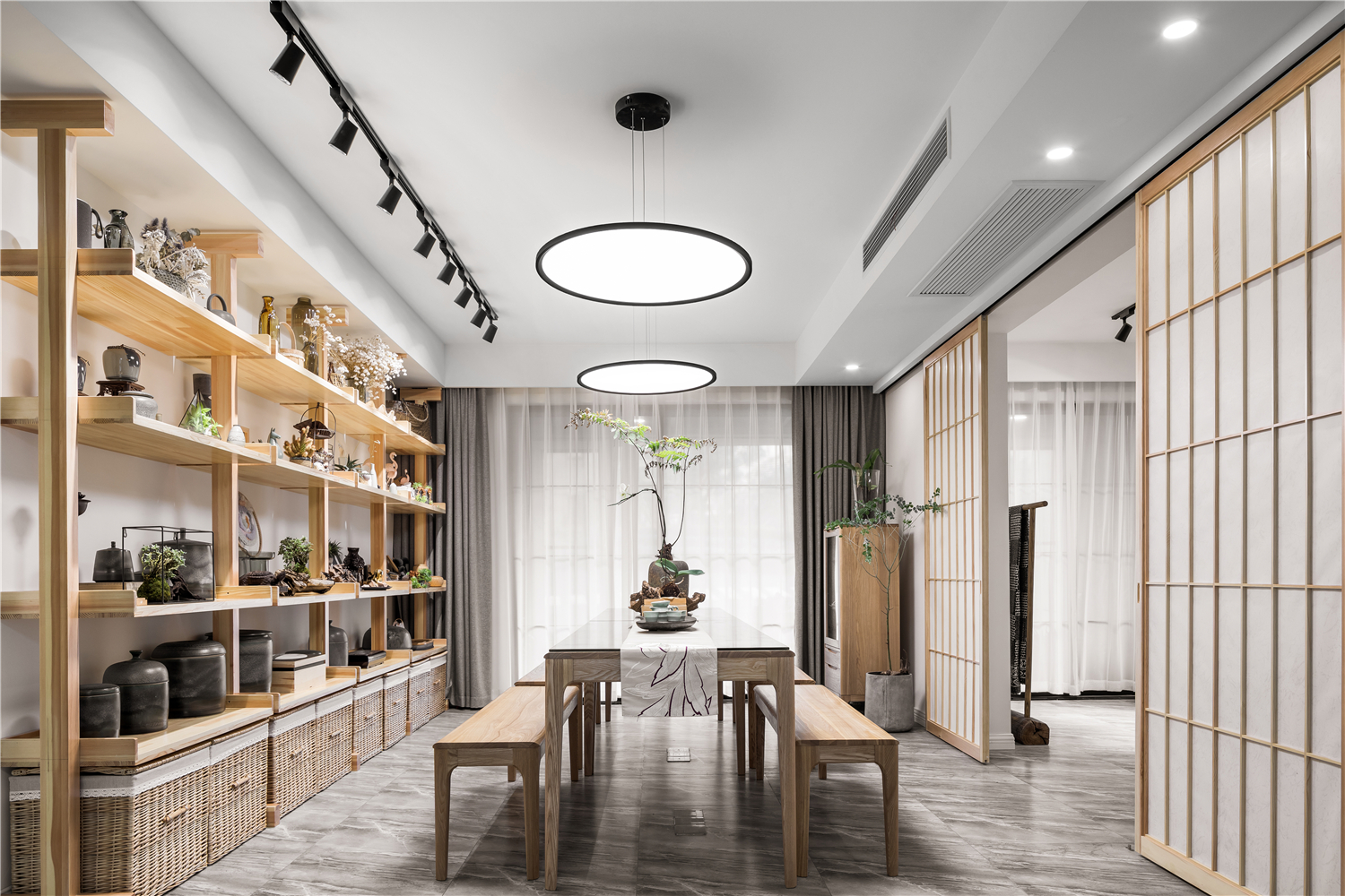 :各处的木质隔断移门在作为装饰的同时