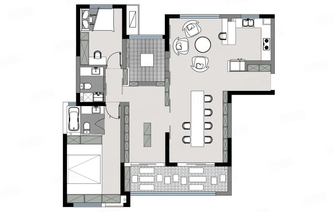 项目定位:本案原本是四房两厅两卫的户型,经过改造后变得与众不同。第一次聆听男主人的需求时,他的想法甚至说是有点异想天开的。一个家,没有固定的客厅、餐厅,也没有舒适的主沙发、大电视,甚至都没有一张正常的床,感觉一切都是那么异乎寻常。经过几次深入沟通,渐渐了解到,男主人想要的是一种简简单单的生活方式,对于他们来说,生活不仅仅是柴米油盐和早出晚归,还有更多的人生乐趣与爱好,每当结束一天的工作回到理想中的家,便忘却了所有烦恼。