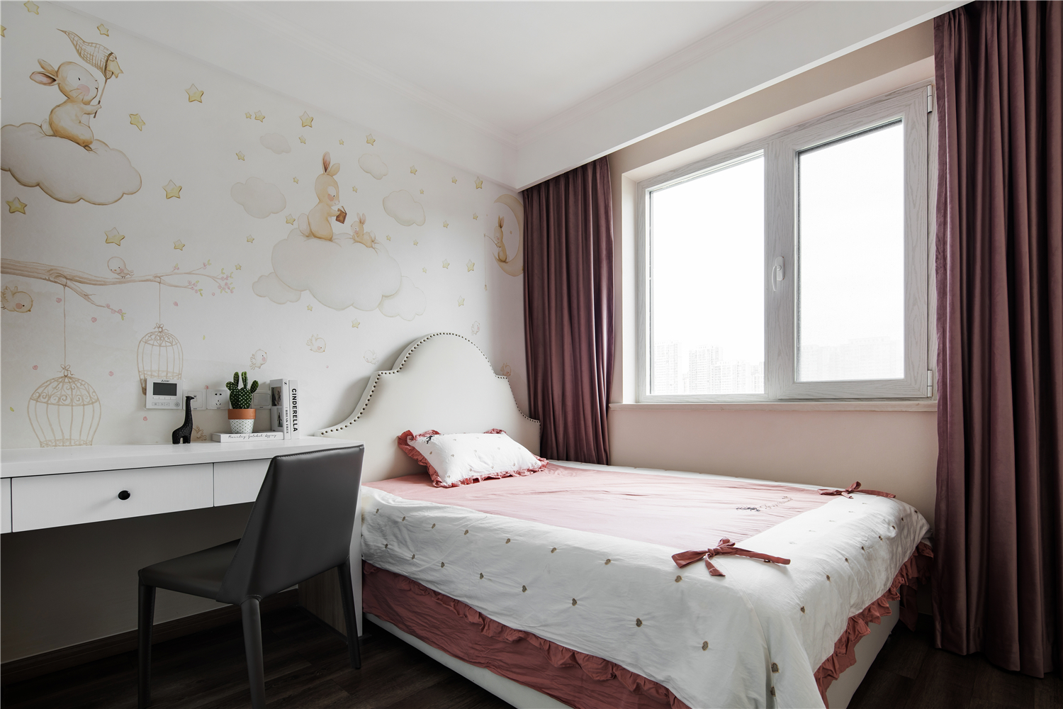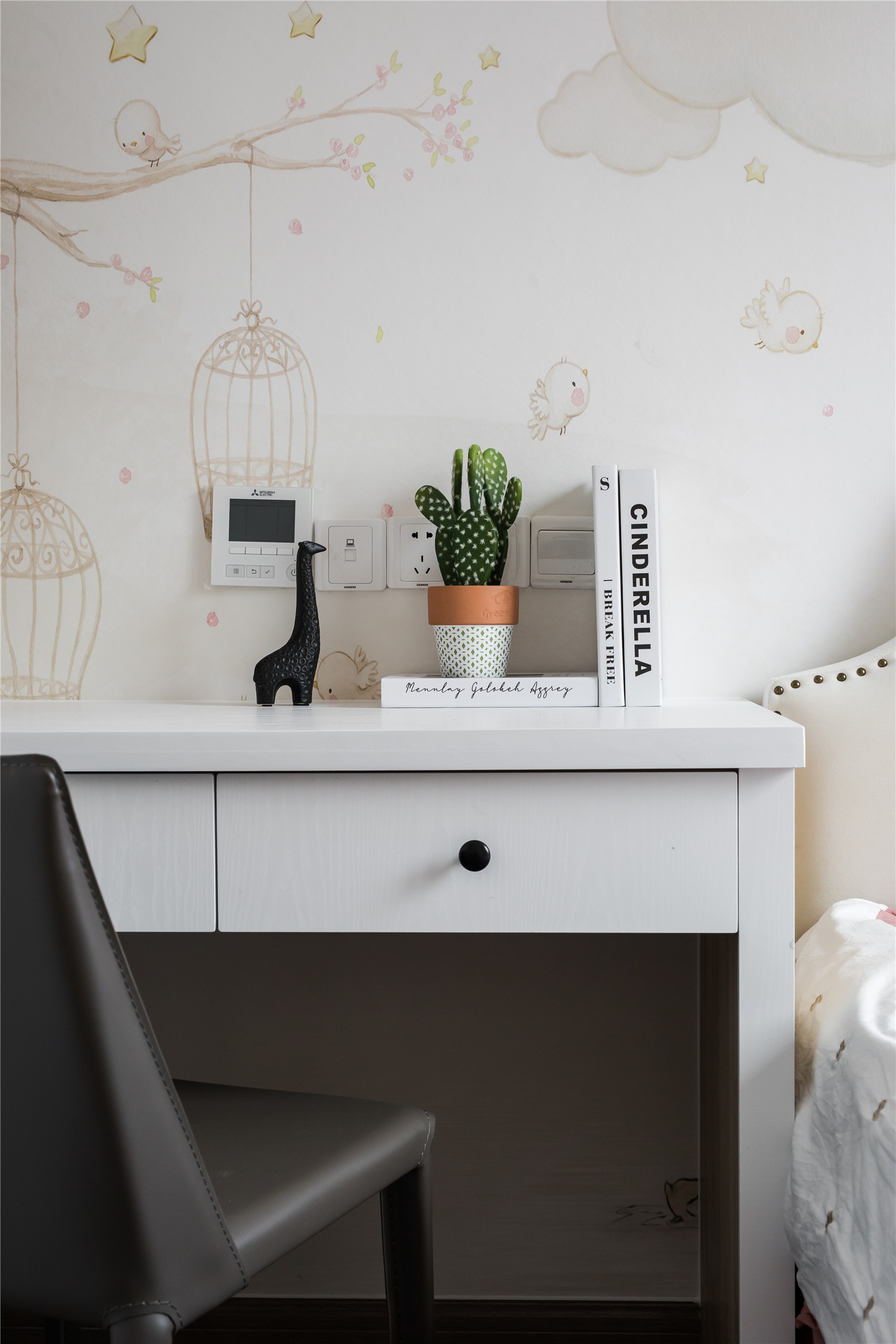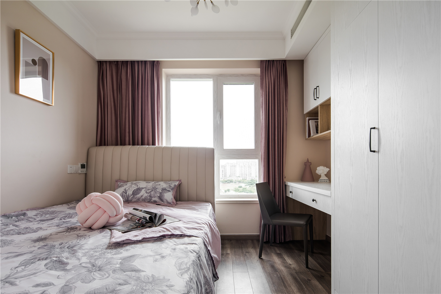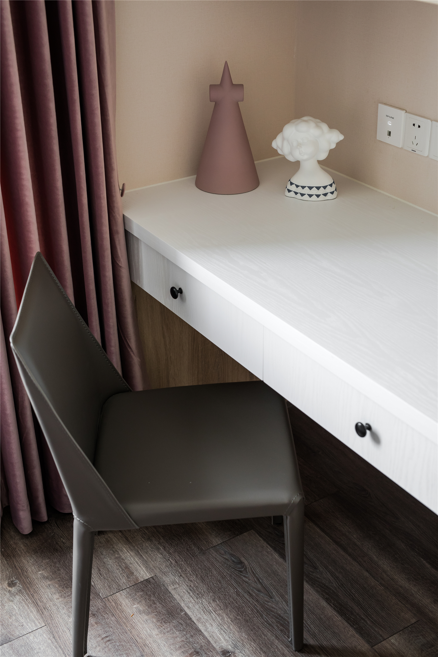 儿童房元气甜蜜的珊瑚粉与白色搭配不显过分甜腻,给小公主们一个糖果般的空间。同时做了书桌衣柜一体式,满足了小公主们学习置物的需求。