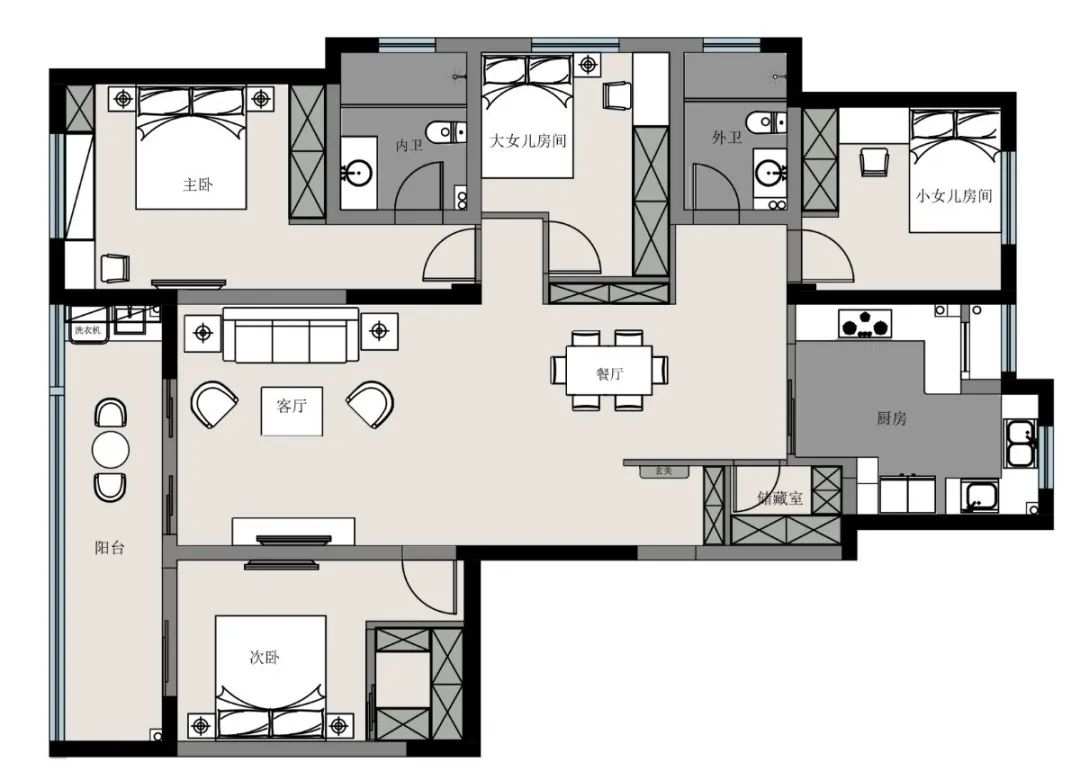 项目定位:家是富有烟火气息和温情的港湾,业主夫妻希望这套房子能容纳大人和孩子的共同期待,能够更加舒适更加方便照顾两个女儿。