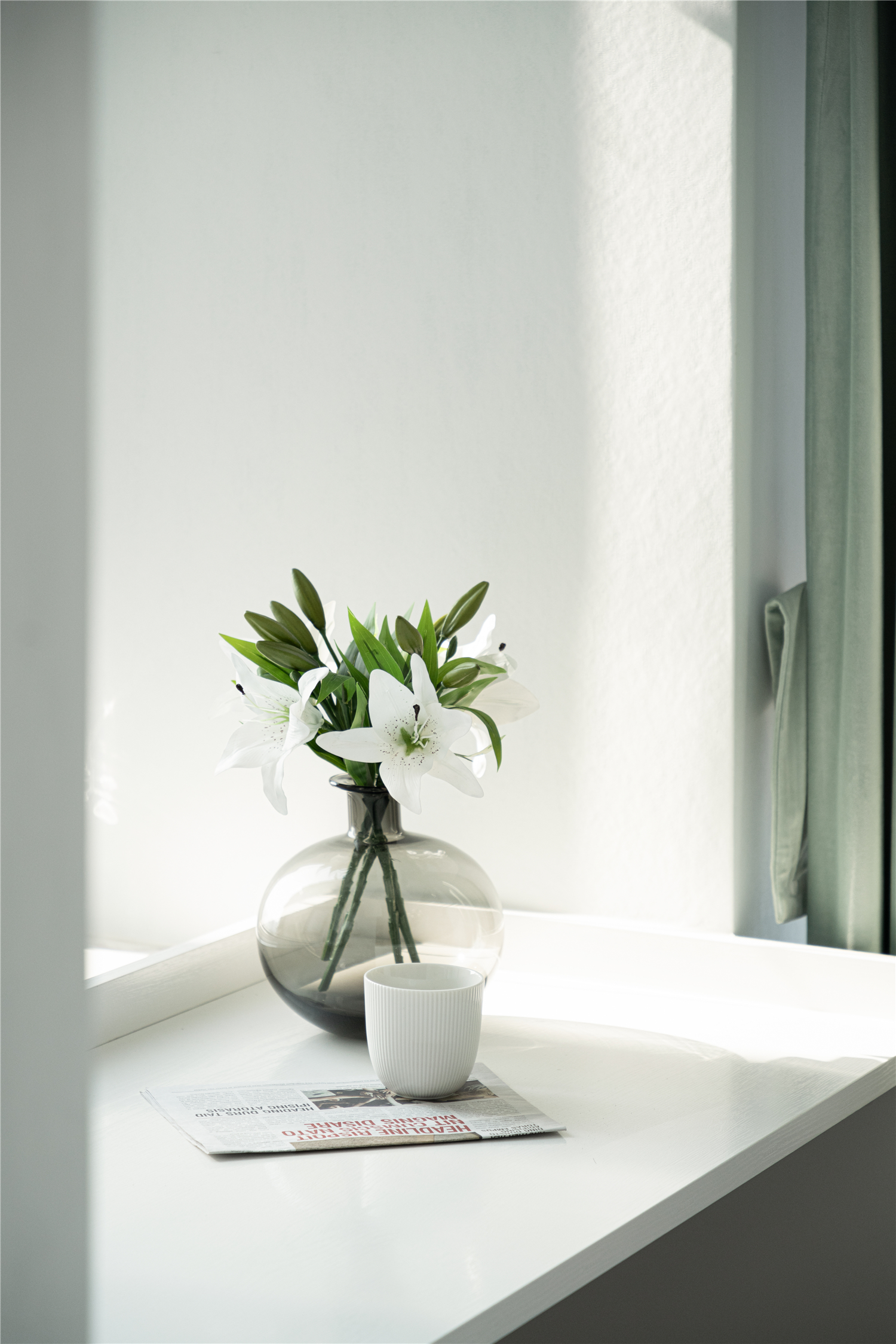 空间意境:“清透的蓝,一片片银白,还有那悠悠的绿,仿佛身处山中的松林,远风走过这片绿色,掀起一阵阵如浪潮般的盛景,静心聆听那簌簌作响的自然之声,心生宁定与欢喜。”
