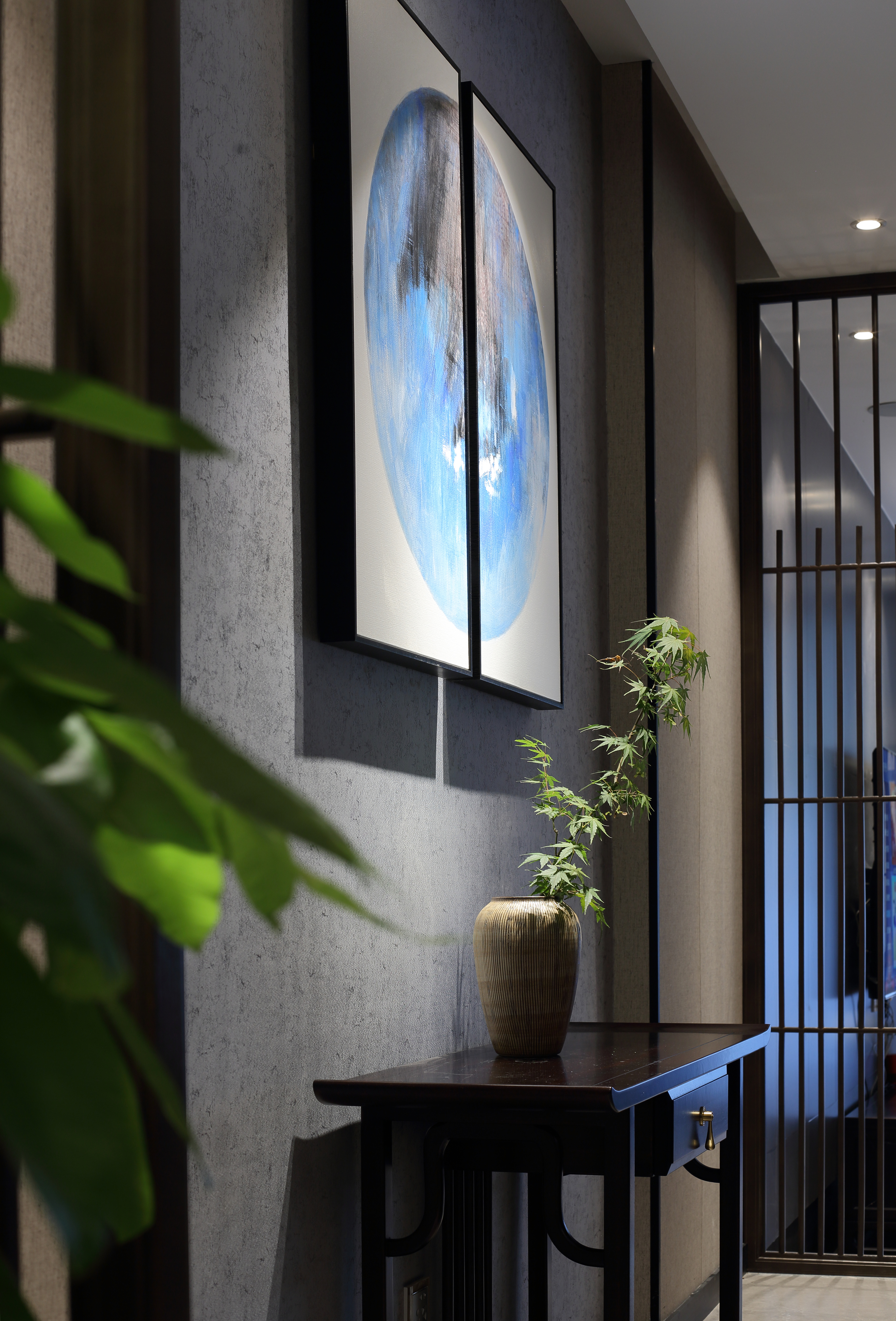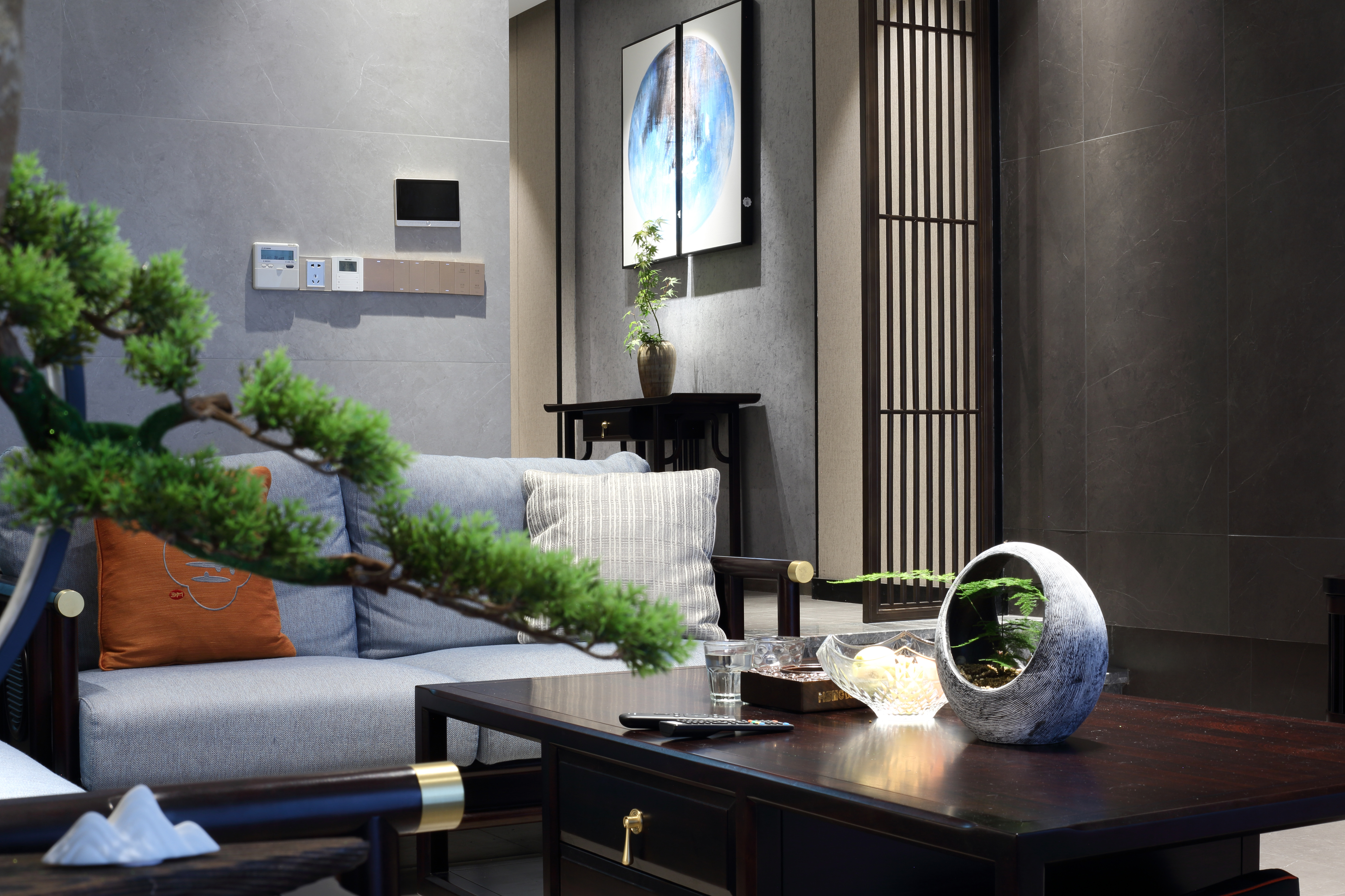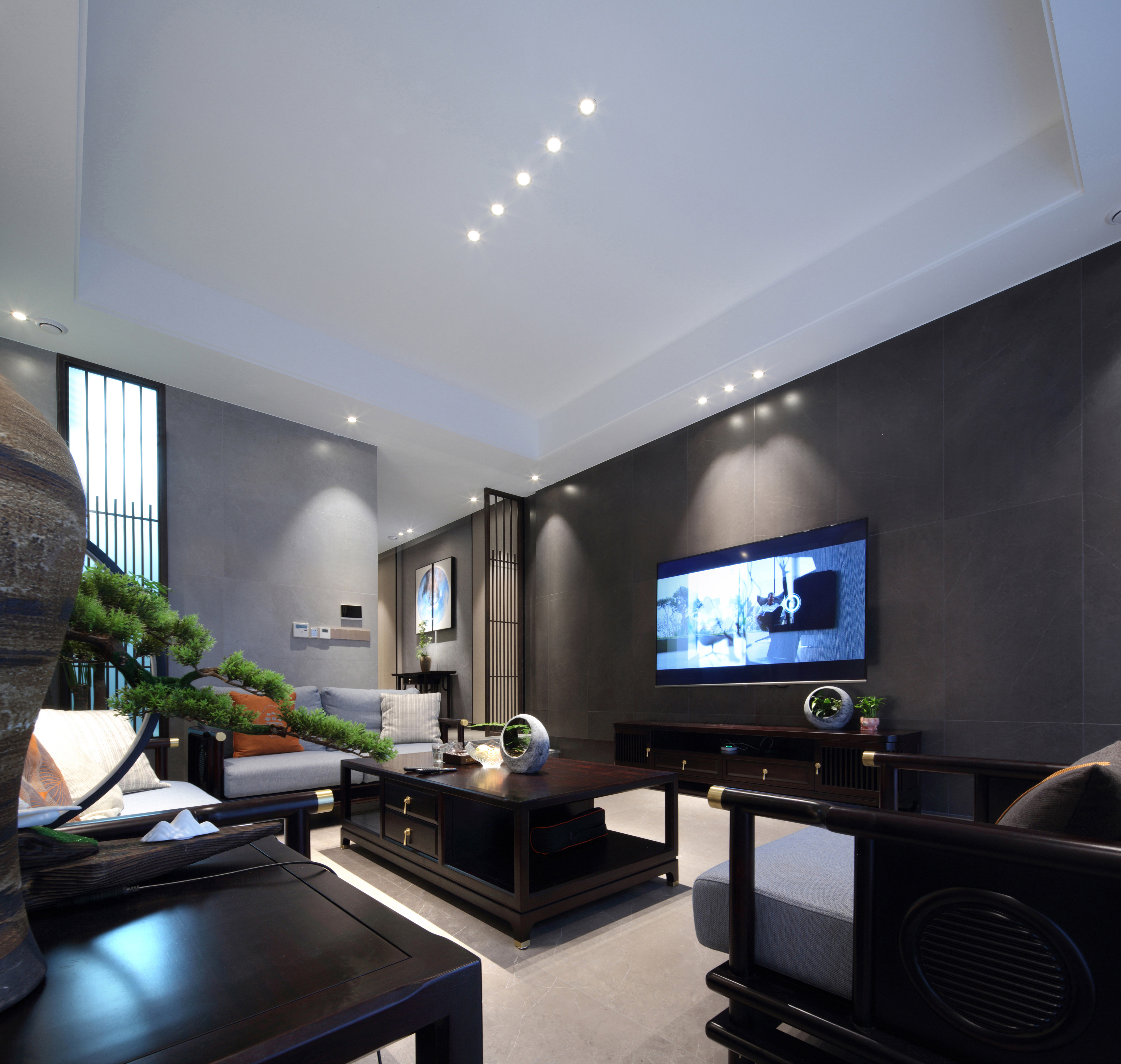 空间意境:无主灯设计的现代简约风和厚重的新中式家具,将现代元素和传统元素揉合在一起,寻找其最佳结合点。“风格即生活”的理念无处不在。