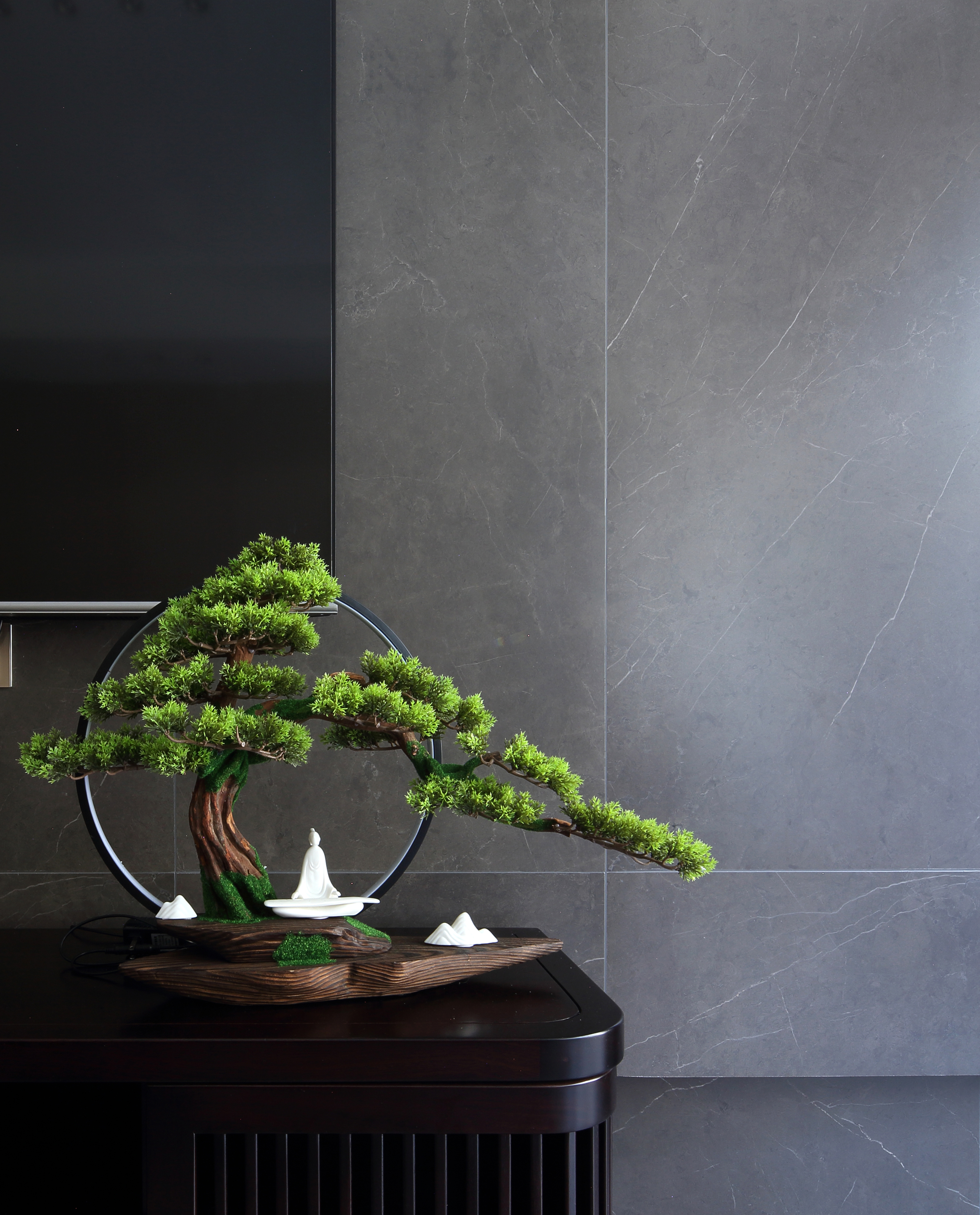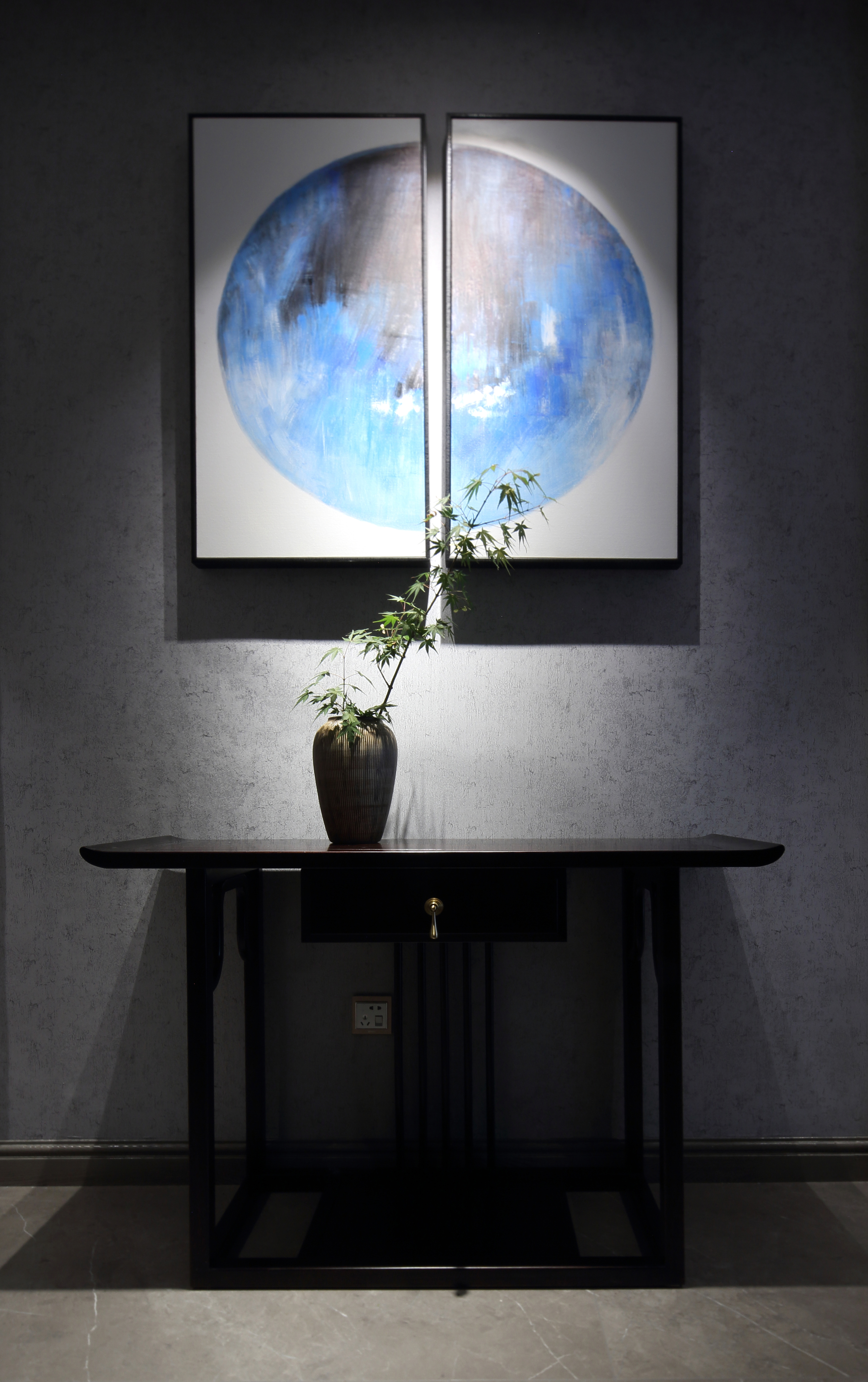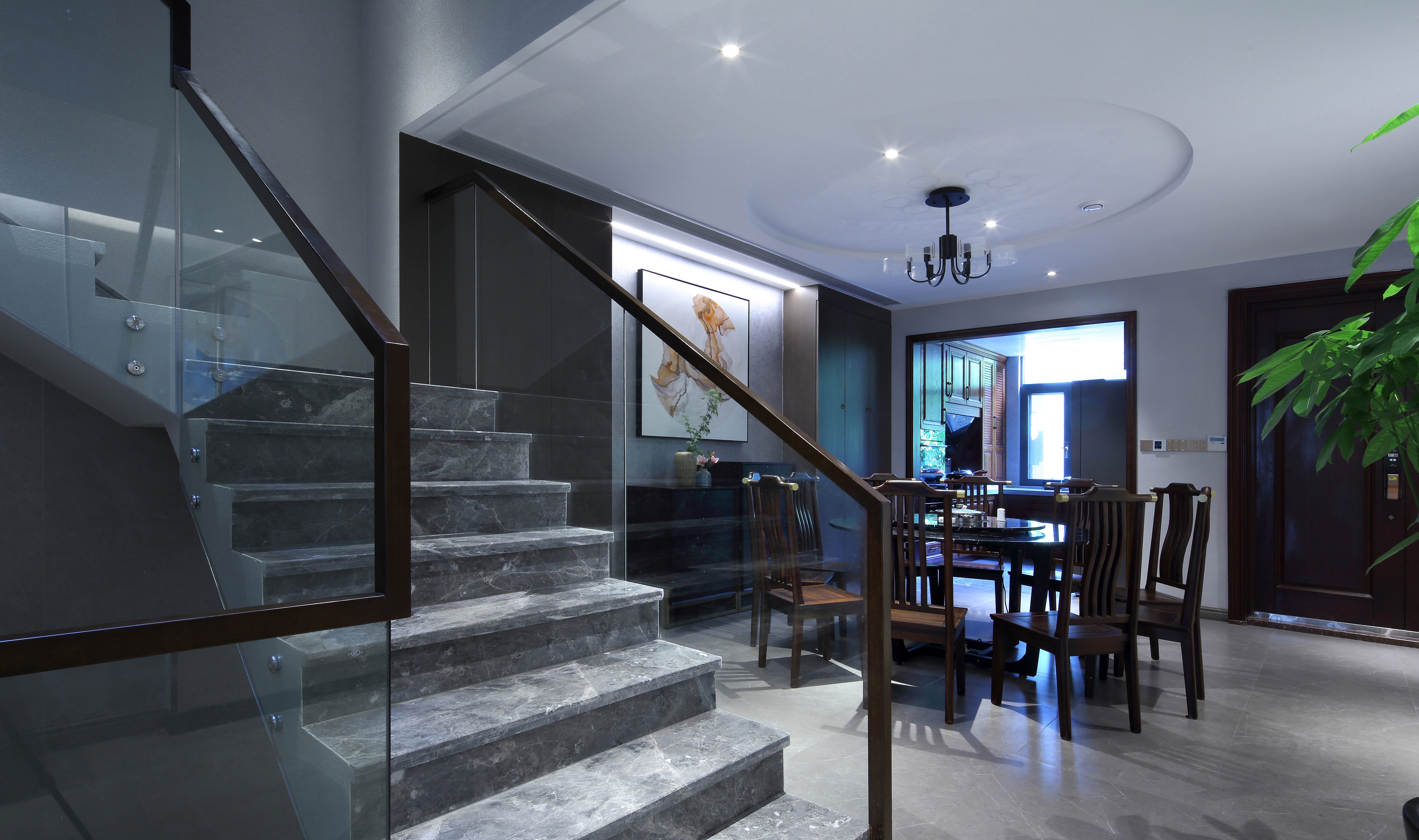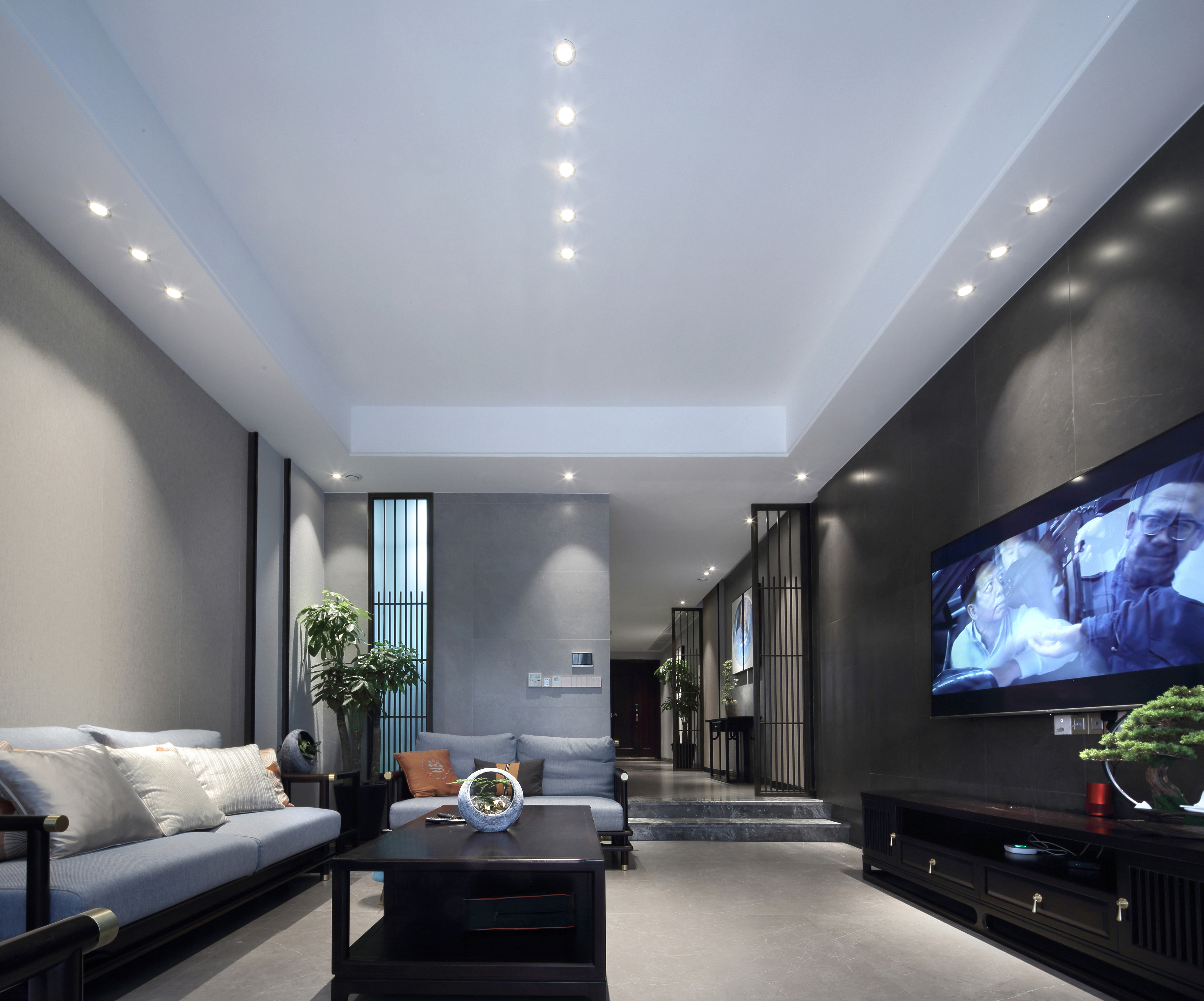 空间意境:无主灯设计的现代简约风和厚重的新中式家具,将现代元素和传统元素揉合在一起,寻找其最佳结合点。“风格即生活”的理念无处不在。