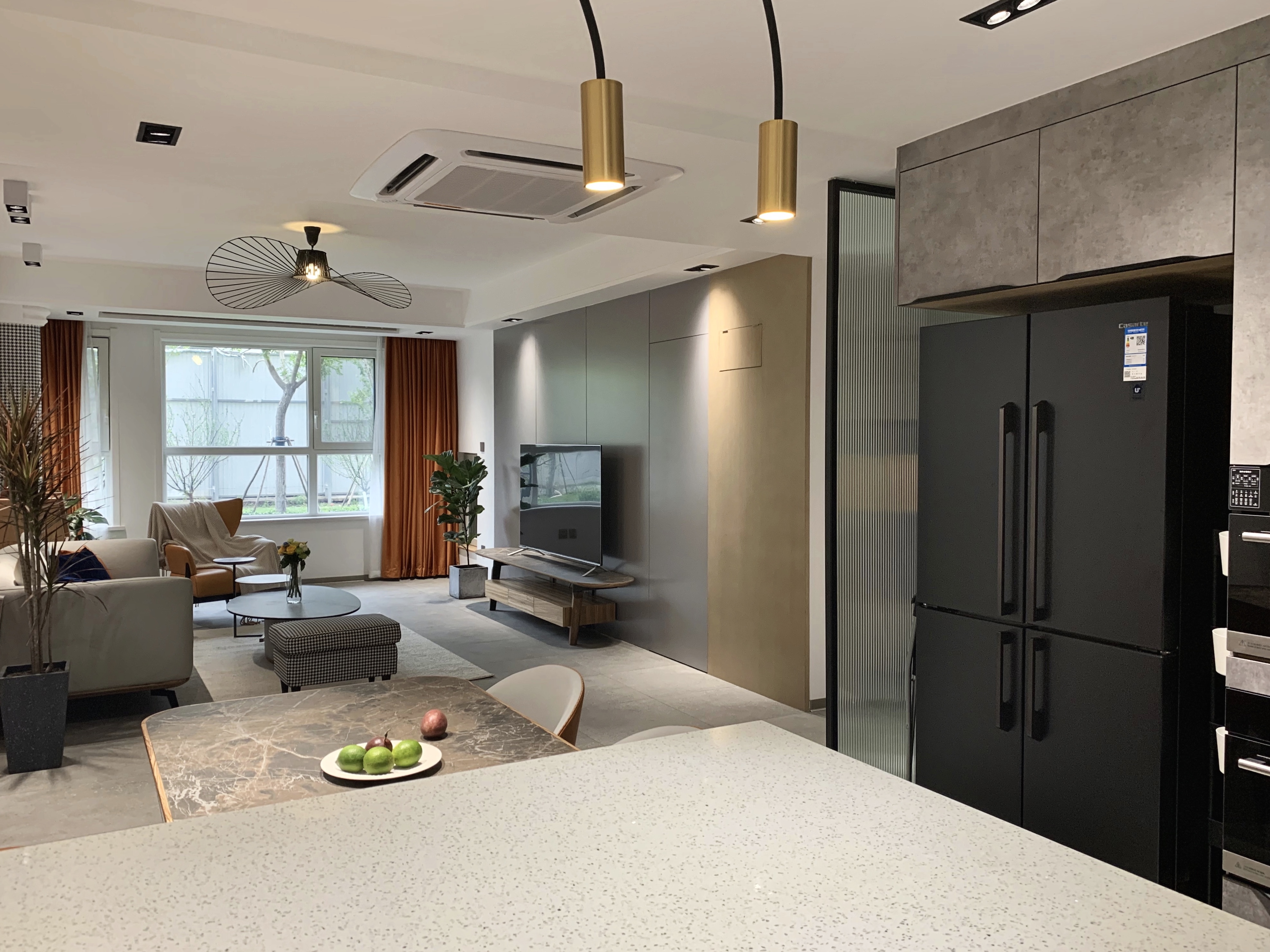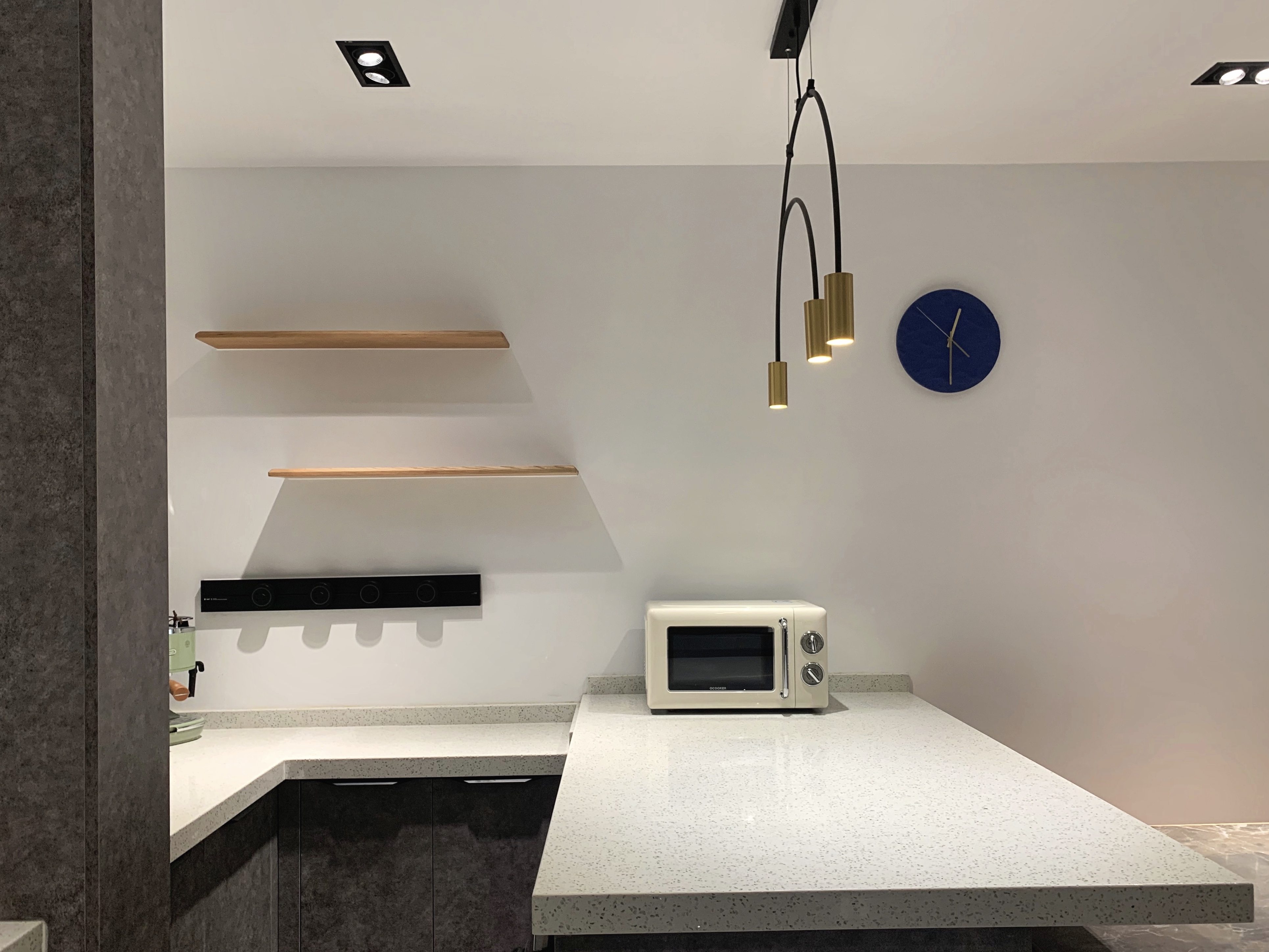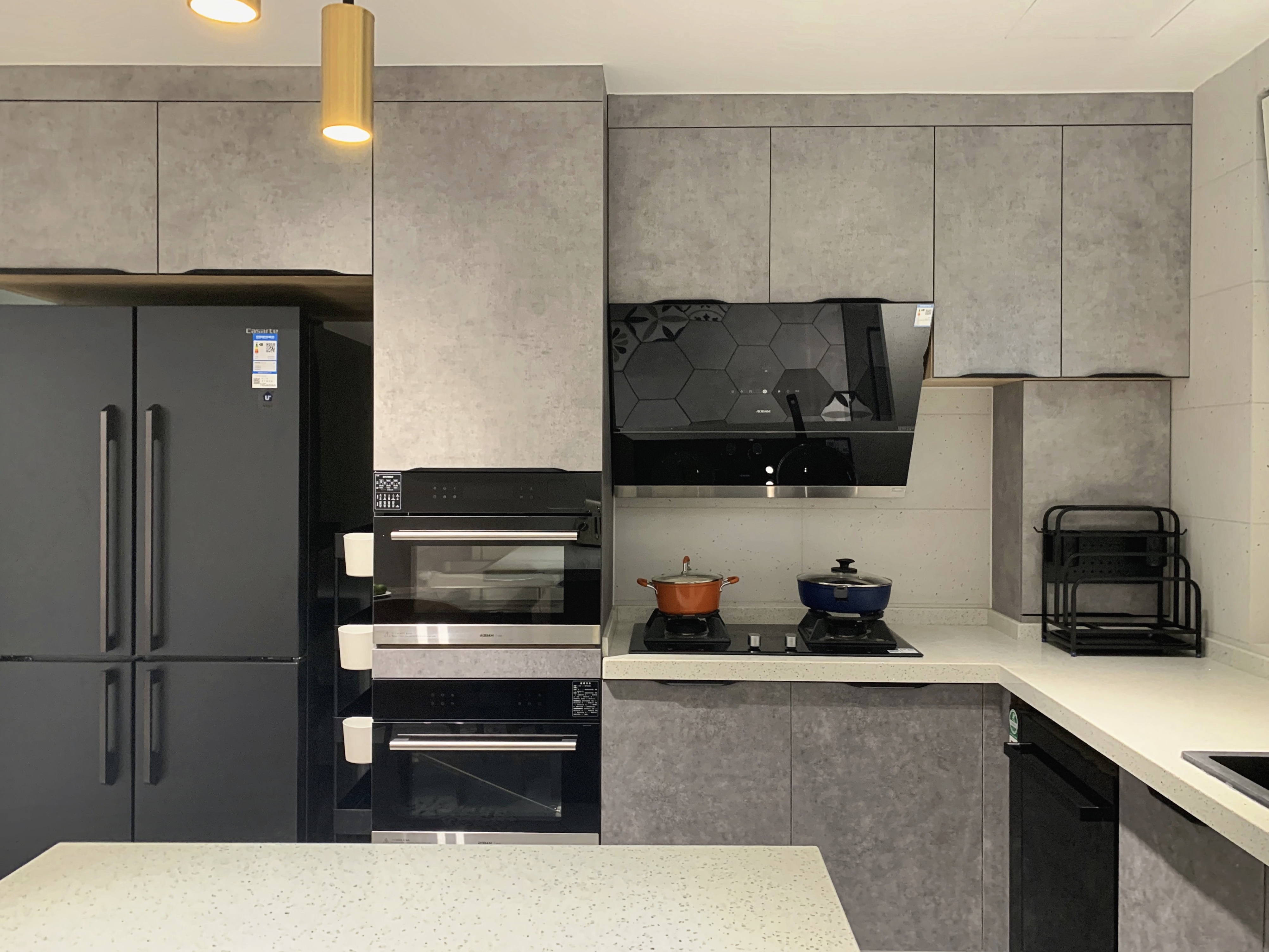 用户体验:原户型的厨房的空间过于紧凑,无法满足需求。把原公共卫生间的空间融入到厨房区域,扩大厨房的整体空间。丰富了整体的功能性,充分满足了提升生活舒适性的家电配置,洗碗机、垃圾处理器、净水设备、洗衣机、大双开门冰箱一应俱全。