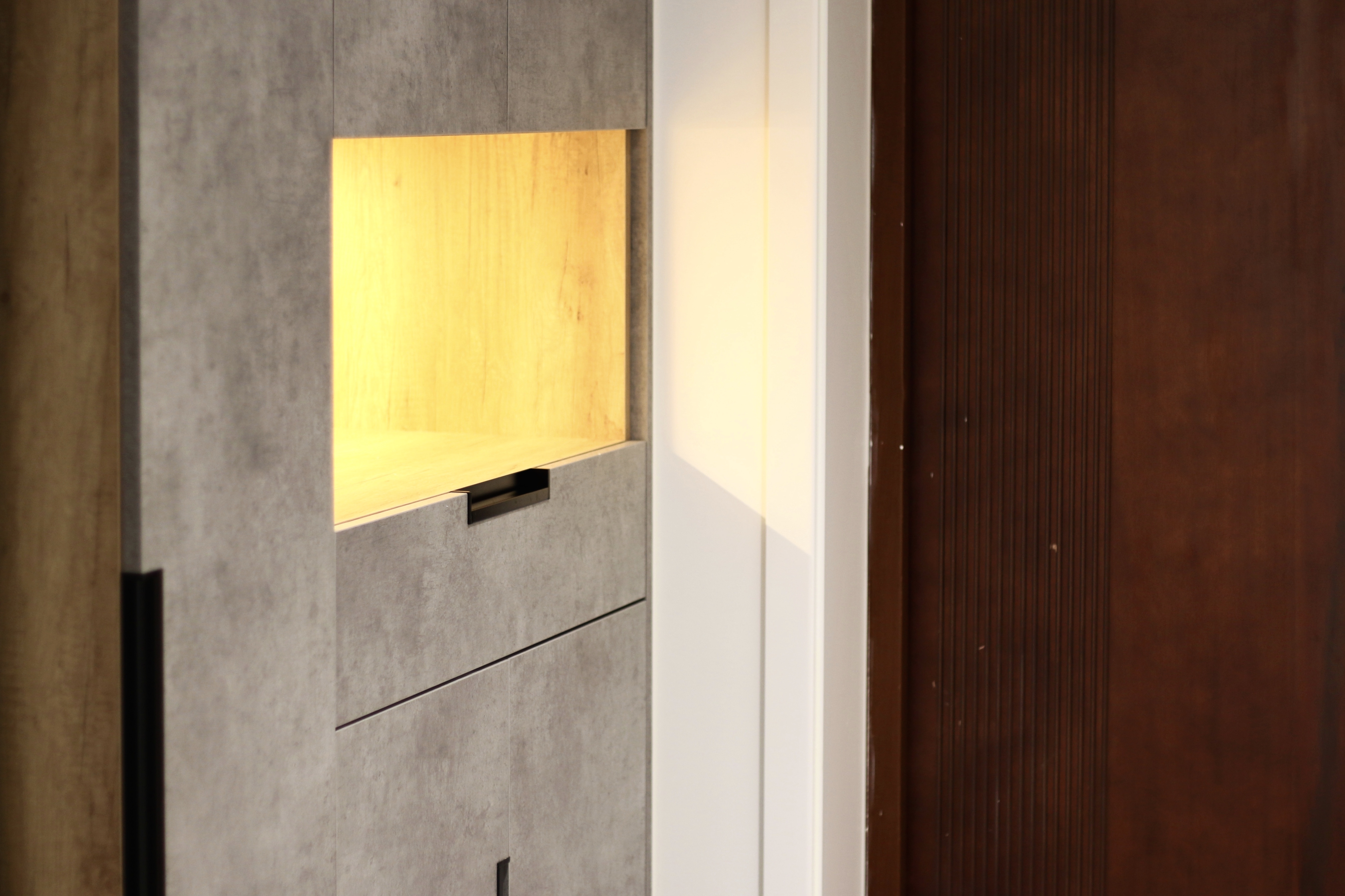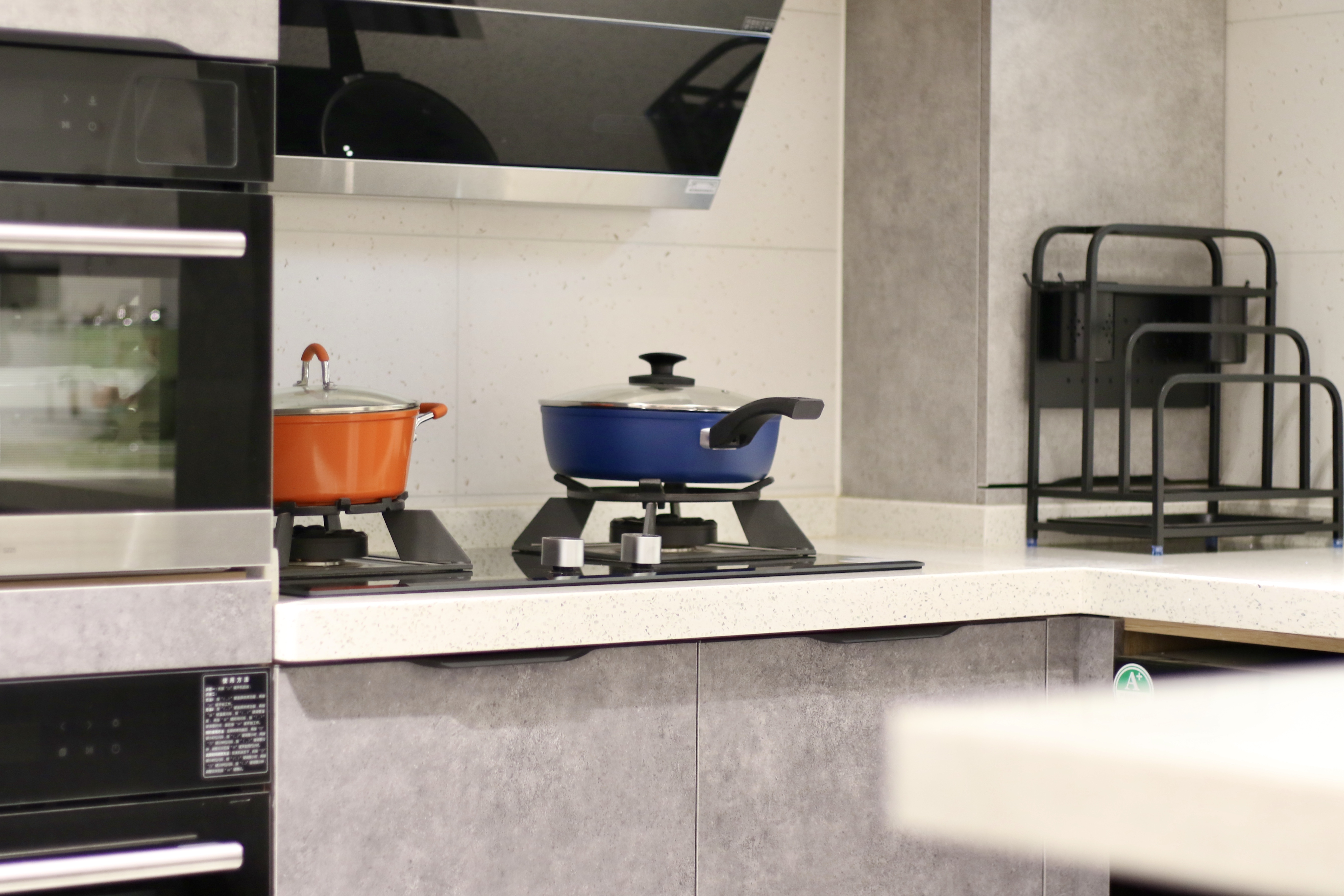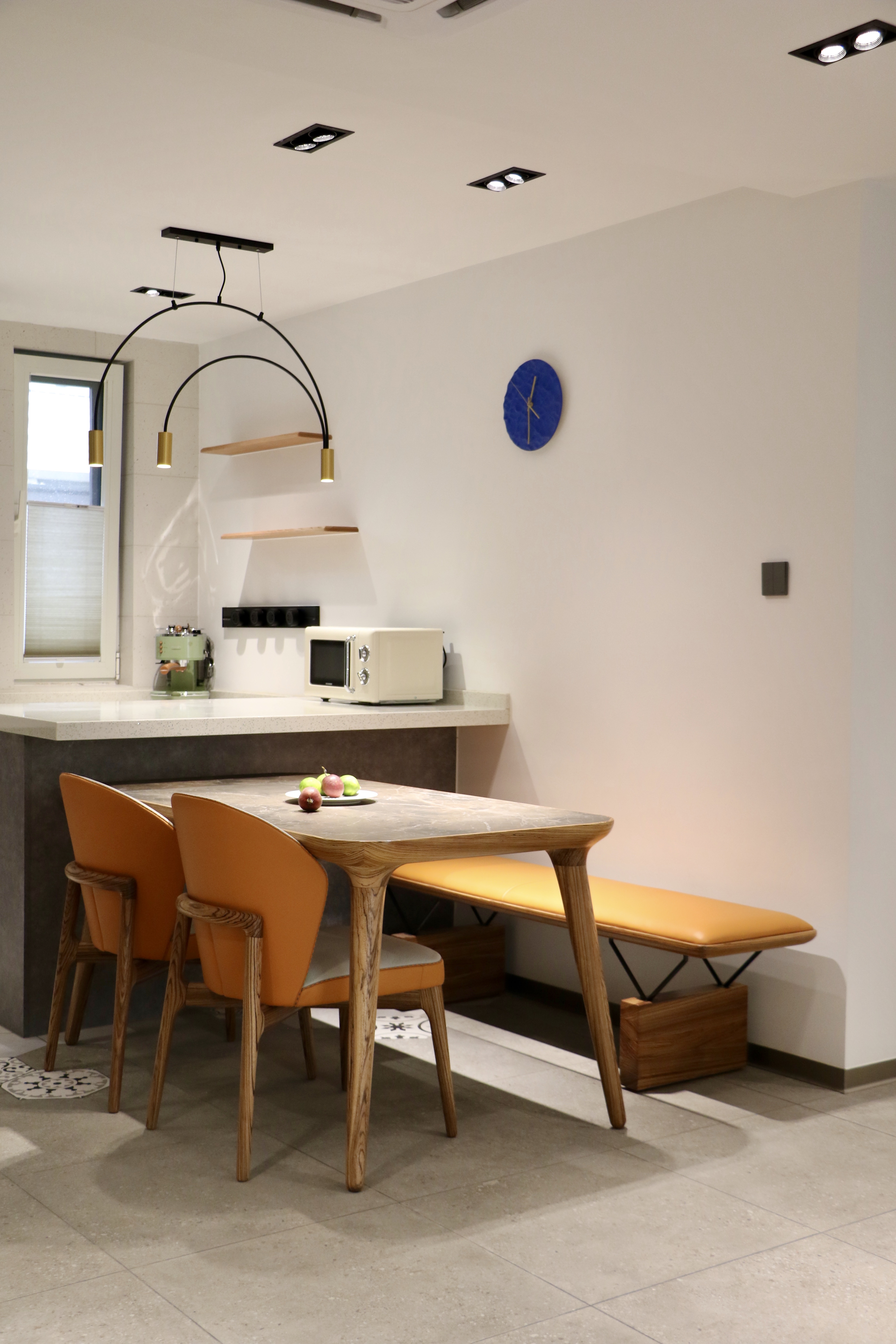 用户体验:原户型的厨房的空间过于紧凑,无法满足需求。把原公共卫生间的空间融入到厨房区域,扩大厨房的整体空间。丰富了整体的功能性,充分满足了提升生活舒适性的家电配置,洗碗机、垃圾处理器、净水设备、洗衣机、大双开门冰箱一应俱全。