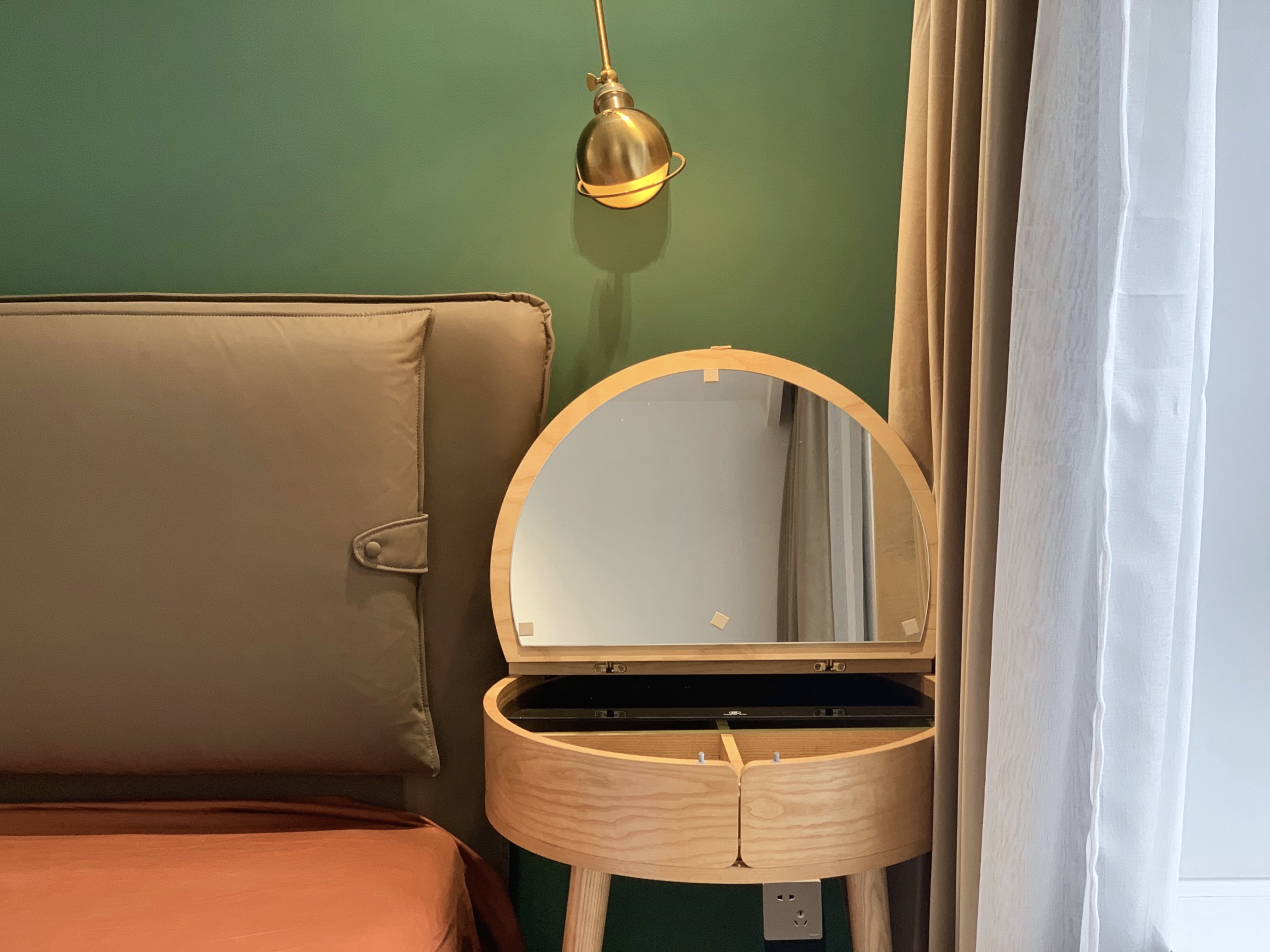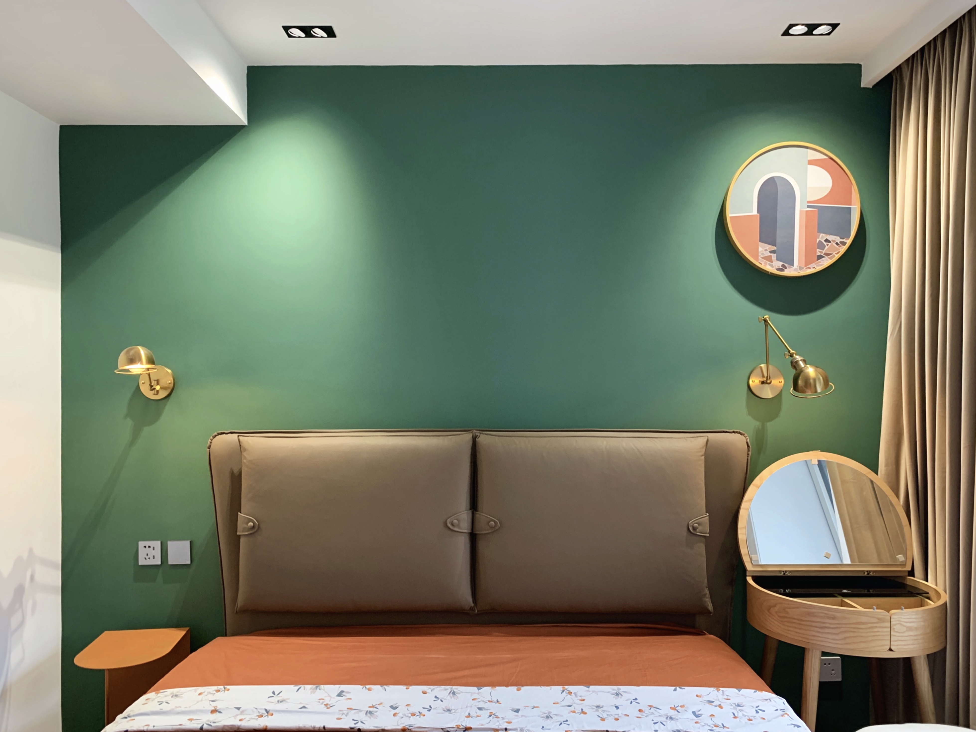设计选材:整体的墙面通过乳胶漆拼色,搭配软装,减少硬装上的比重。