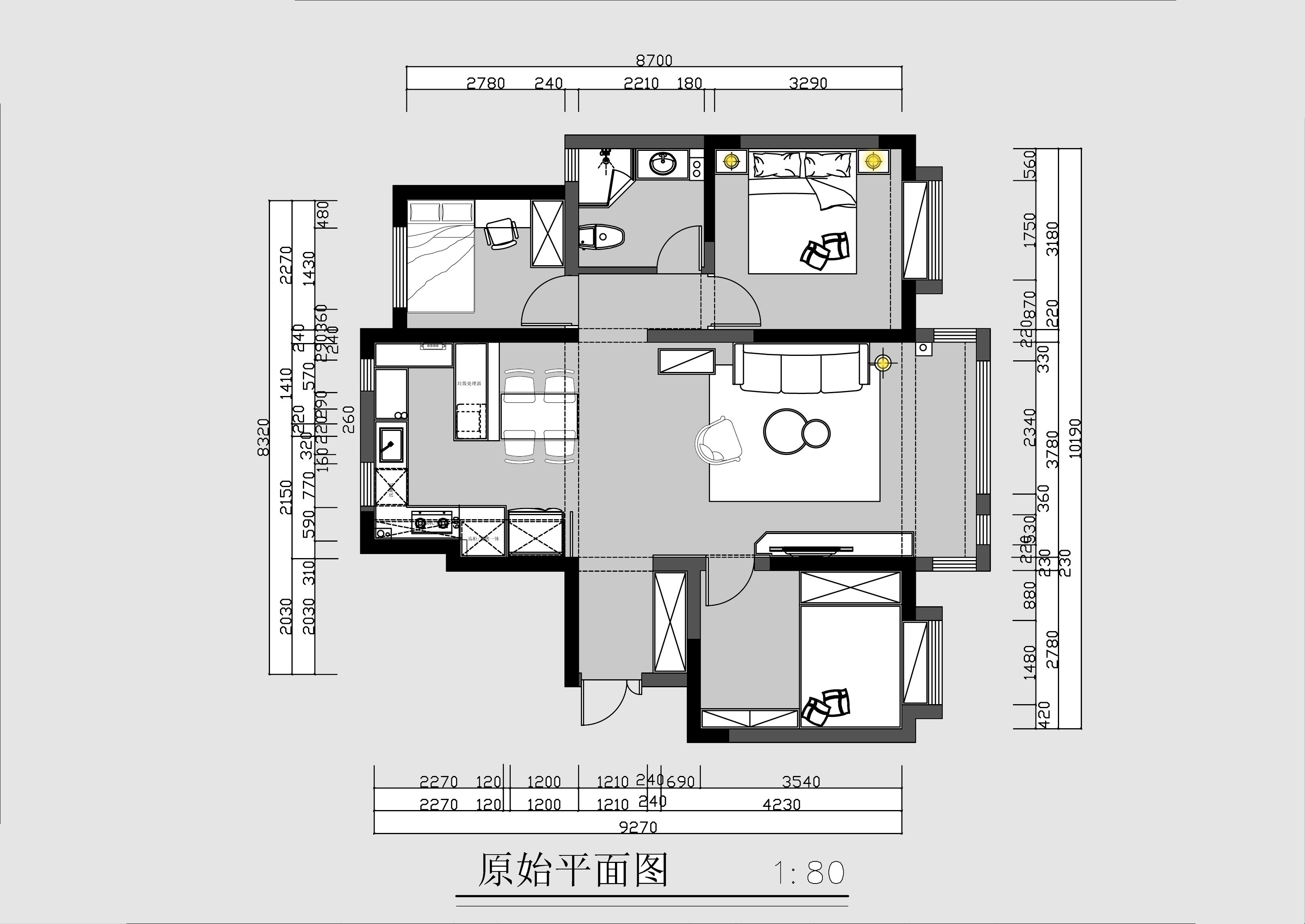 项目定位:该户型是紧凑的三室户型,原户型配置了三室两卫的空间。考虑到实际居住人口及后期空间的使用功能性及舒适性。后期对户型的整体进行了合理的空间分配。