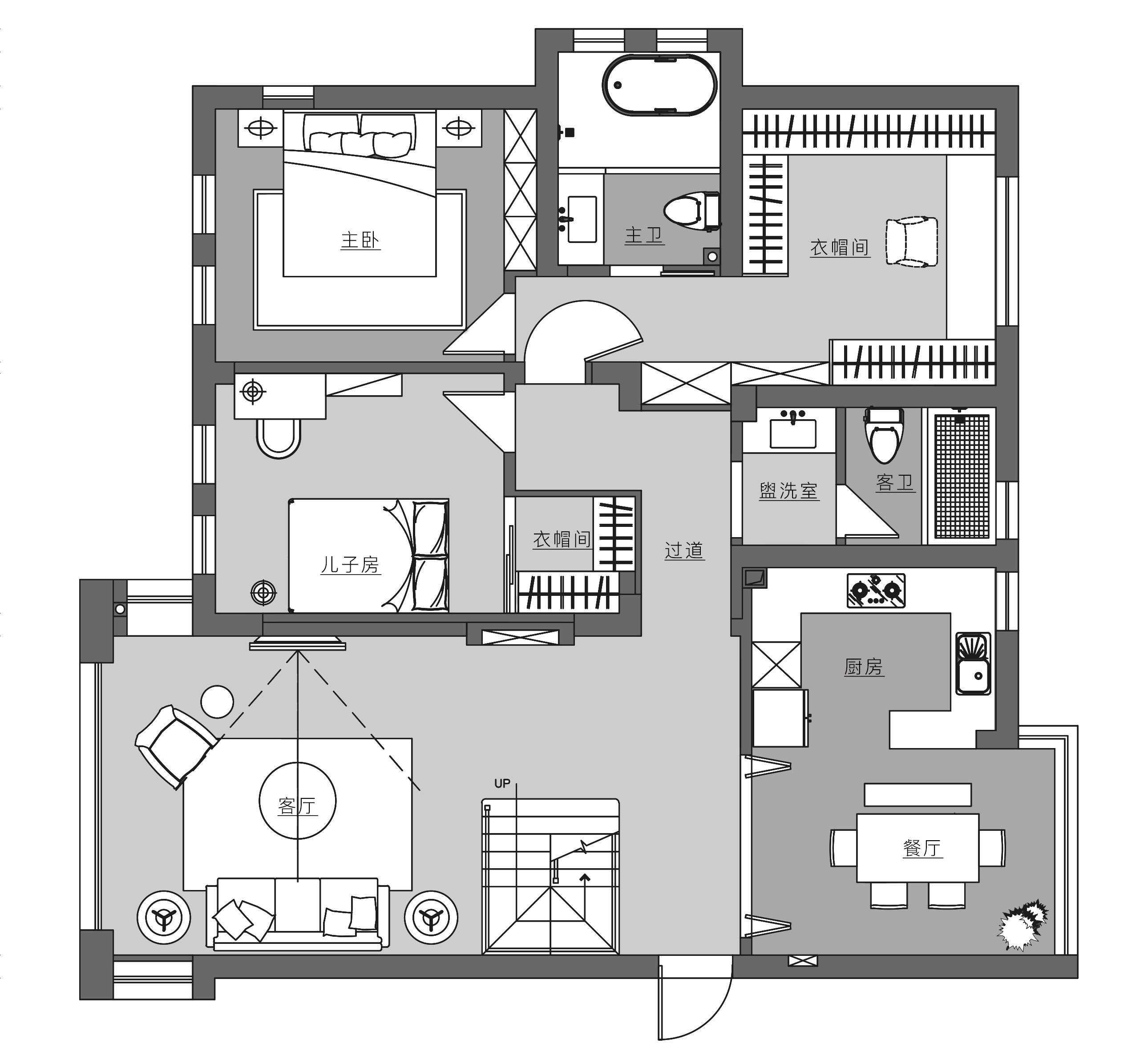 设计选材:全屋墙面放弃了过多的造型装饰,都采用了进口乳胶漆,让整个空间自由呼吸