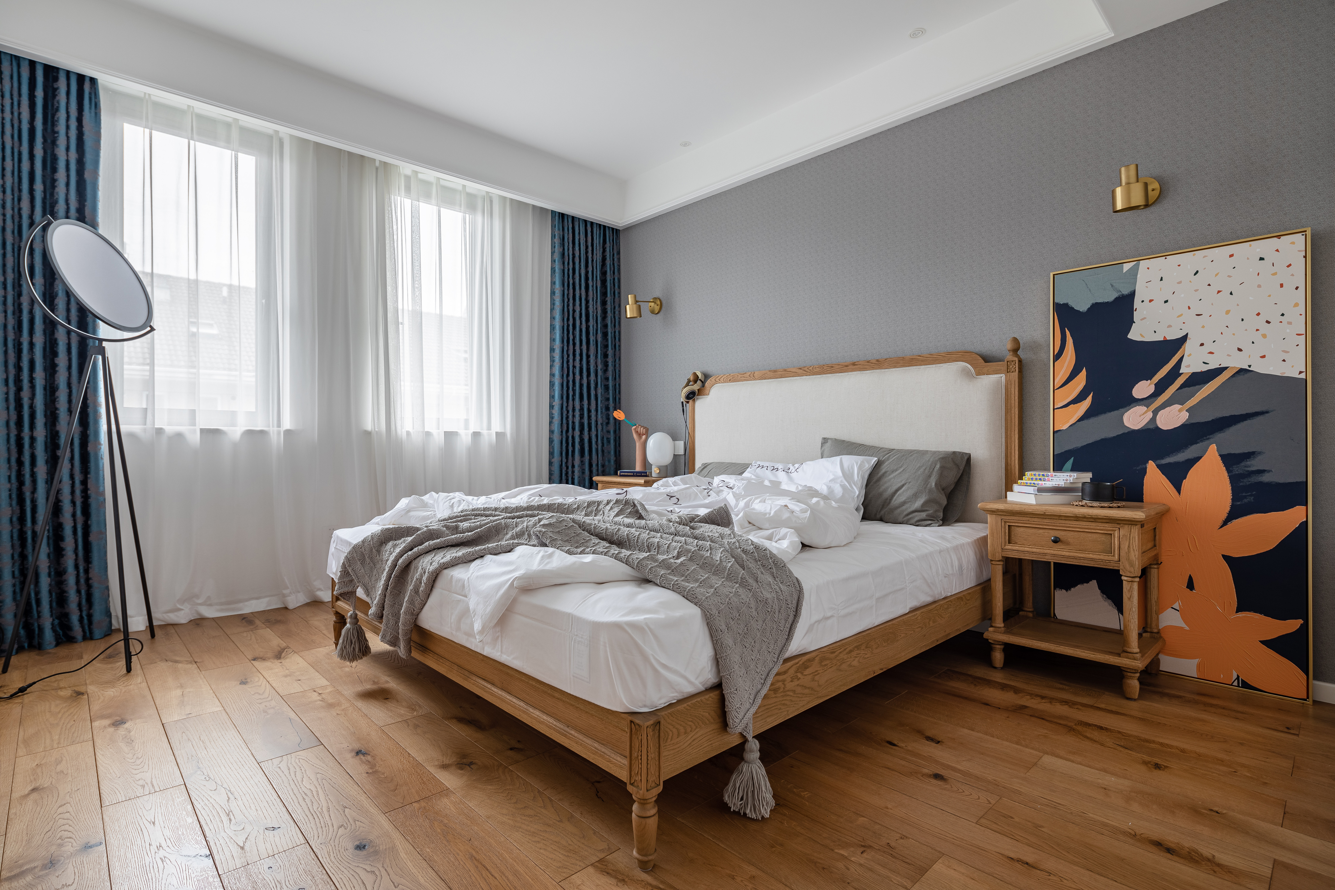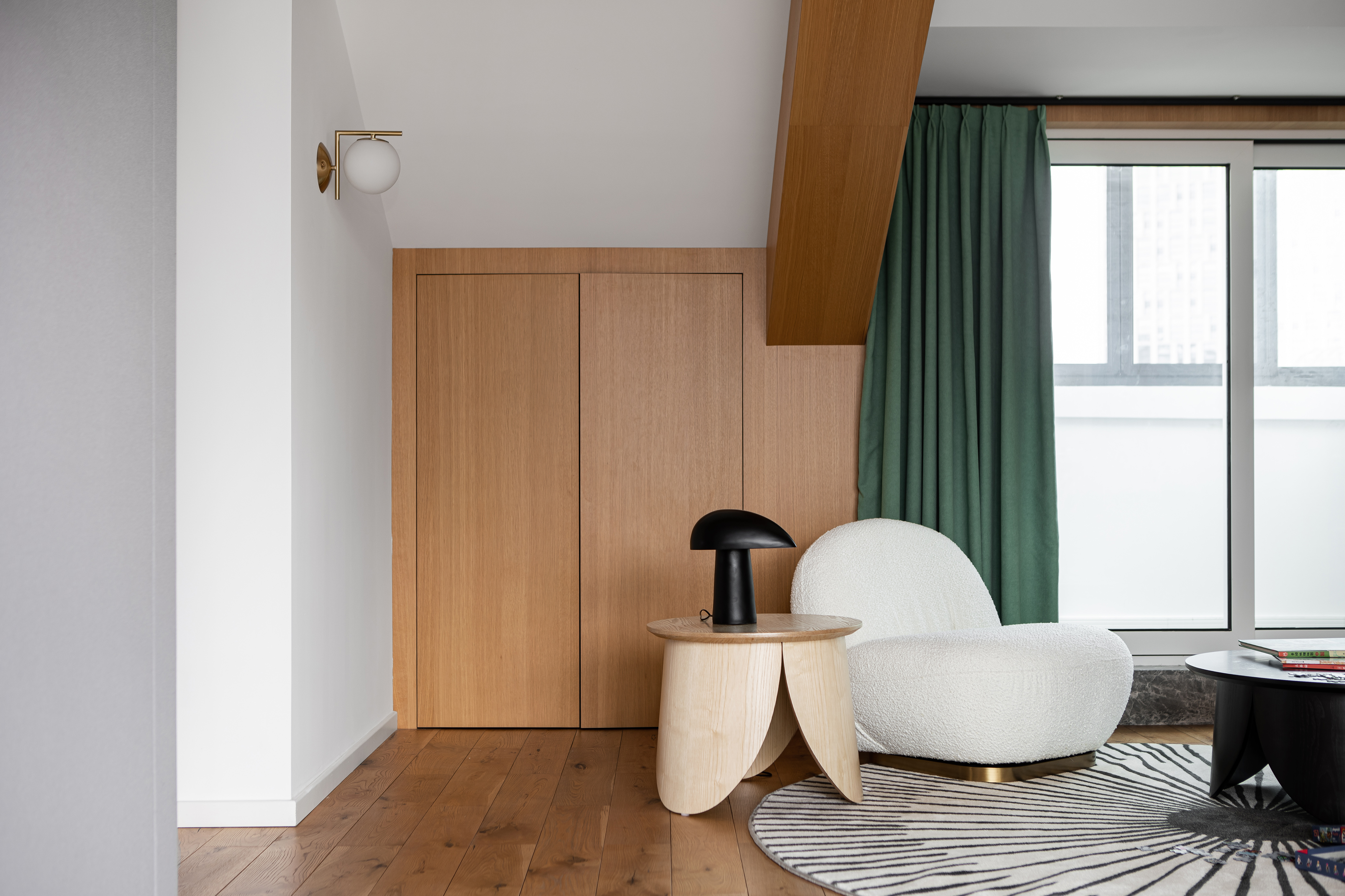 主卧以有质感的灰调为基底,添置些许艺术装置与色彩元素,舒适与时尚的双重感官带来了精致的居住体验。