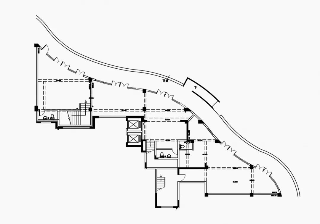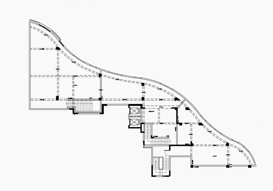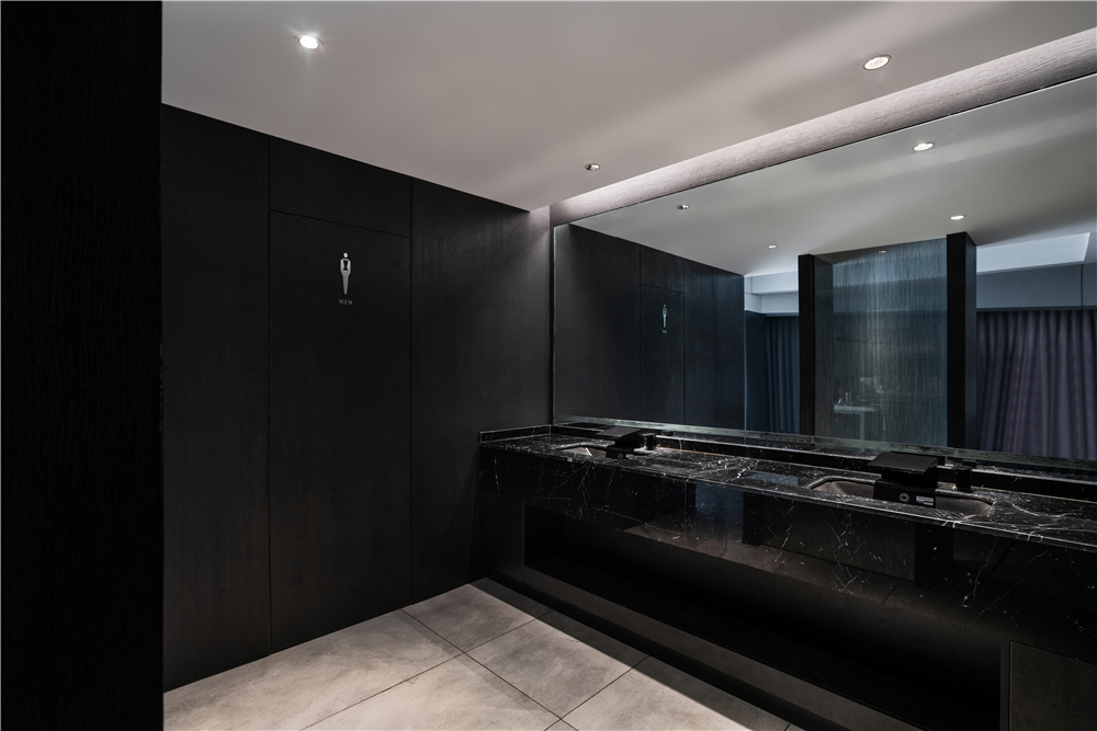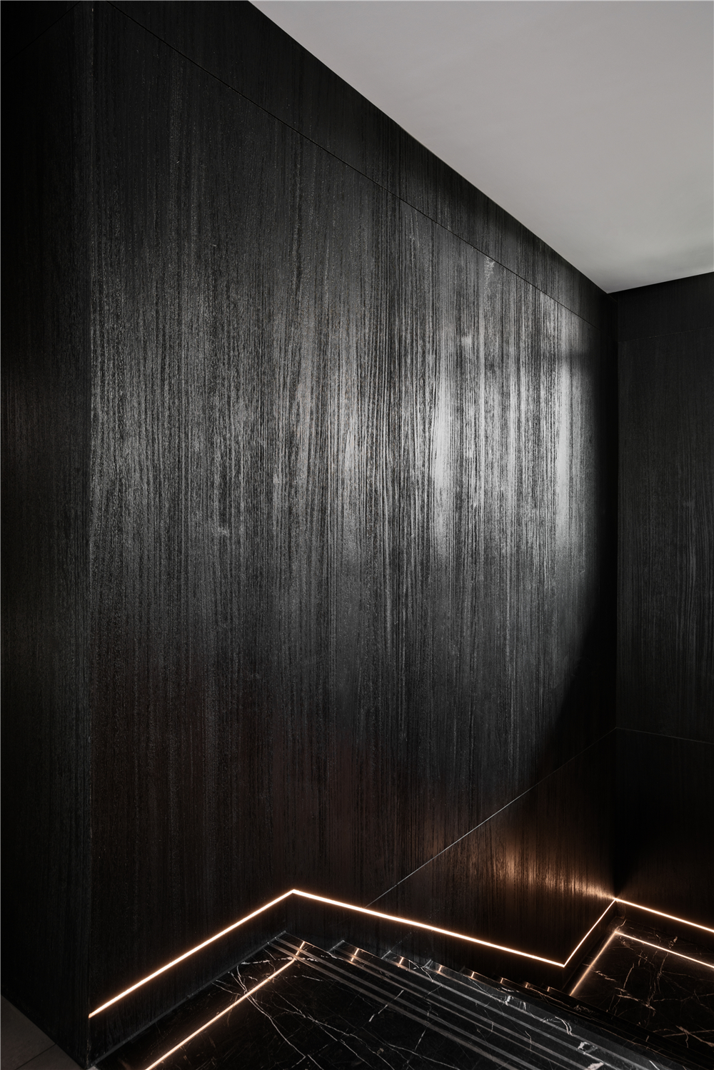 黑金色现代感外立面,在悠长的曲面上,直立宽窄不一的整块铝板顺着蜿蜒的表面错落有致,富有轻快的节奏型和韵律感。低调微奢的香槟金色铝板,底色是与周边环境相对应的深灰,是一种趋于平衡的美感。与周边建筑和谐统一的前提下,又能与馆内的美学理念相契合。