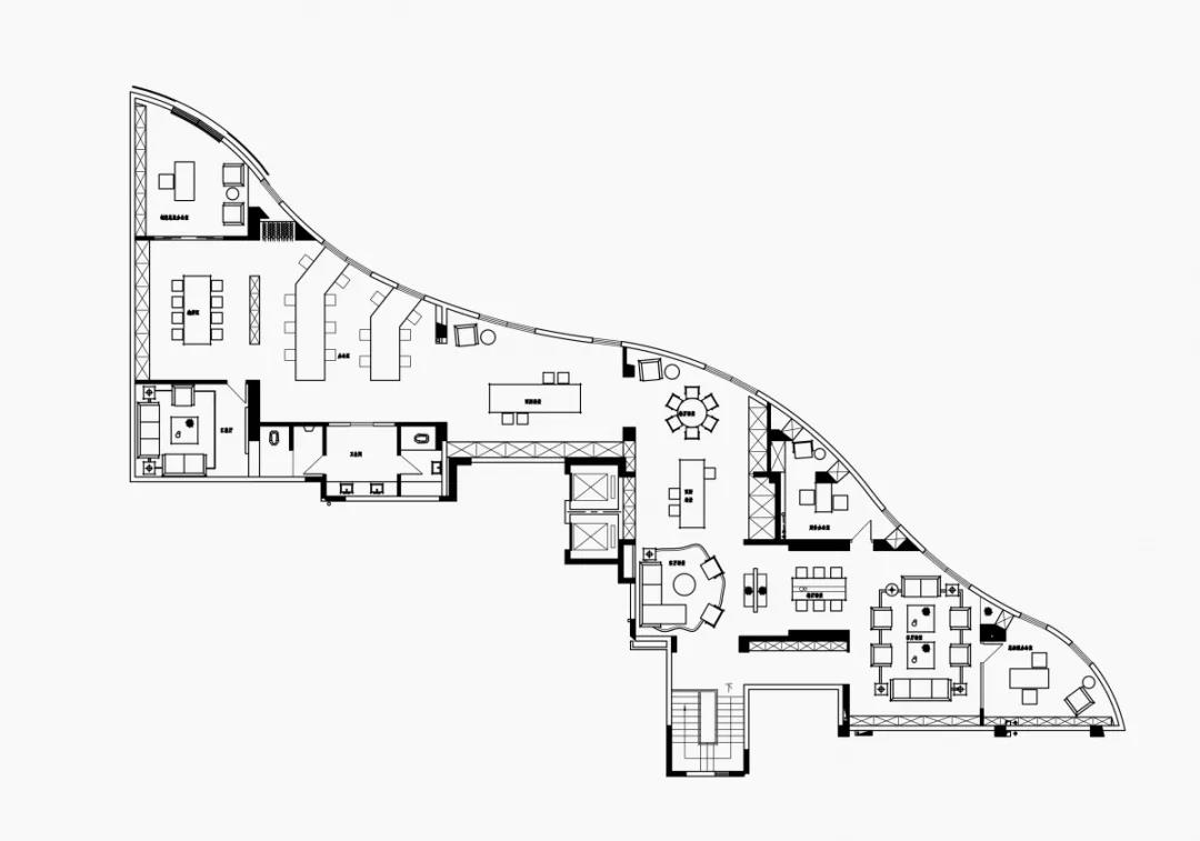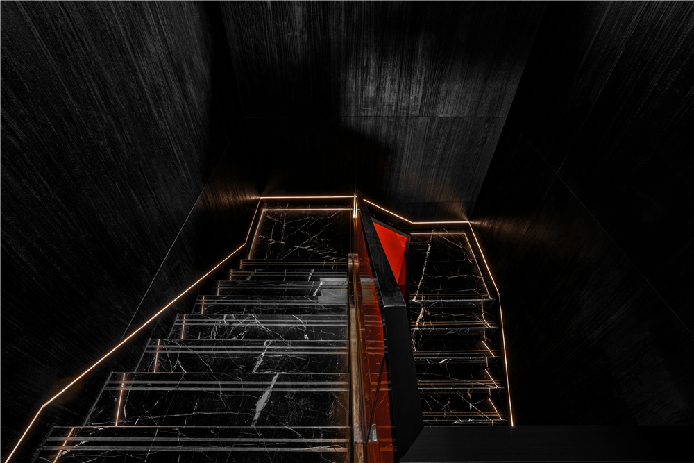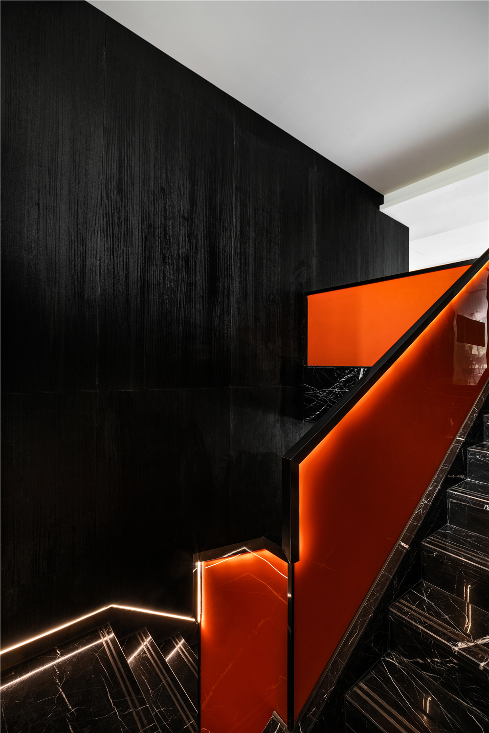 空间布局:整体空间以直线线条,白色,黑色建筑体块,