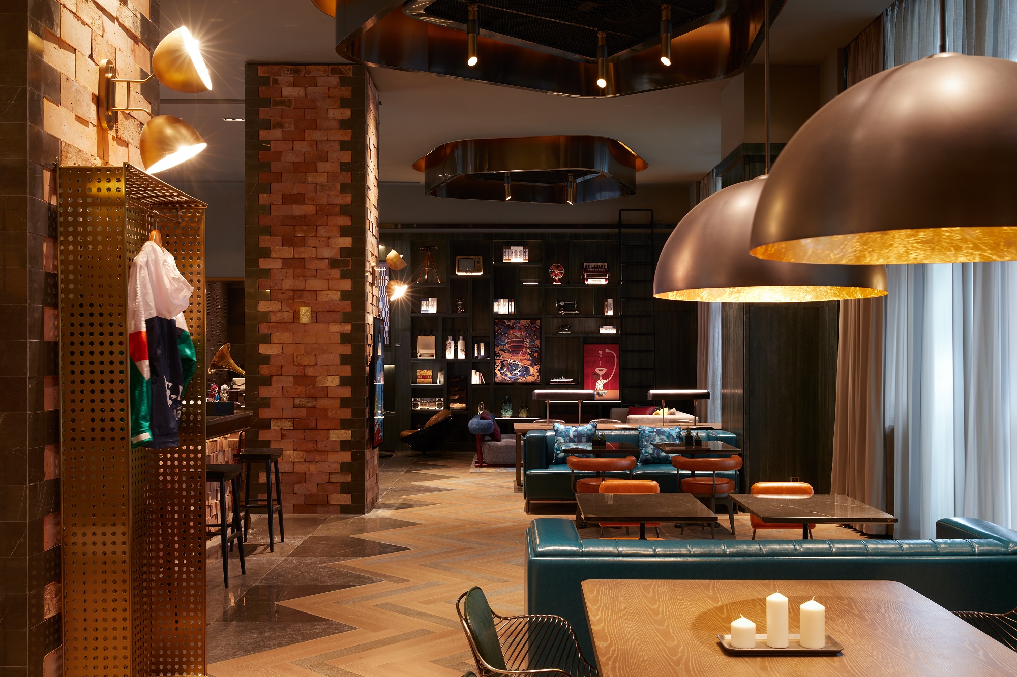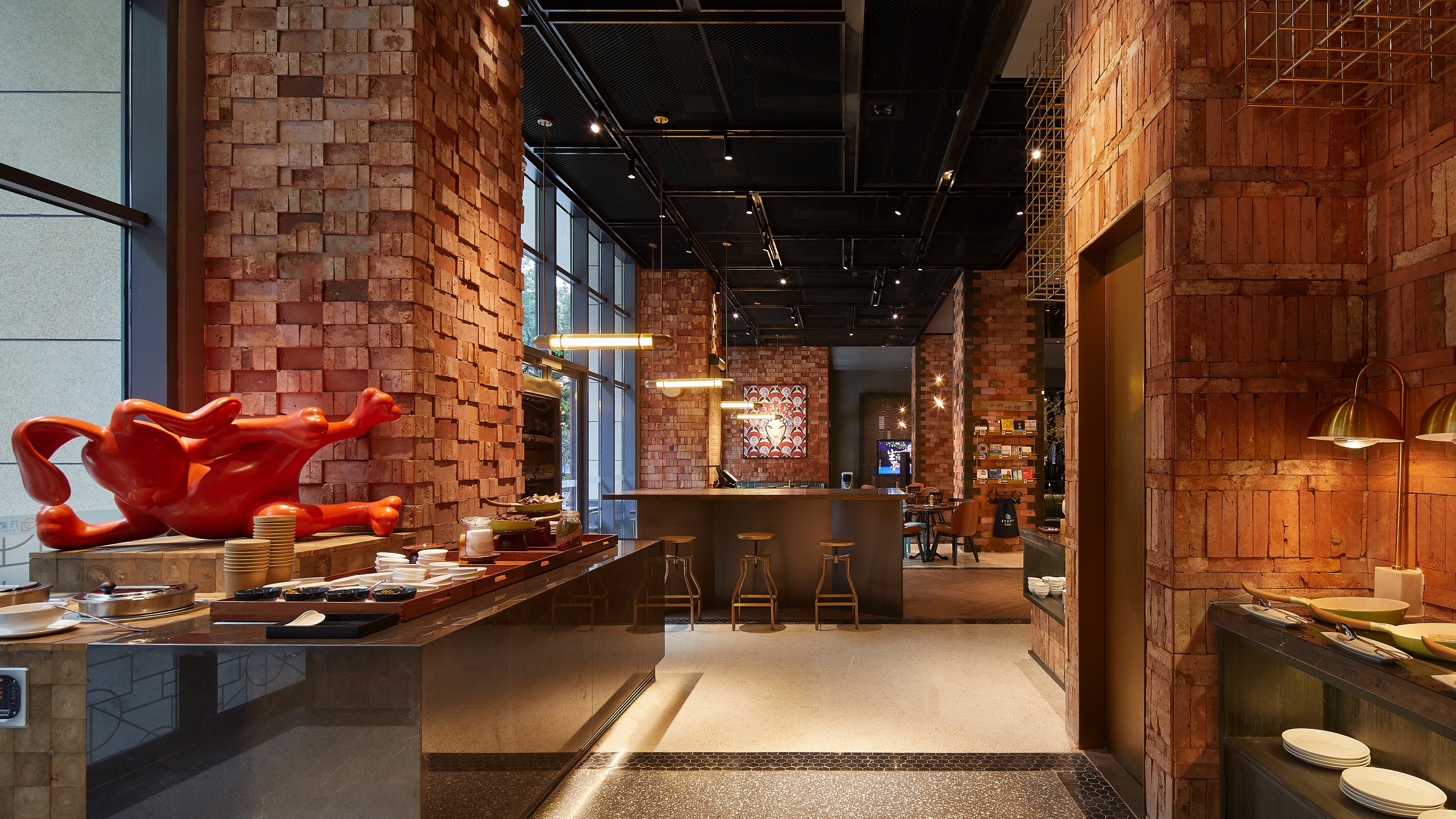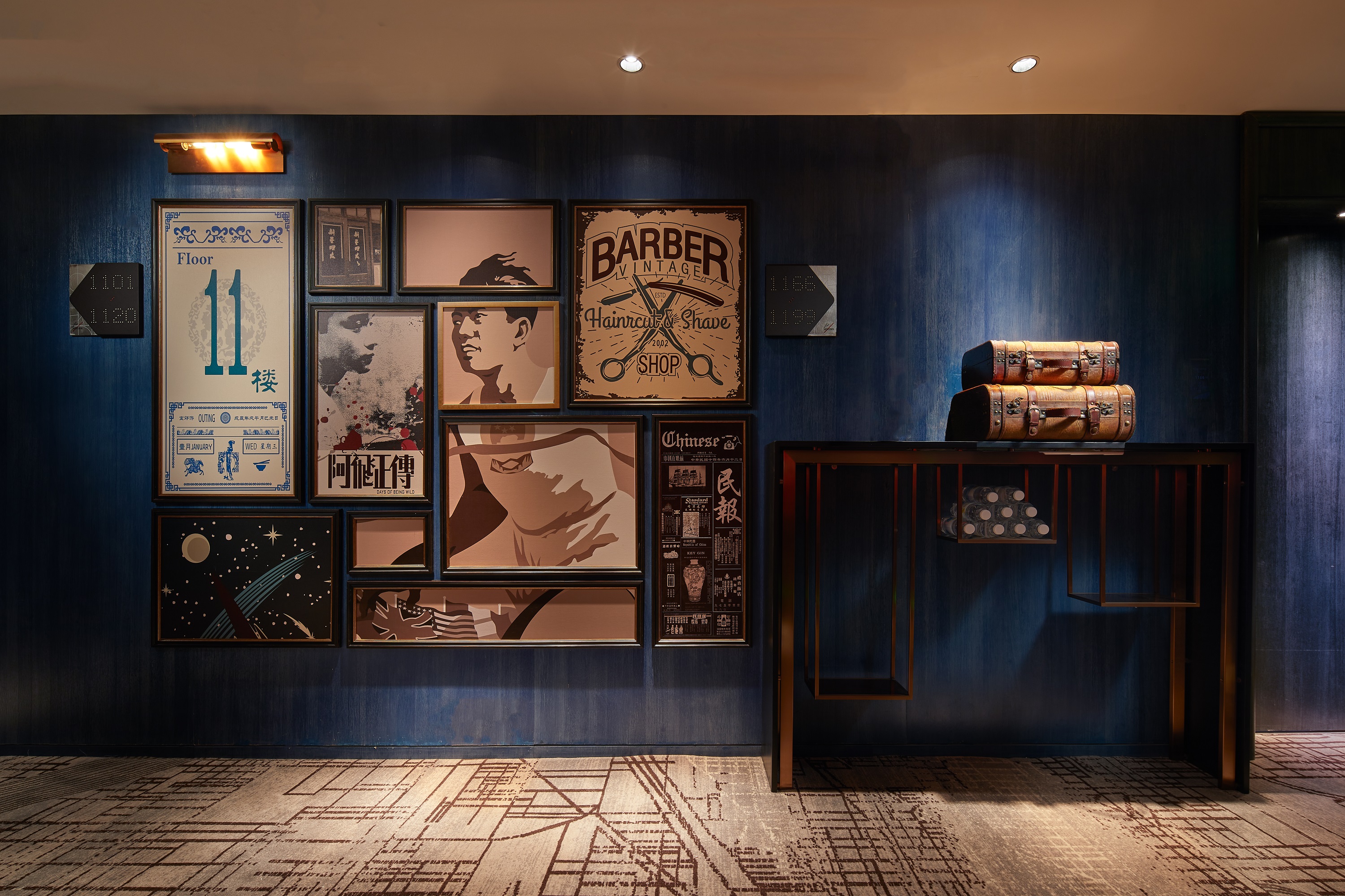 设计选材:带有年代记忆的砖块纹作为酒店的主设计选材,配以金属装饰,将历史与未来进行融合