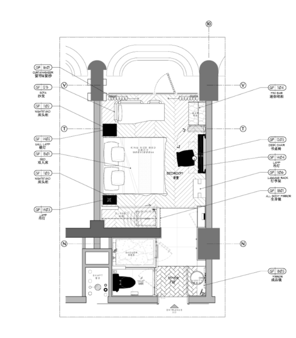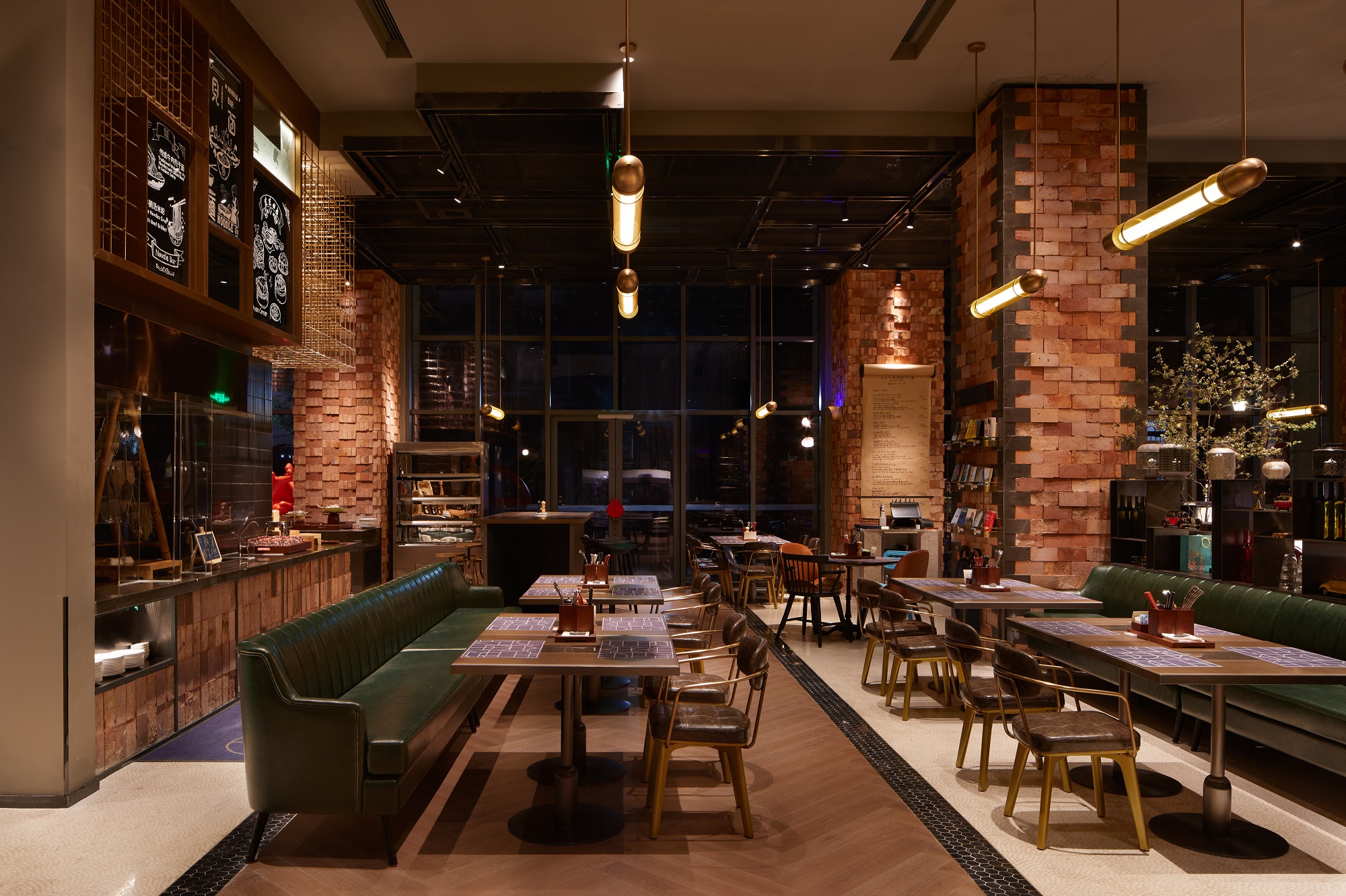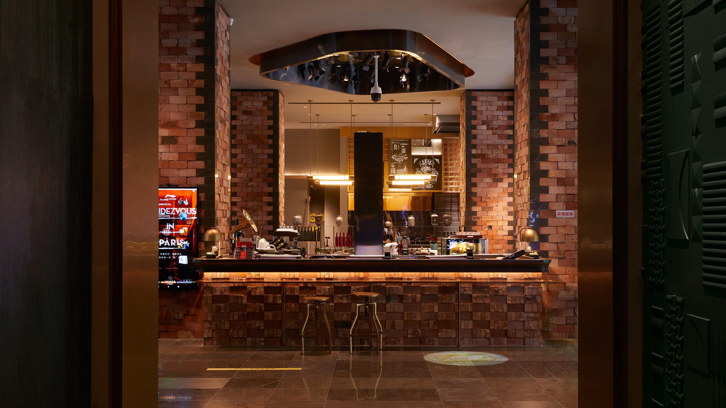 设计选材:带有年代记忆的砖块纹作为酒店的主设计选材,配以金属装饰,将历史与未来进行融合
