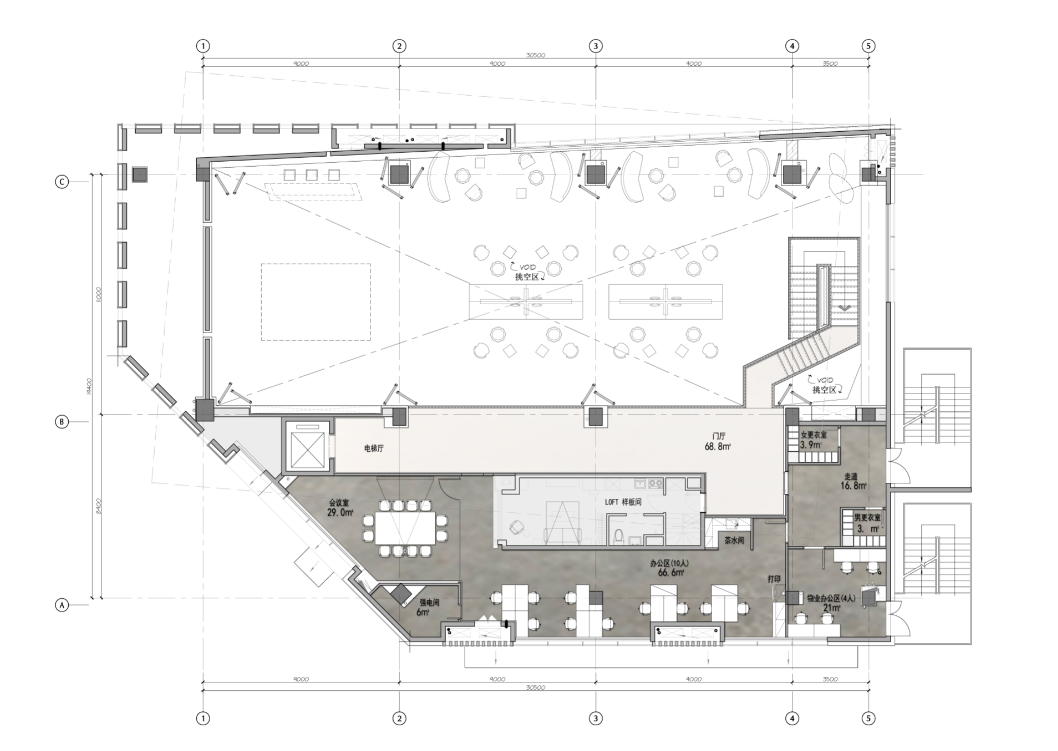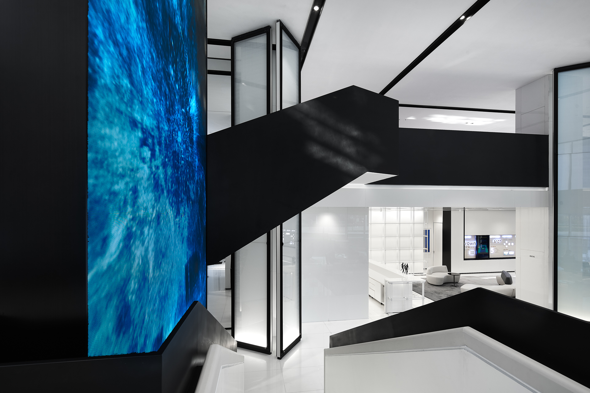 项目定位:地处商业街的售楼中心以“秀场”作为设计主题,综合商业与人文,在空间展开一张空间艺术与时尚的对话。