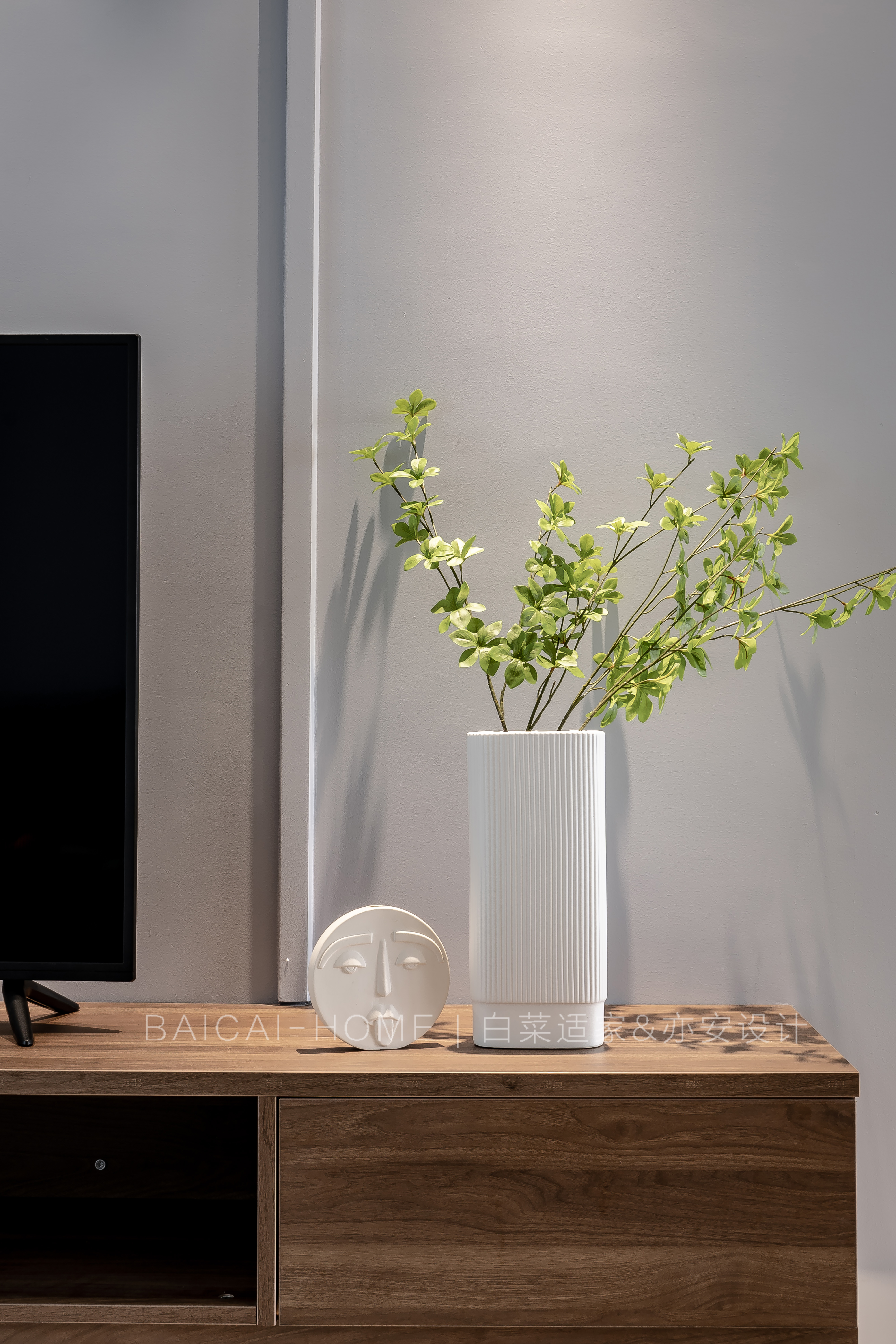 餐边柜并没有选择常规一柜到顶。 因为600mm的宽度,如果还做到2.8米高,着实难看。我表示无法接受。不要说上面积灰怎么办,我倒想问问,你家现在沙发和床底下的灰,你一年又打扫过几回呢。