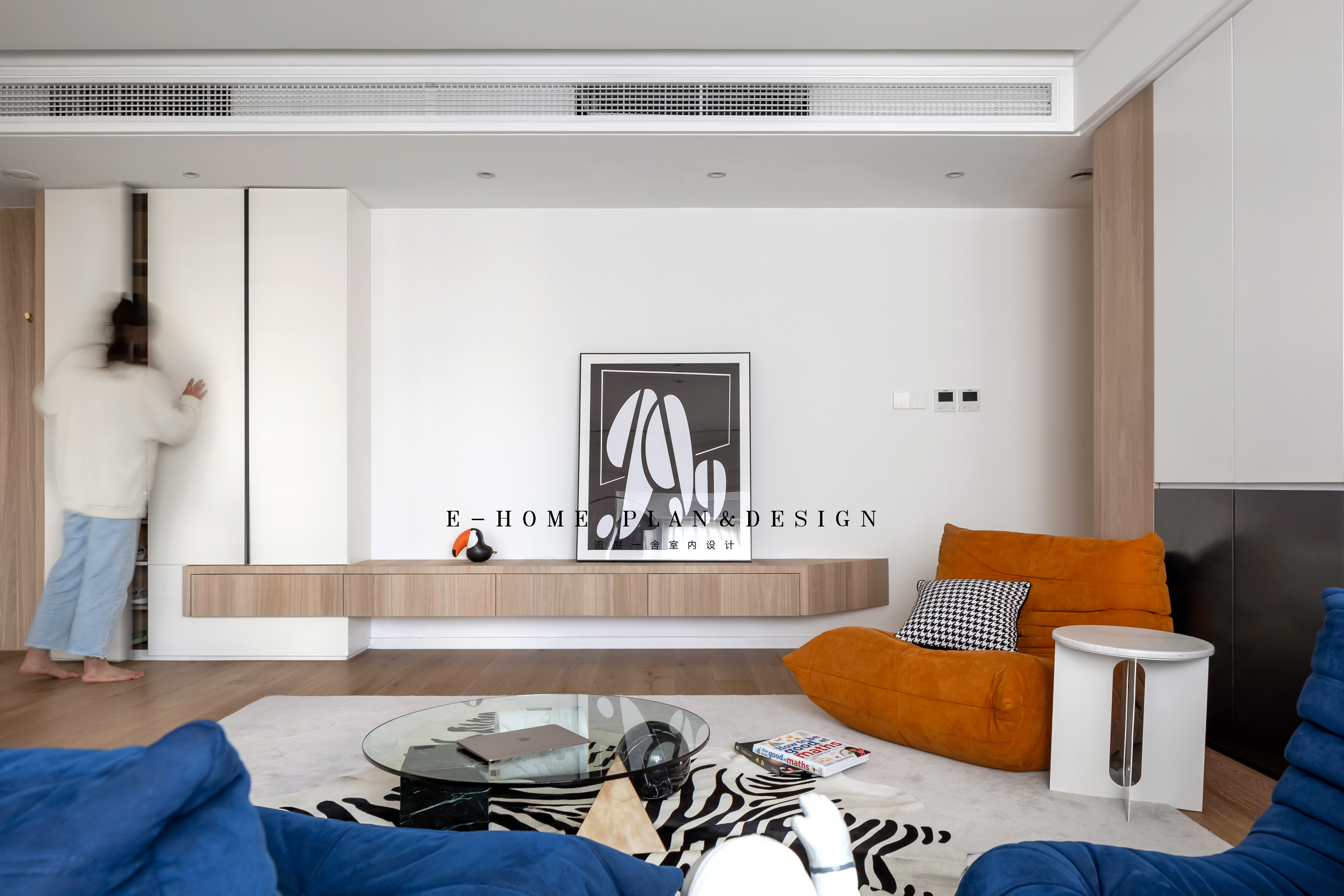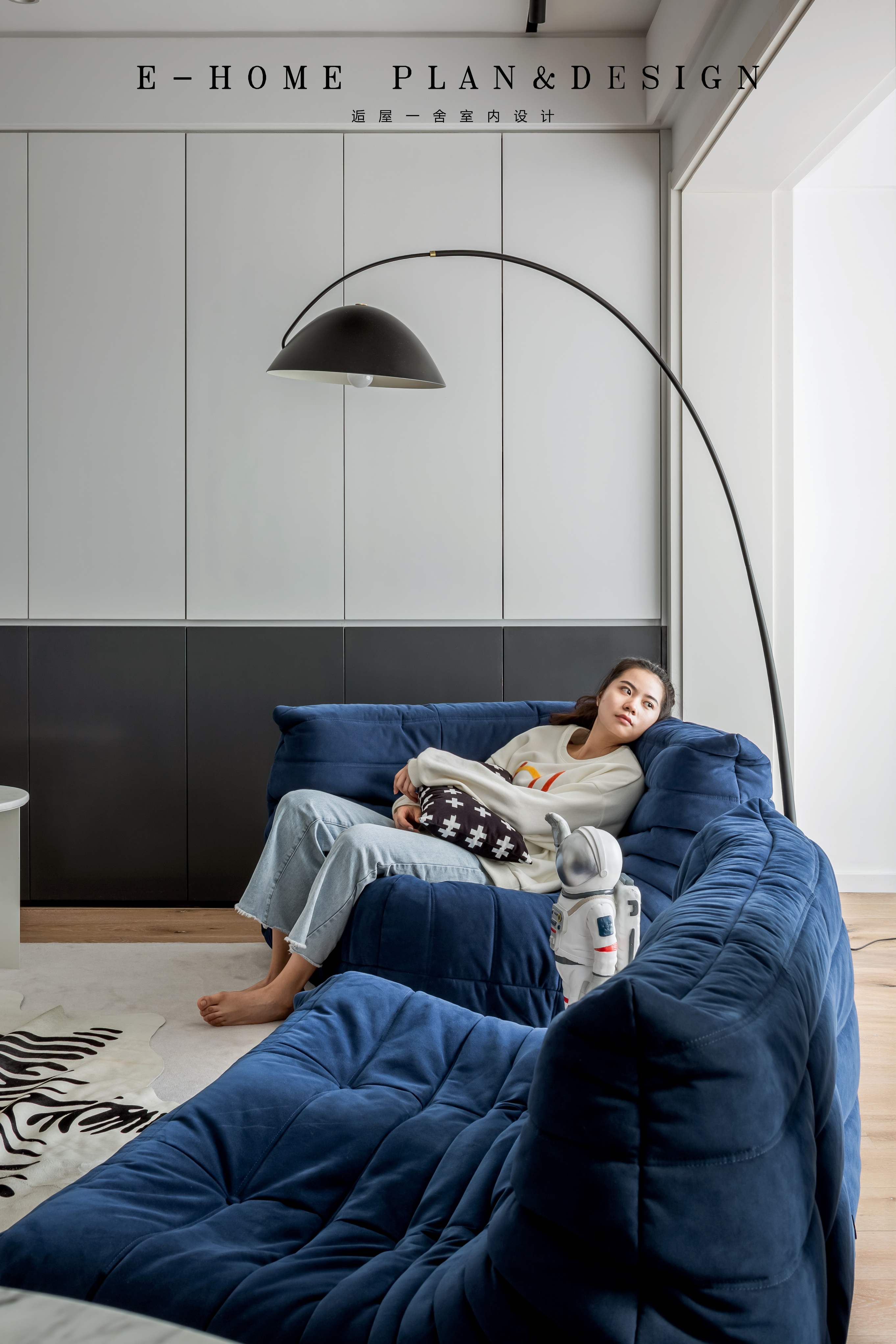 LIGNE ROSET TOGO的毛毛虫沙发,带着自由和舒适的气息出现,因为其款式较矮,又离储物柜很近,所以柜门采取上下分色处理,深色部分与人的视线持平,更容易有放松和开阔感。 在这里,沙发不限于一种组合模式,是孩子们的好玩伴,也承载得起成人们的侃侃而谈。