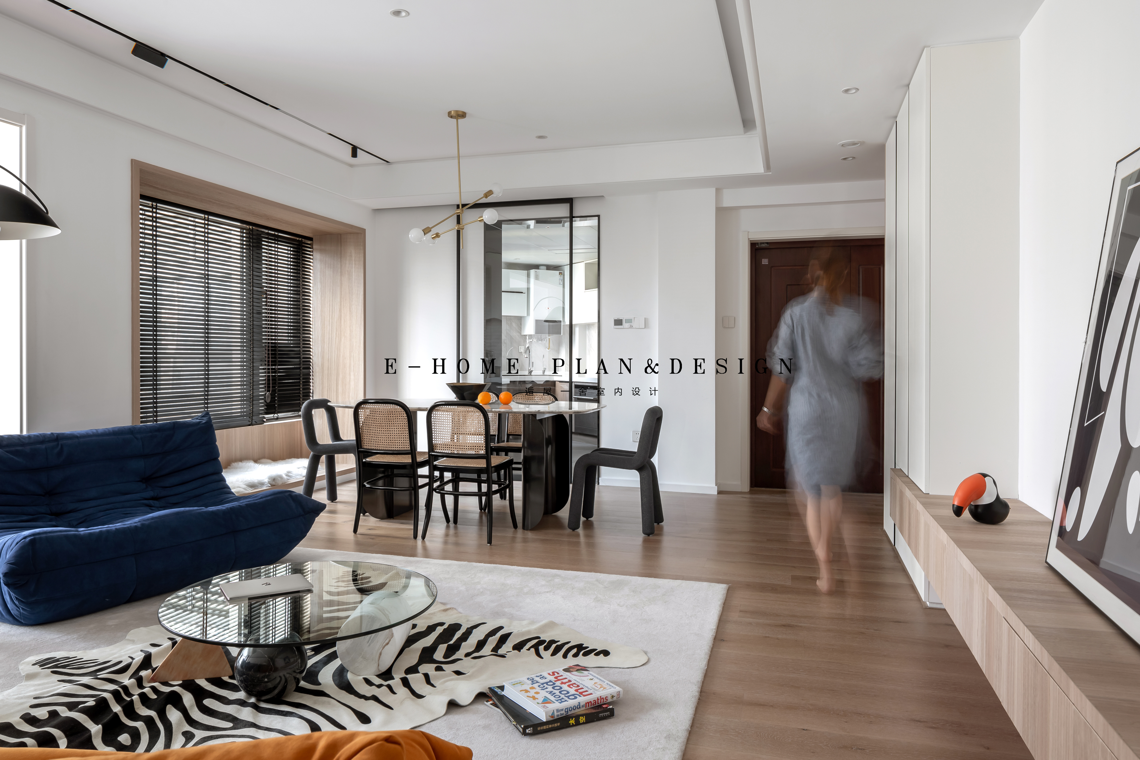 坐在沙发上望向入户门,一张温厚的地毯作为自然的边界,区分着客厅和餐厅的功能区。 孩子们的玩乐和成人们的烹饪聚会,有了天然的屏障而怡然自得。 家中氤氲着蒸腾热气的餐桌前,平淡的一餐,是我们最为温暖的记忆,“你们玩着,我去给你们做好吃的”,是听过最温暖的话,当下都可实现。