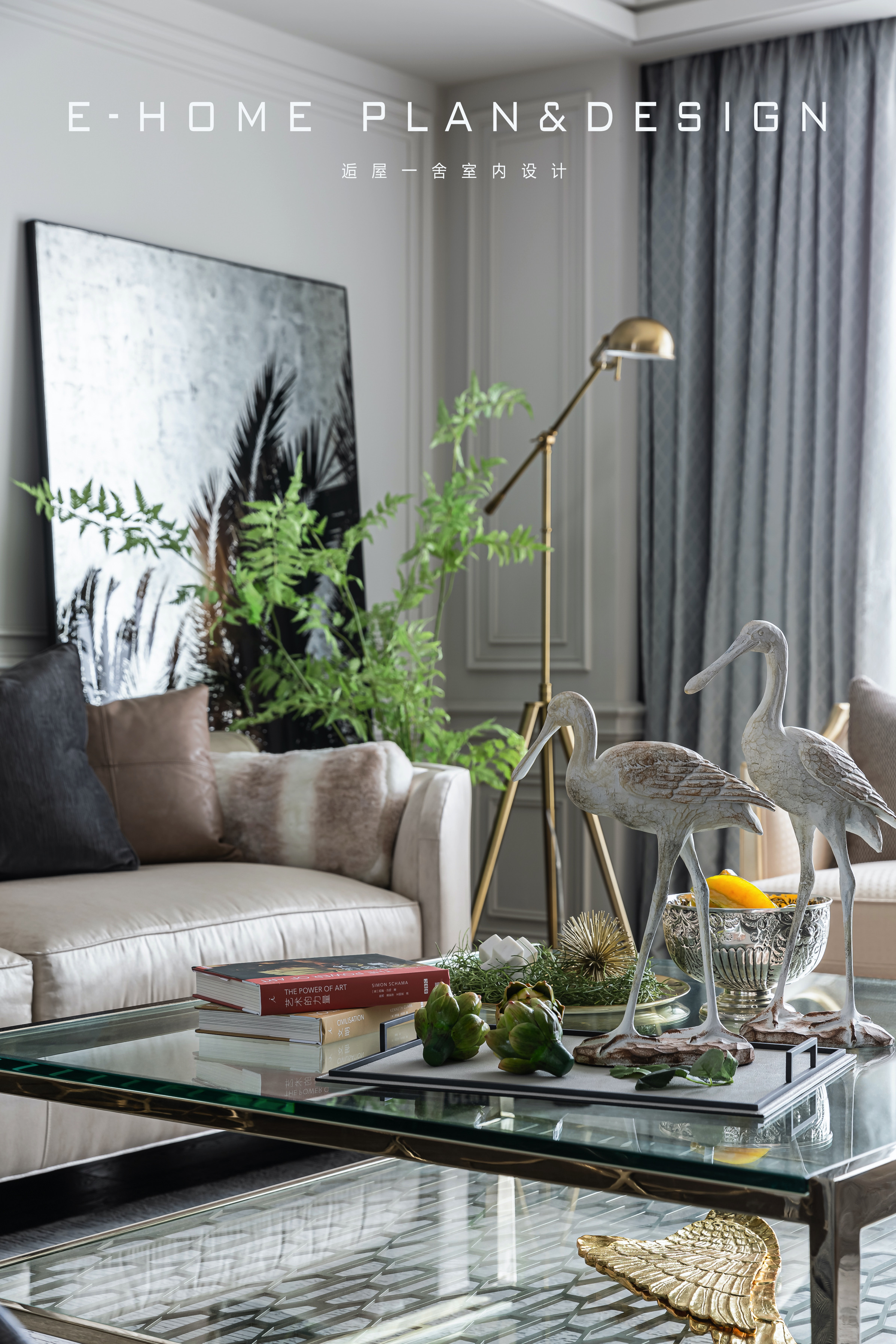 浅色的布艺穿插着精致的香槟色金属件,美克美家经典的金色翅膀摆件、甚至是全房的小饰品,都在这个幸福的房子里散播着女主人内心的温柔与精致。