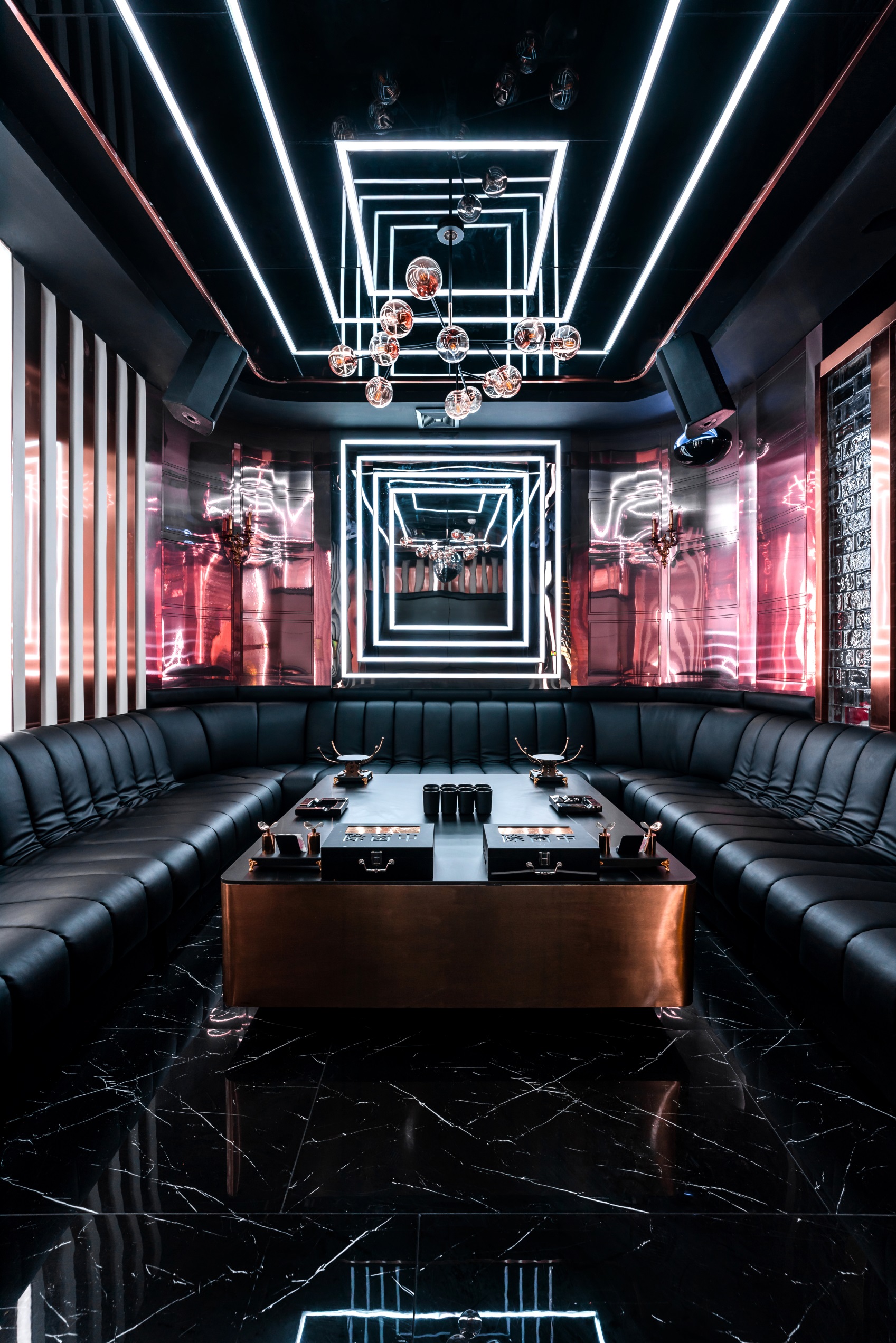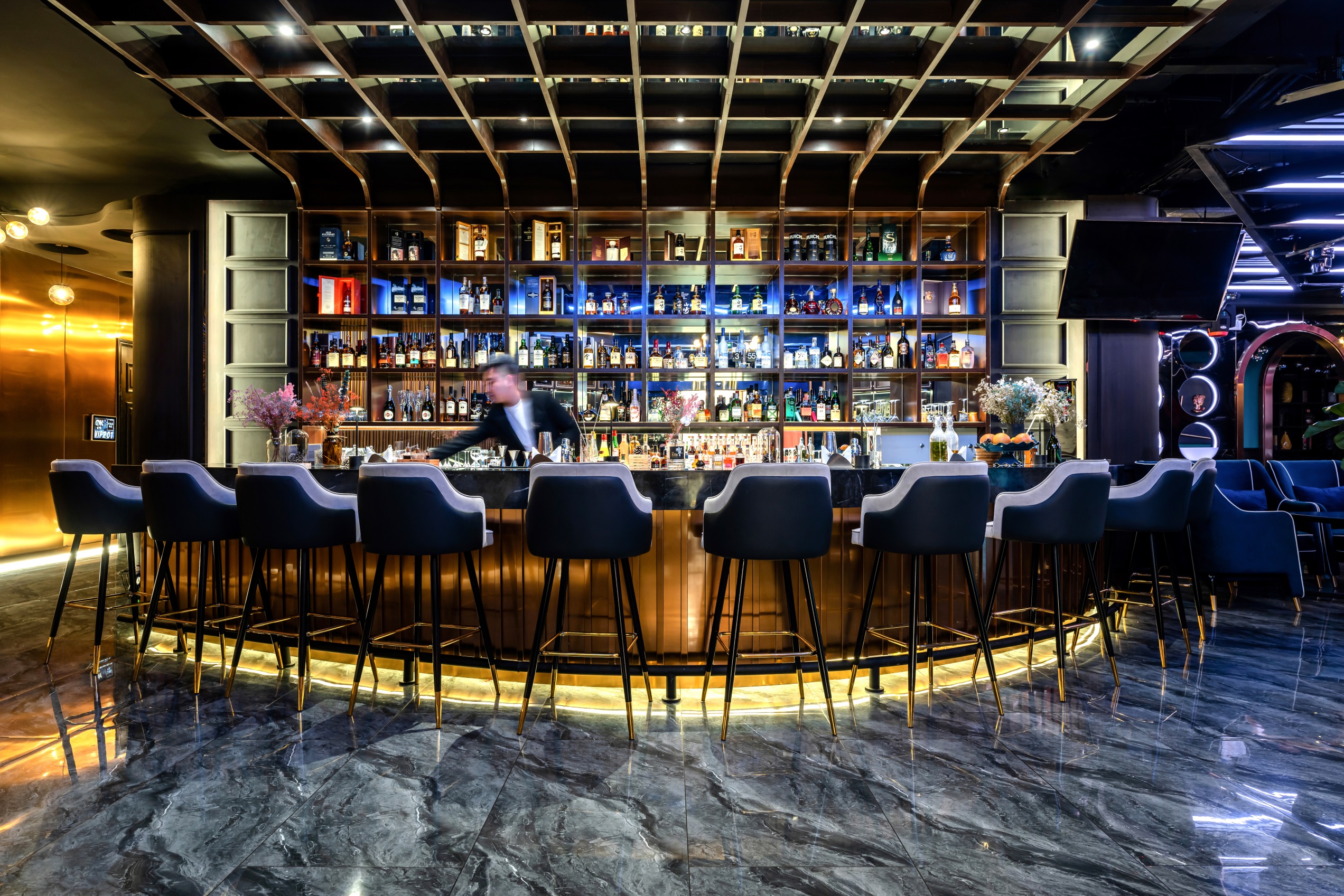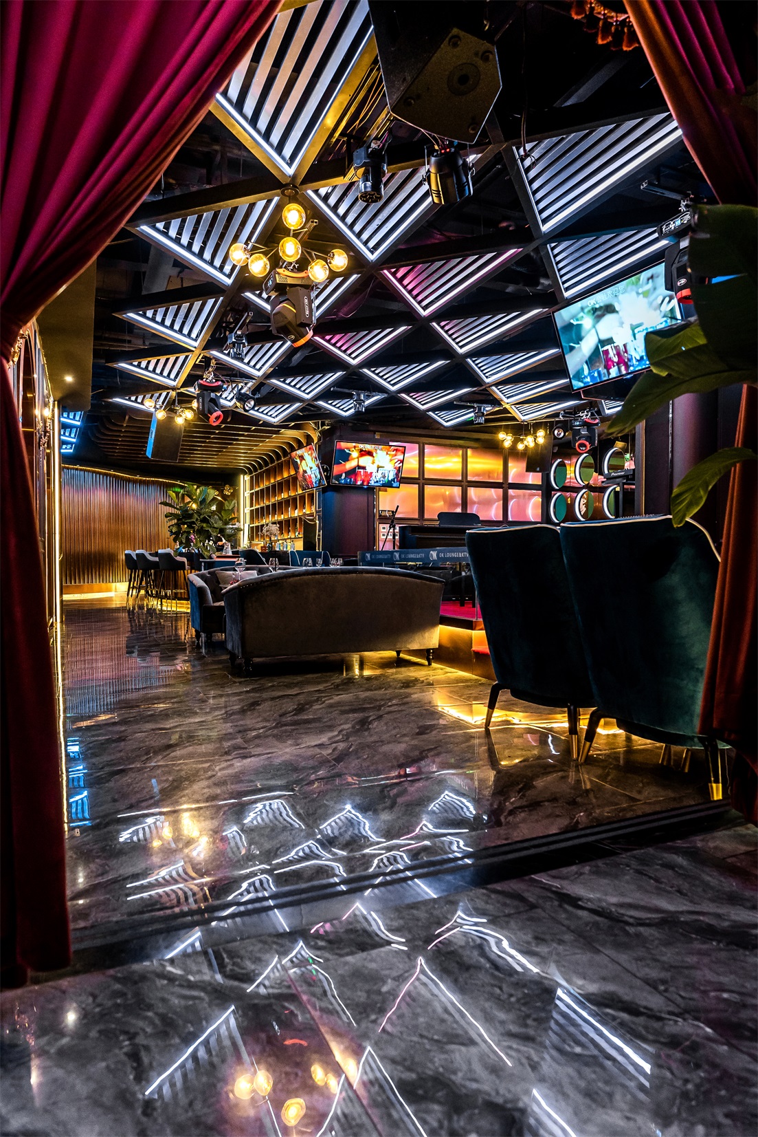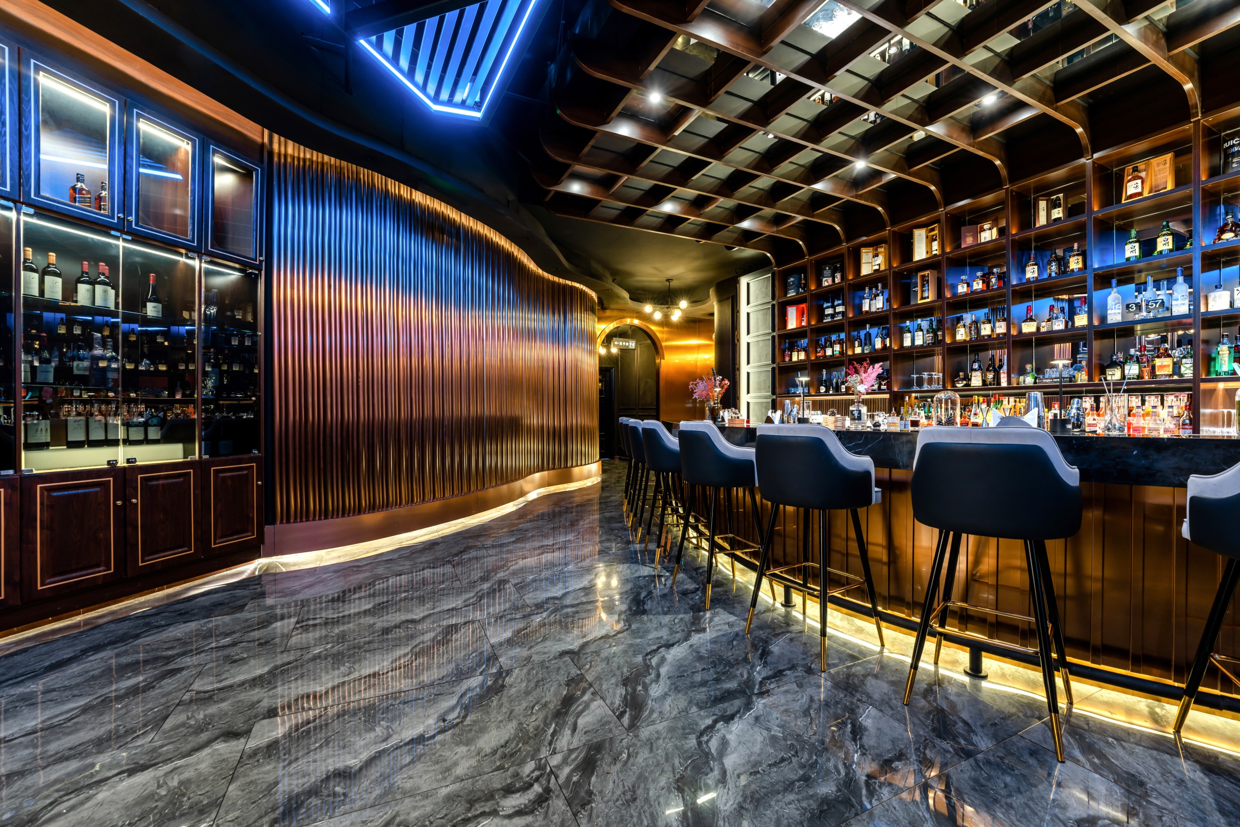 配以各种灯光的运用来营造独特的酒吧氛围。