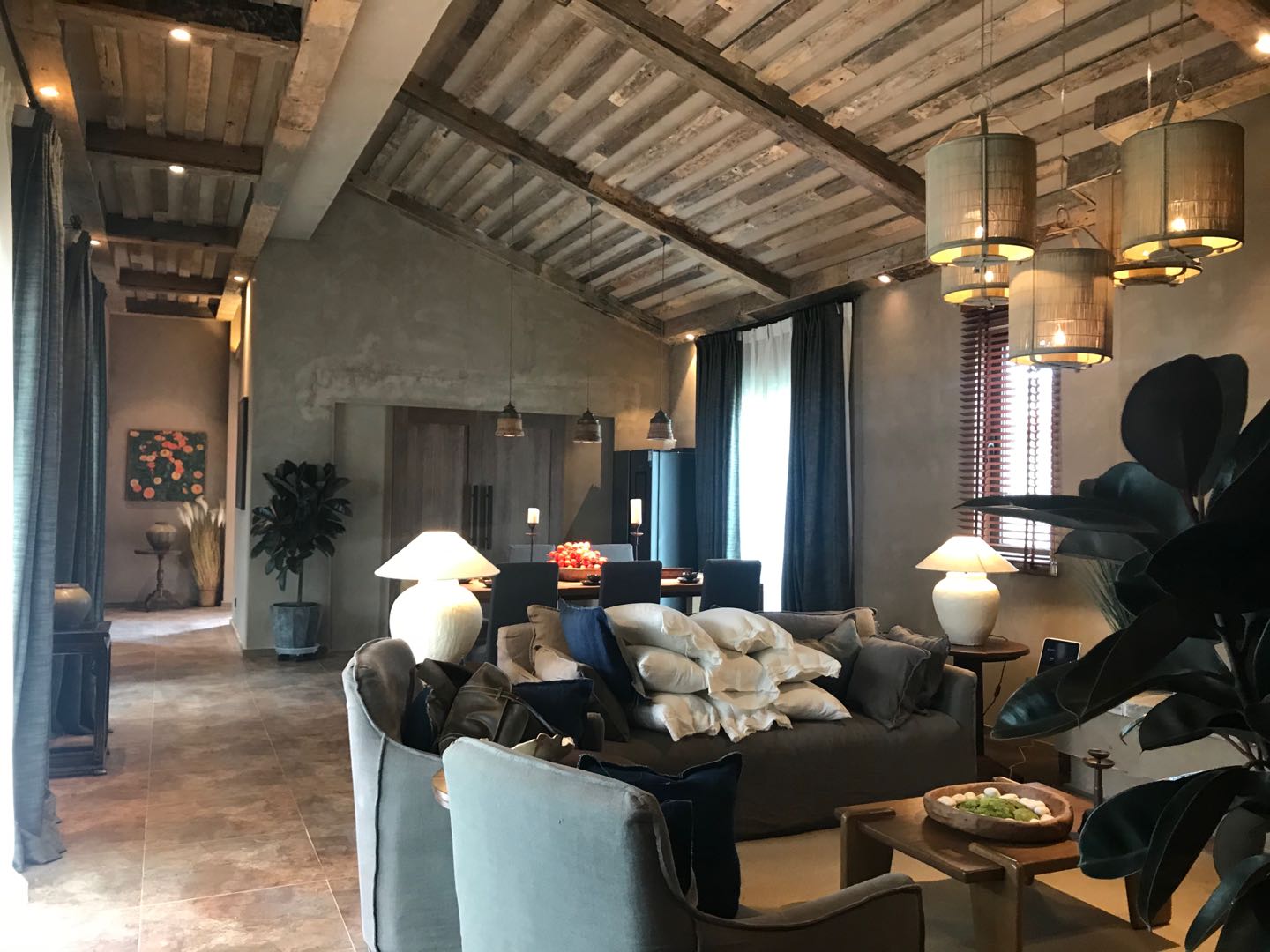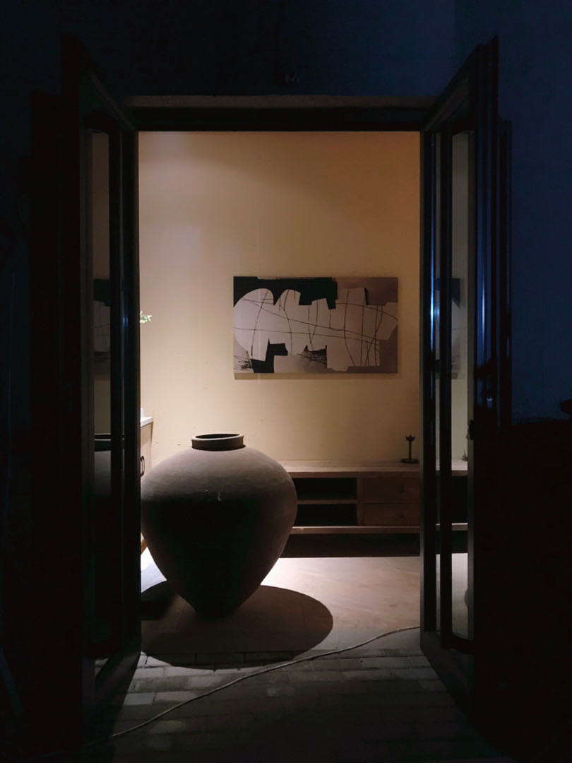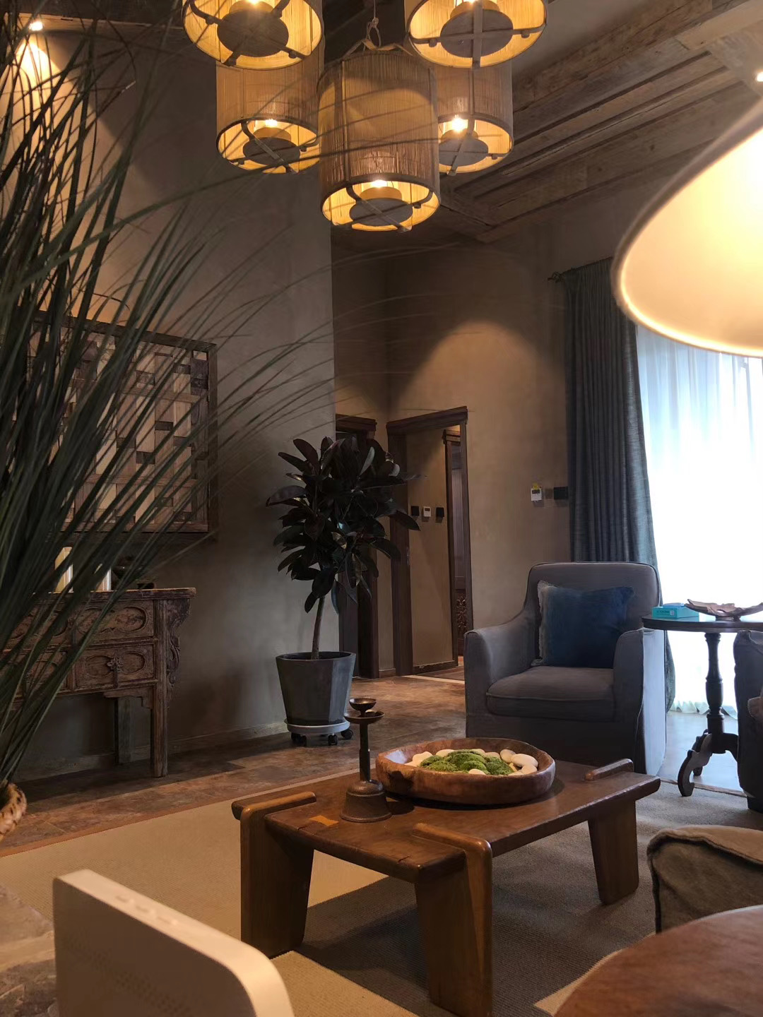 空间布局:民宿样板间分为两个院落,分别为16号院和19号院。原建筑外观呈凹字型,采光性能较差,开间体量也无法满足住宿、休闲娱乐的诉求,需要设计师对空间布局作重新调整,提高舒适度的同时,梳理人与自然的关系。室内采用去“中心化”的设计手法,将客厅、餐厅、卧室的动线规划纳入同一空间作考量。通过材质、色调、灯光的变化,来表现空间的递进关系,手作陈设简单而朴素,透露着几分禅意。