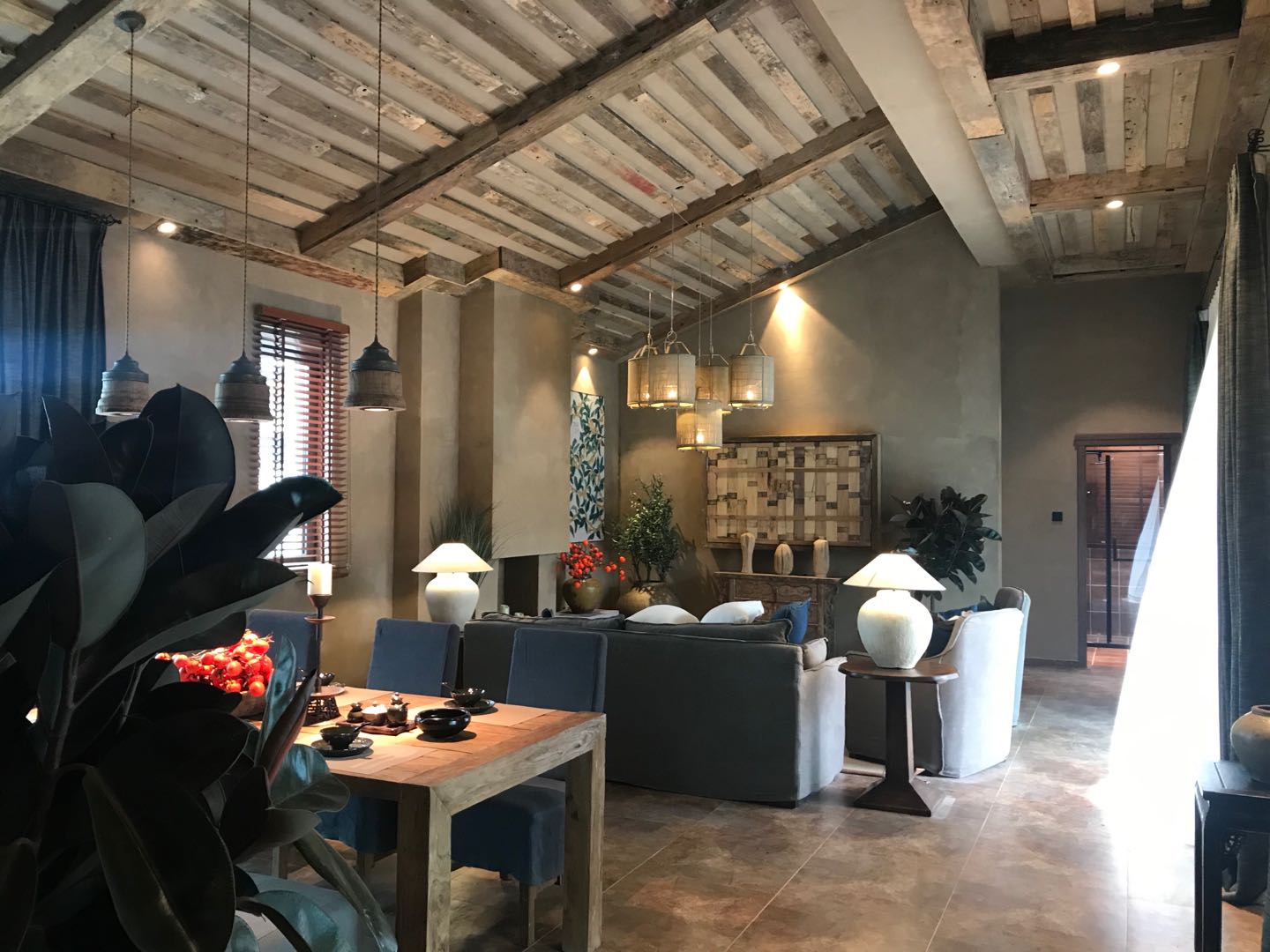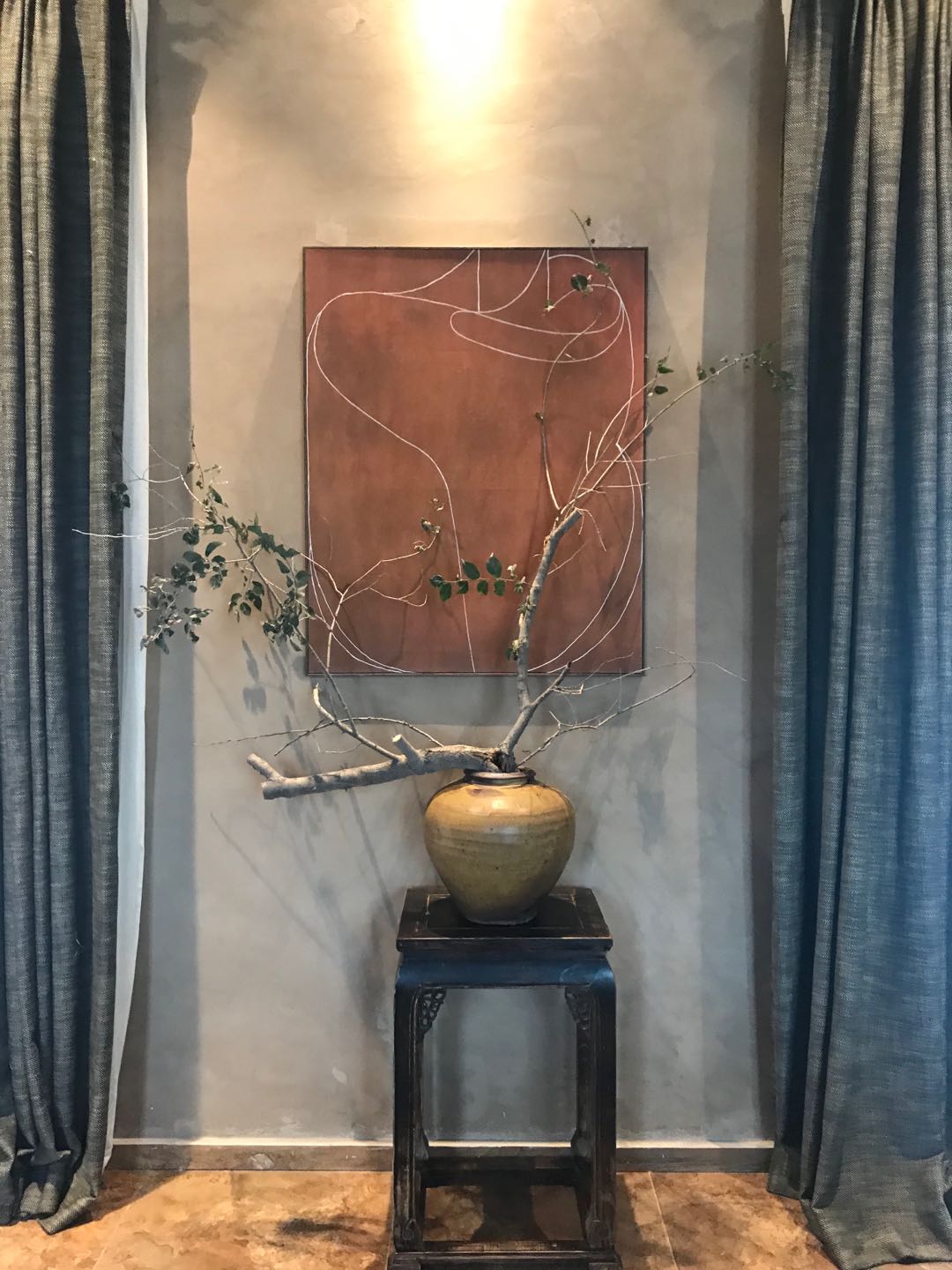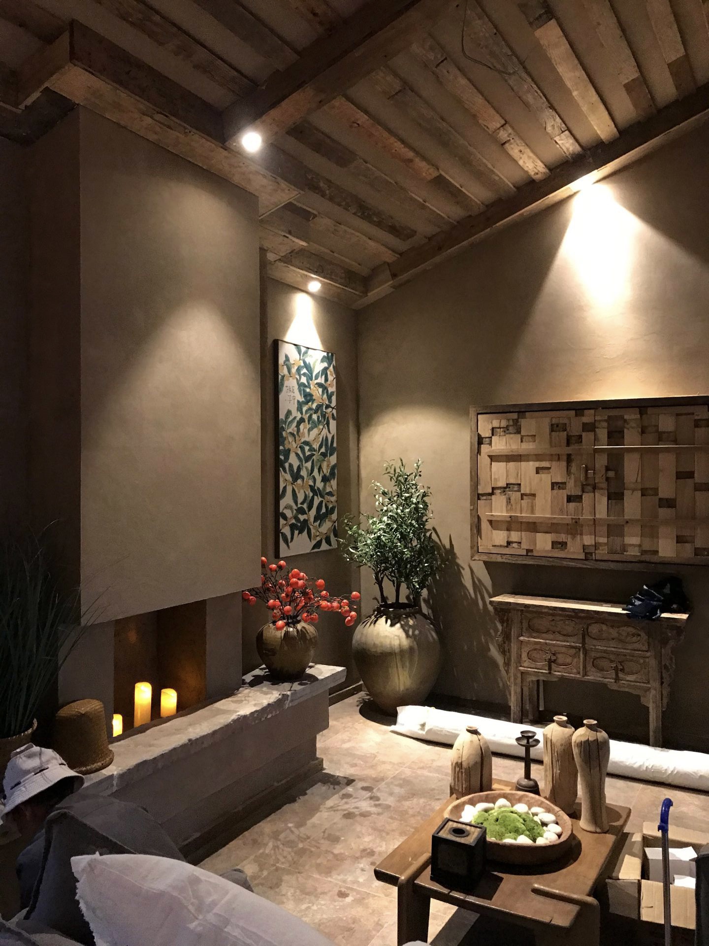 空间布局:民宿样板间分为两个院落,分别为16号院和19号院。原建筑外观呈凹字型,采光性能较差,开间体量也无法满足住宿、休闲娱乐的诉求,需要设计师对空间布局作重新调整,提高舒适度的同时,梳理人与自然的关系。室内采用去“中心化”的设计手法,将客厅、餐厅、卧室的动线规划纳入同一空间作考量。通过材质、色调、灯光的变化,来表现空间的递进关系,手作陈设简单而朴素,透露着几分禅意。
