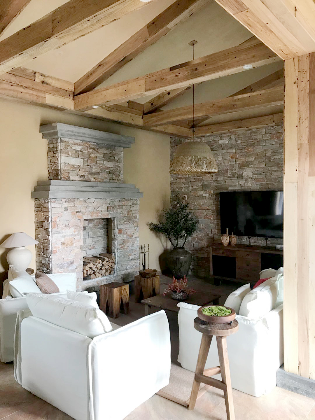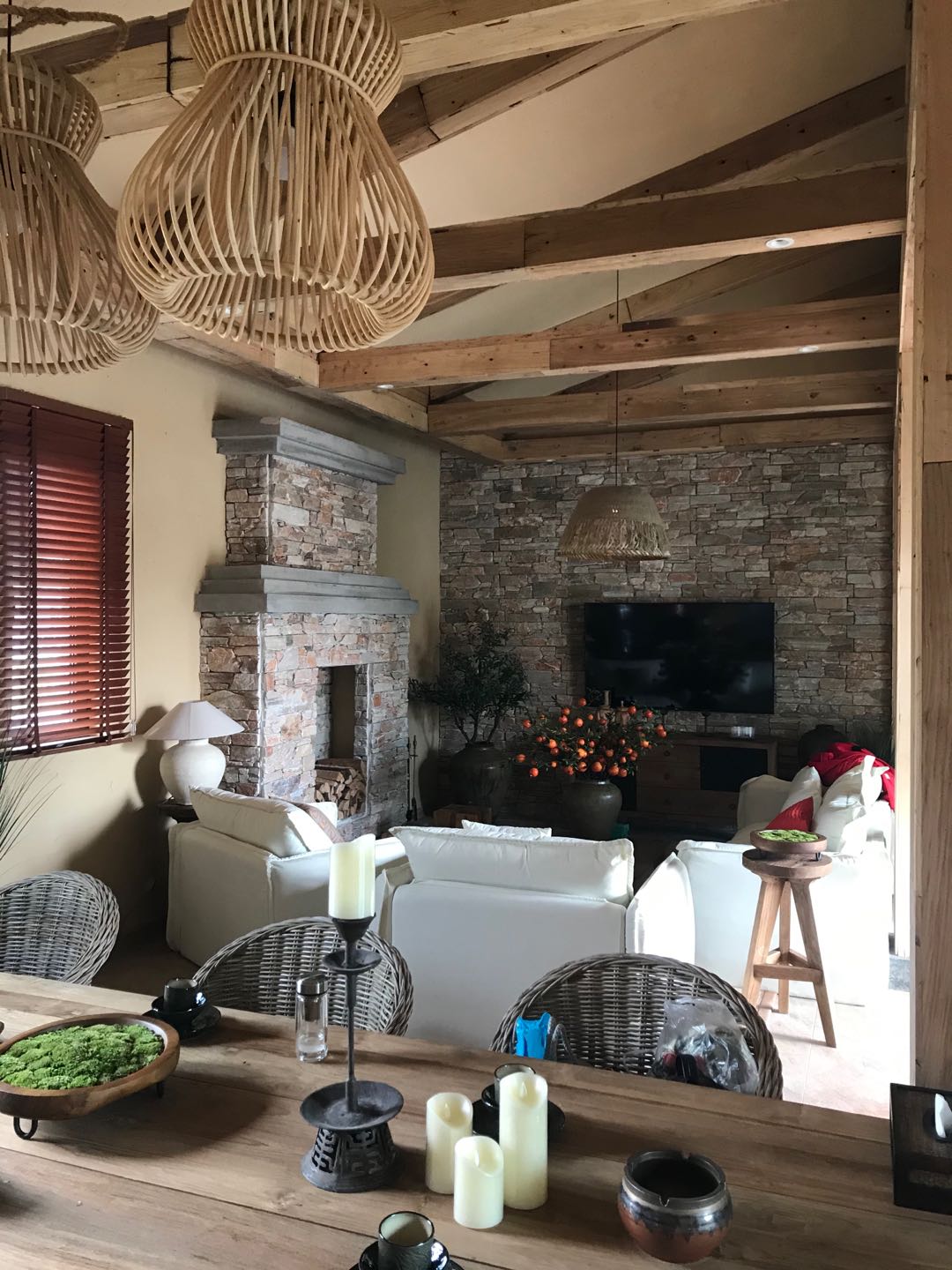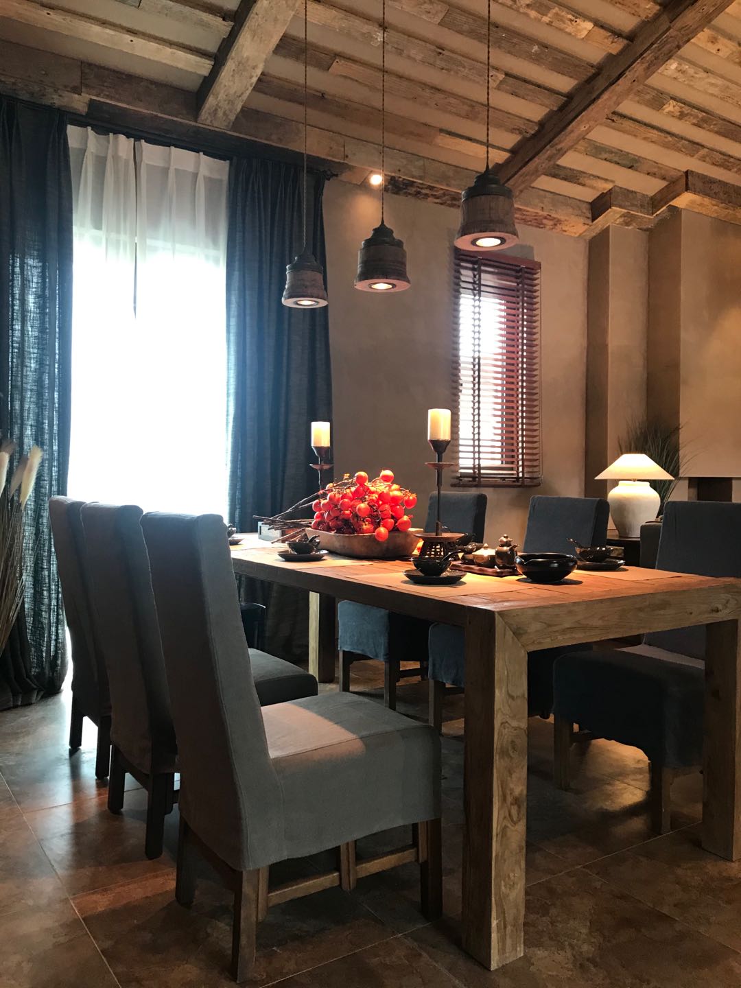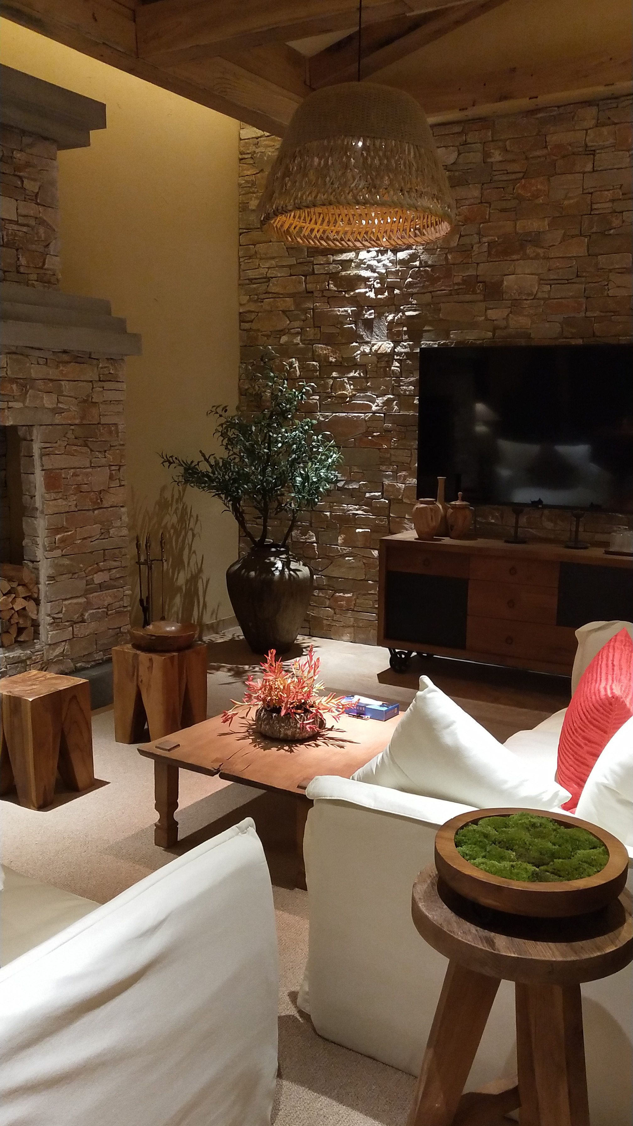 设计选材:设计团队就地取材,从山里搬来的毛石被平整地放置在夯实的地基上,砌成自然而原始的围墙,以呼应西北地区粗犷的乡土气质。空间墙面及原顶面选用稻草漆饰面,漆泥斑驳的肌理自带拙朴气质,让人想起田间慵懒的画面。