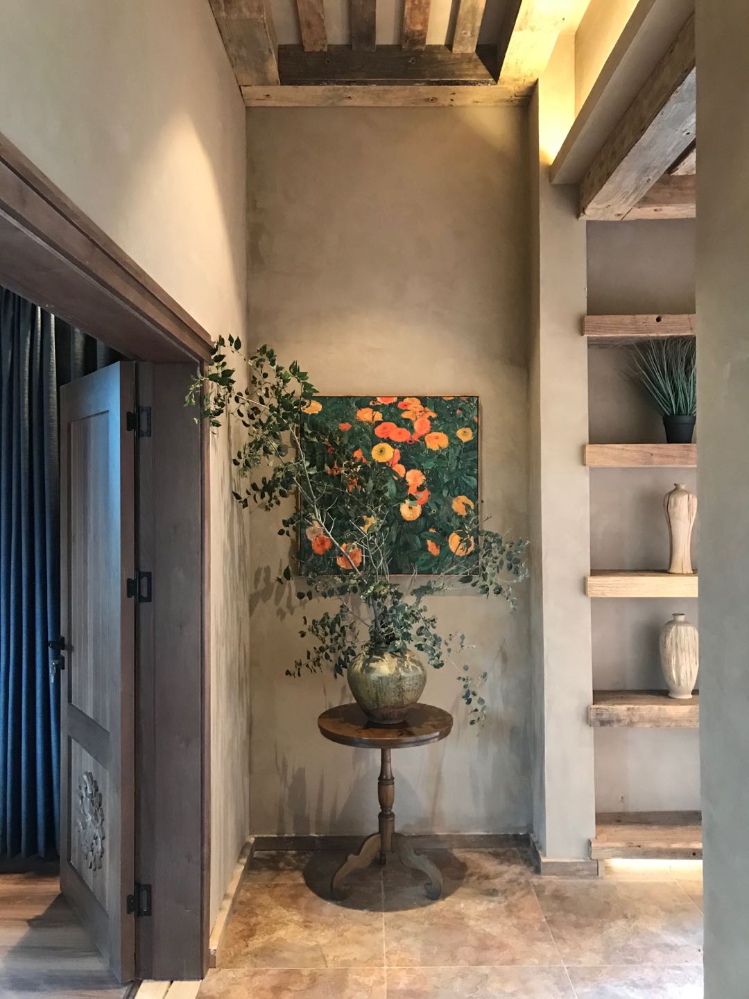 空间意境:栖云田园小镇样板间,地处榆中县生态旅游区,周边植被繁茂,阡陌纵横。民宿从方案设计到施工落地一共用了10天时间,营造出具有侘寂氛围的诗意栖居。