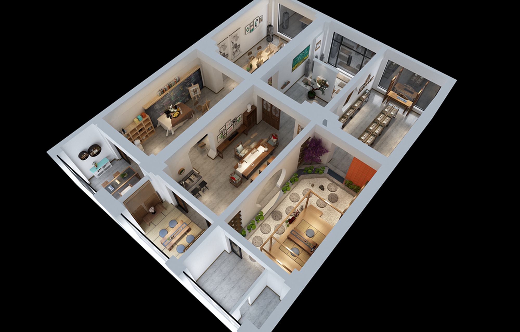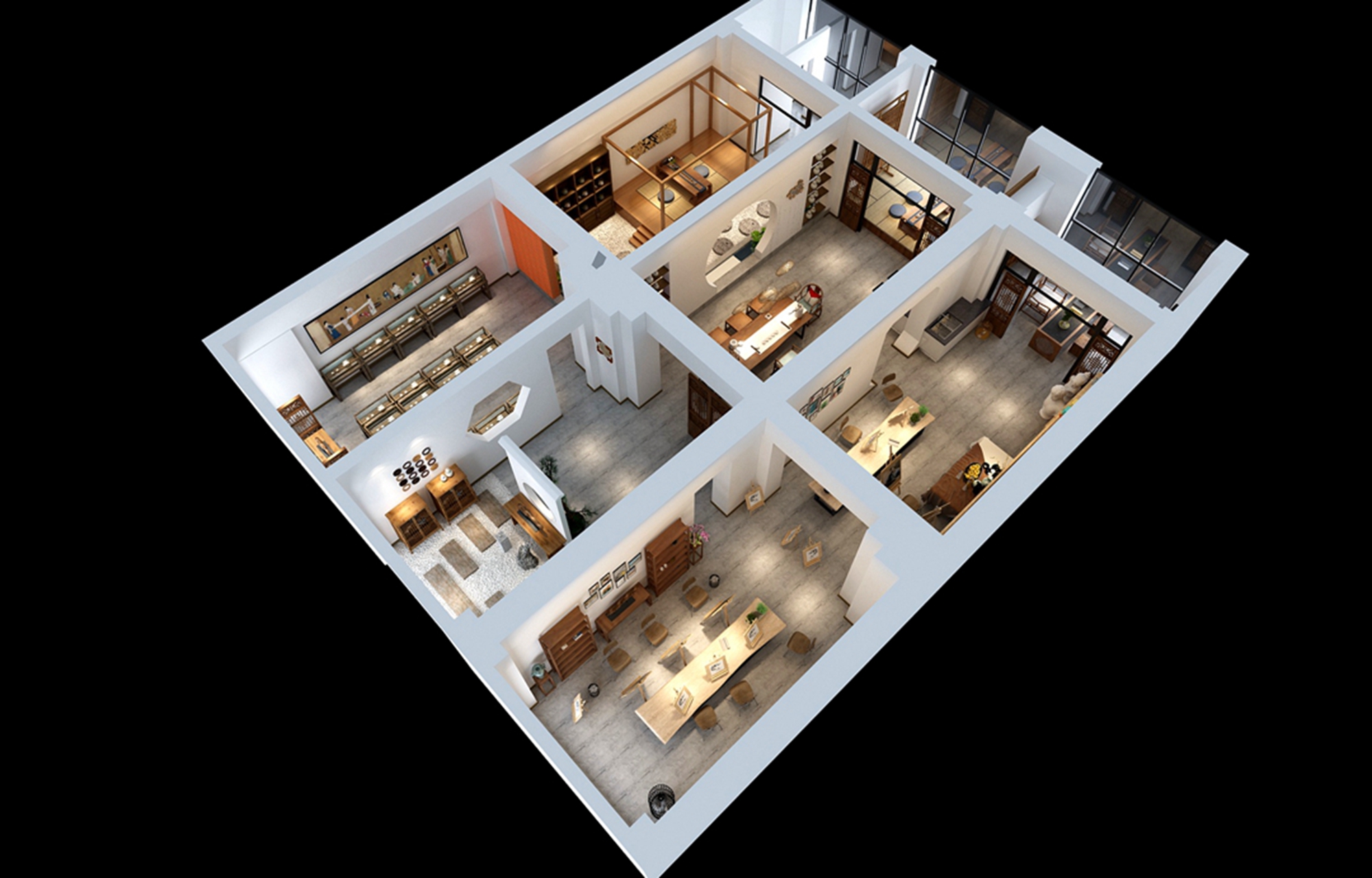 空间布局:室内空间的设计在解决了功能合理性之后去建构简约思想中气质美学,将这种美学转化在空间之中,文化的气质与功能形式的建构内在秩序的一致性