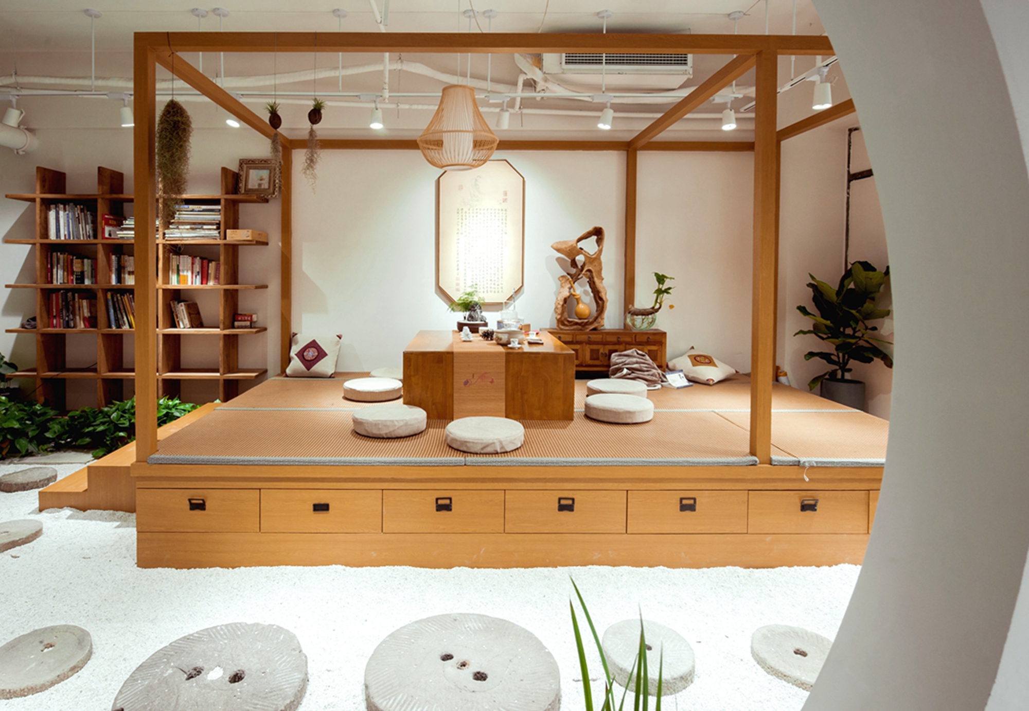 设计选材:质朴的就地取材在这,可以获得喧嚣中的一方净土,浮躁社会的一份宁静。使用暖黄色木色为主色调,中式风格凸现古朴典雅又不失气势,在获得一种强大的沉浸式体验的同时更感内蕴,人们也觉得必须一起行动起来,不忘过去,不畏未来。