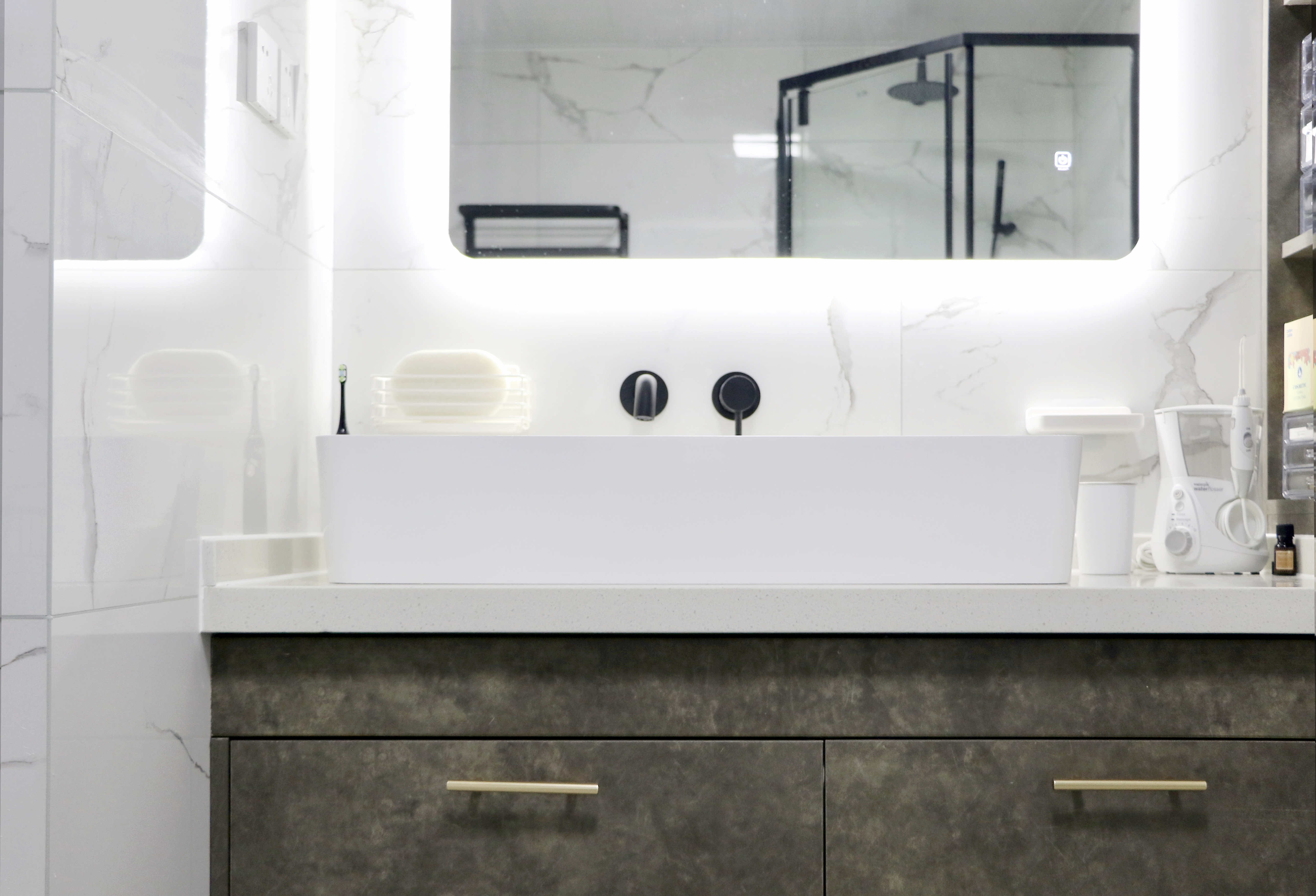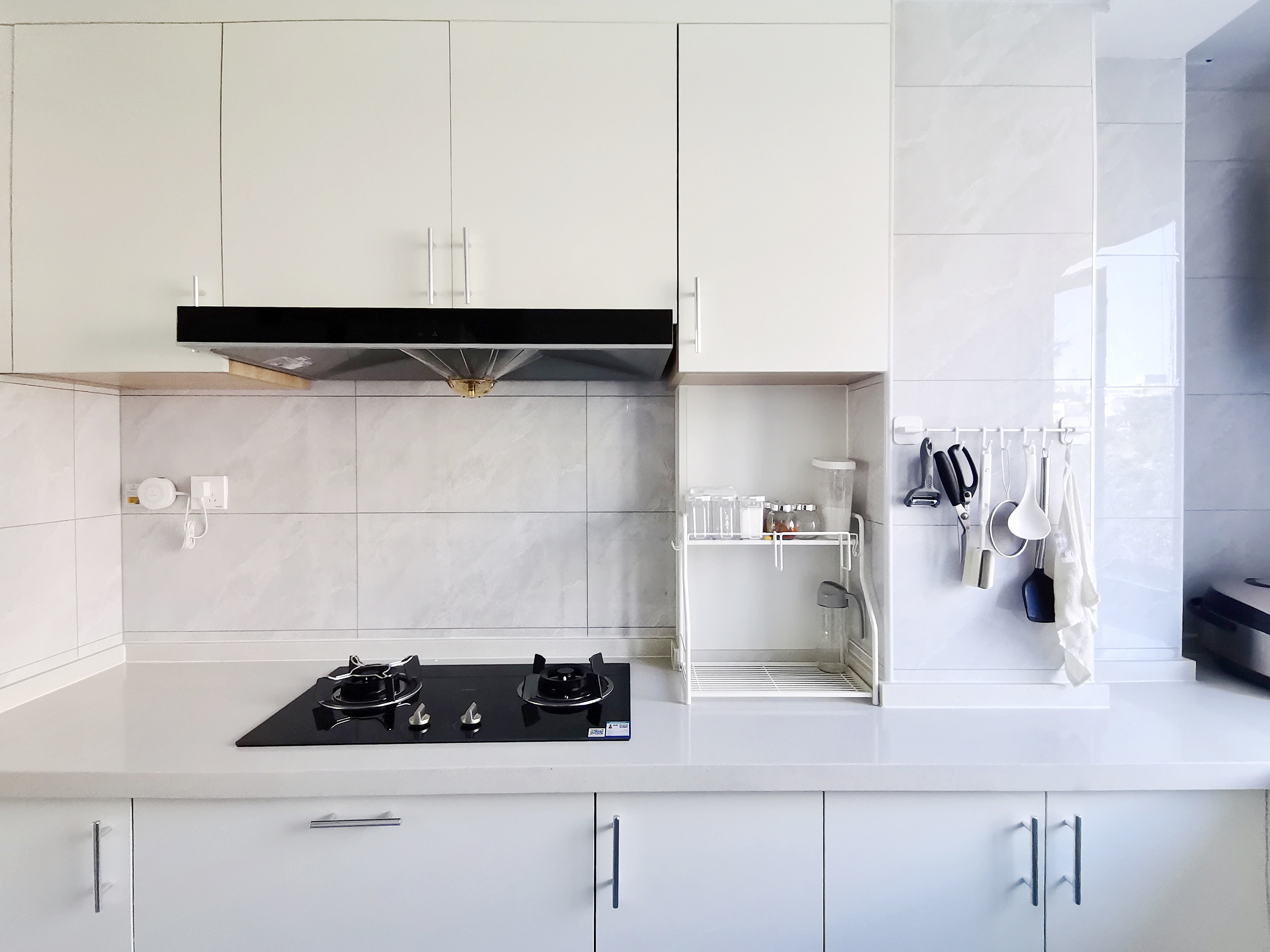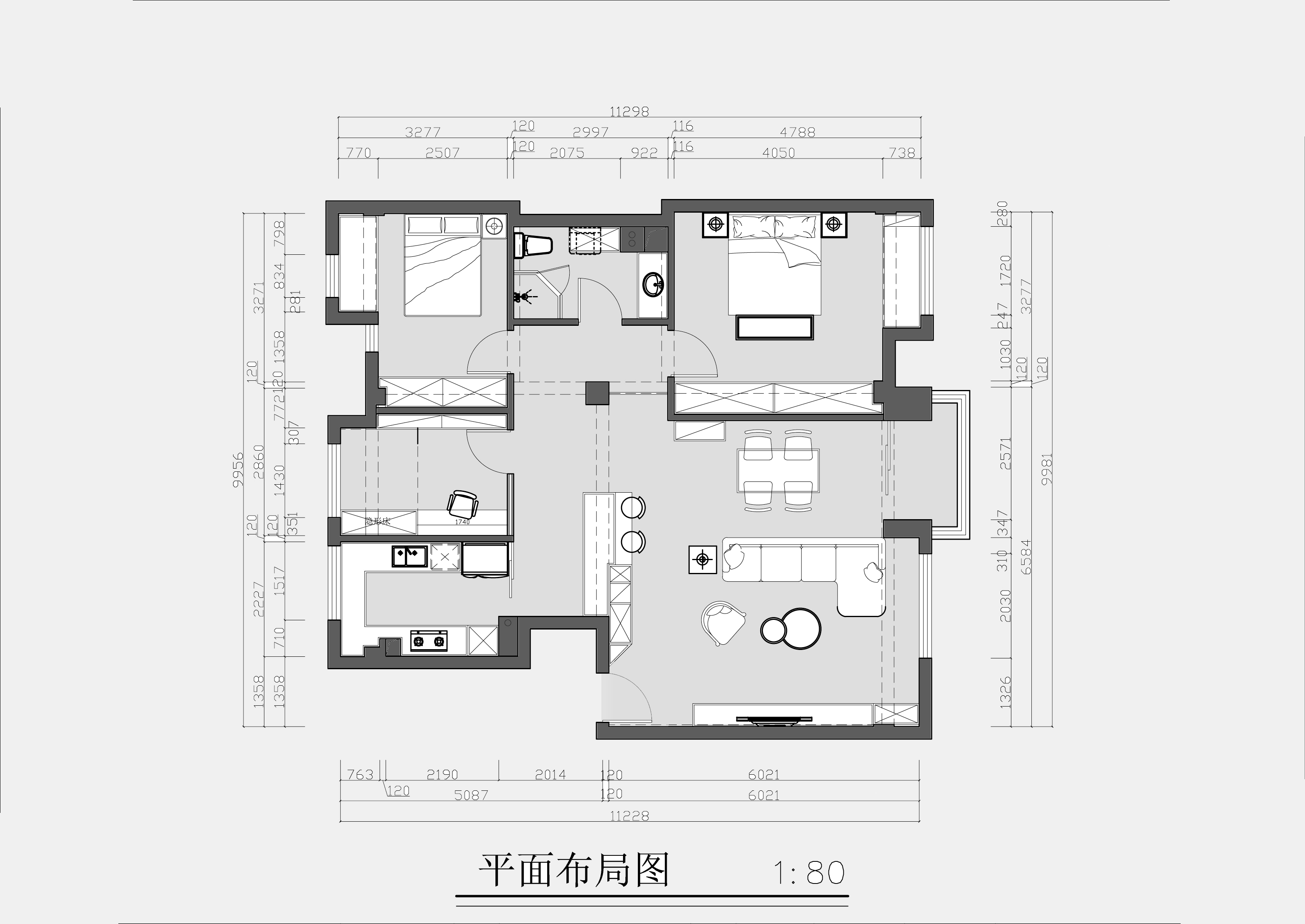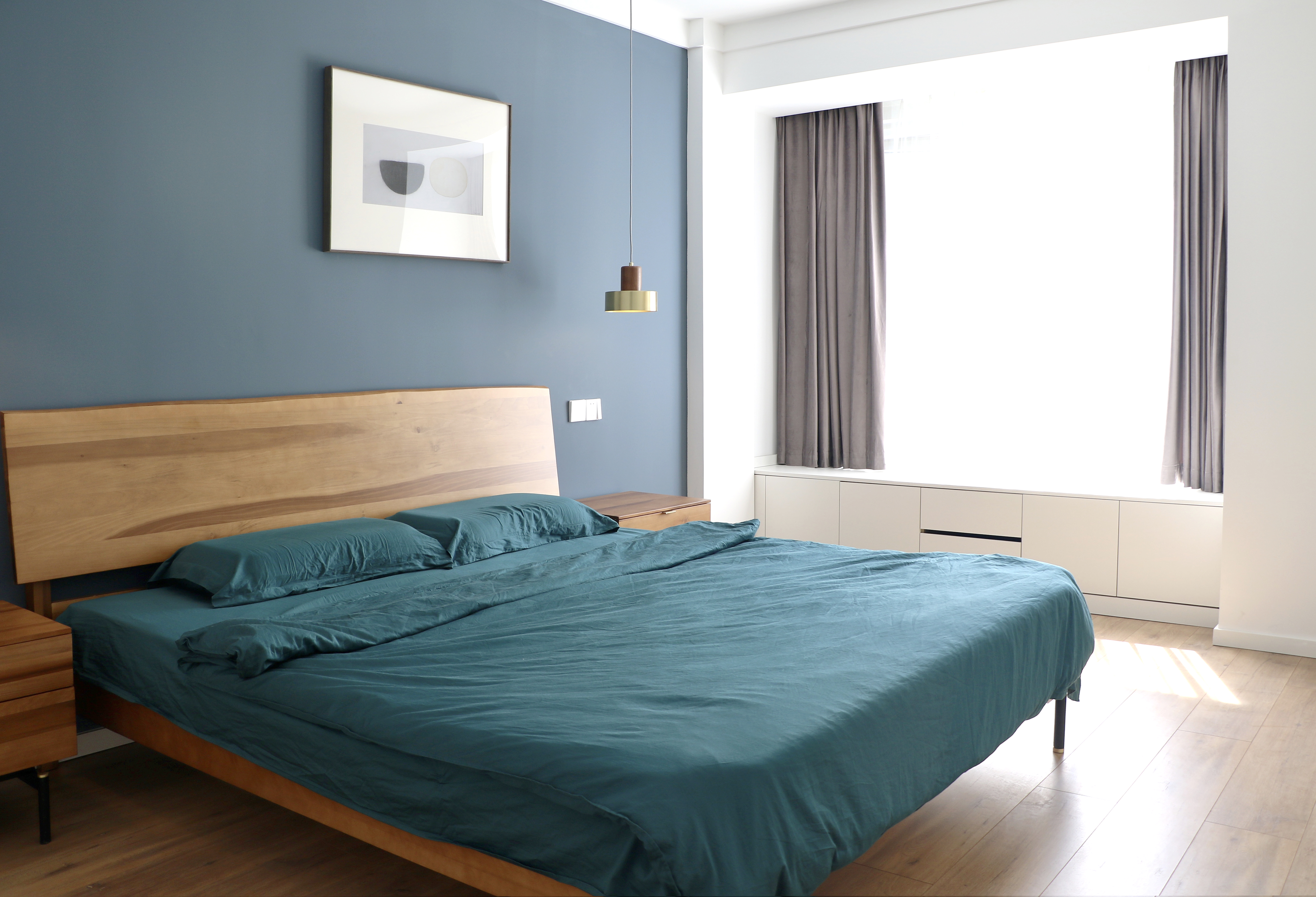 空间布局:1.空间化整为零,重新划分空间比例。2.厨房的西厨功能与公共空间的过道相融合,解决了入户的鞋衣储物功能,利用吧台做了空间视线上的延伸。3.封露台,北方冬季寒冷为了更舒适的使用,加强了密封性,露台的融入扩大了餐厅的空间,解决了衣物晾晒的空间。4.卧室空间,利用柜子隐藏建筑角,取其方正。并给卧室空间分别增贴了两面墙的整体衣物收纳柜,解决衣物存放的紧张。