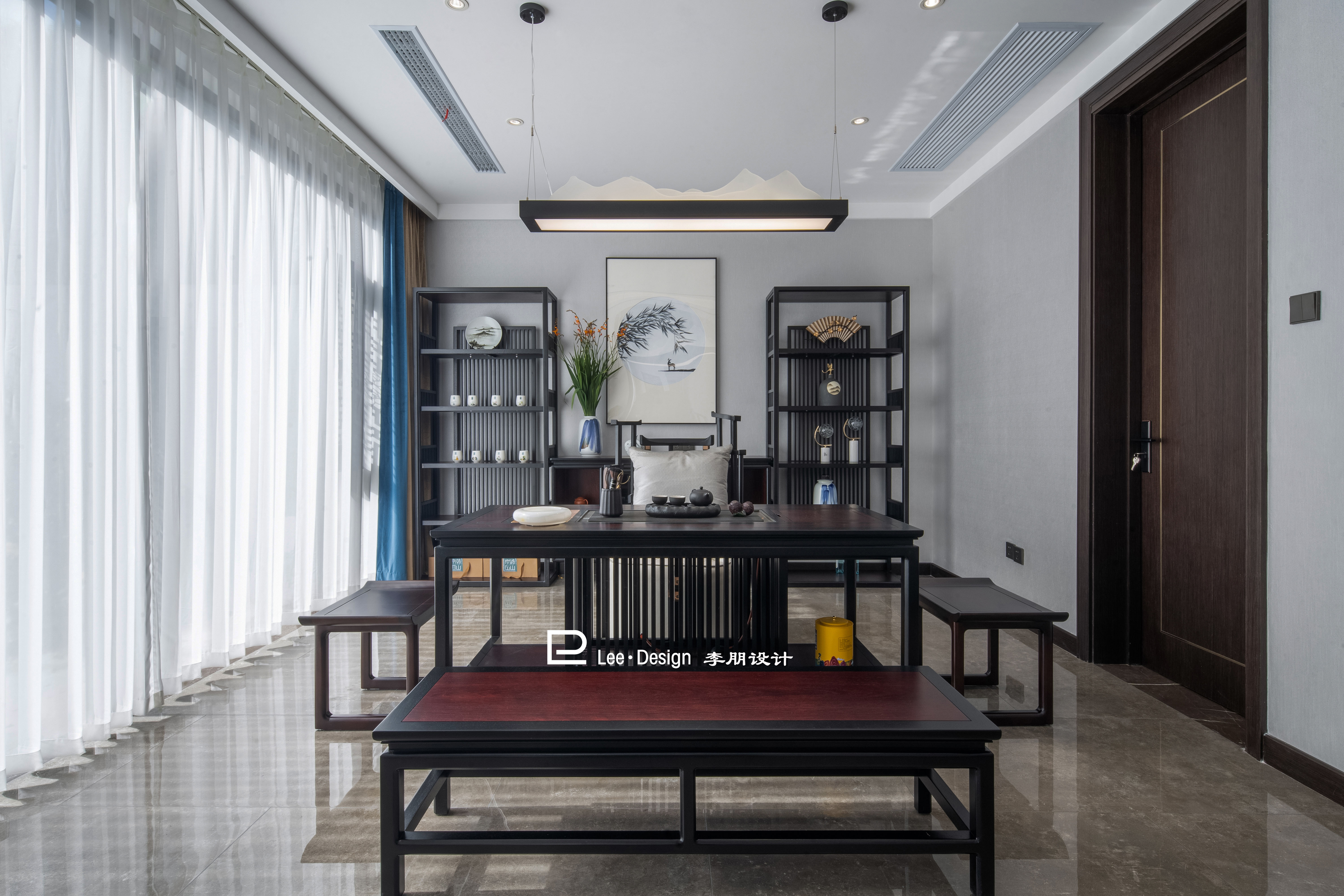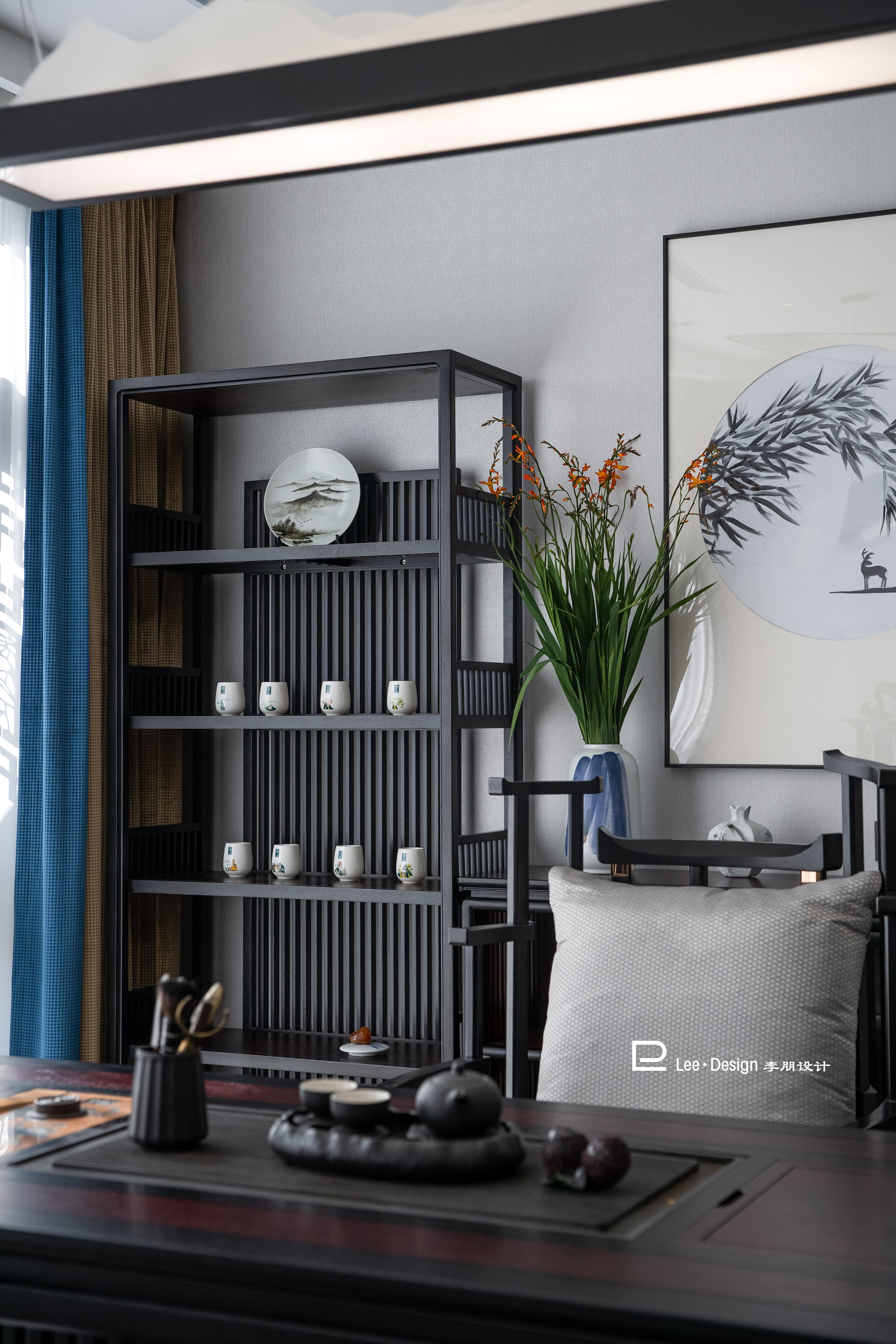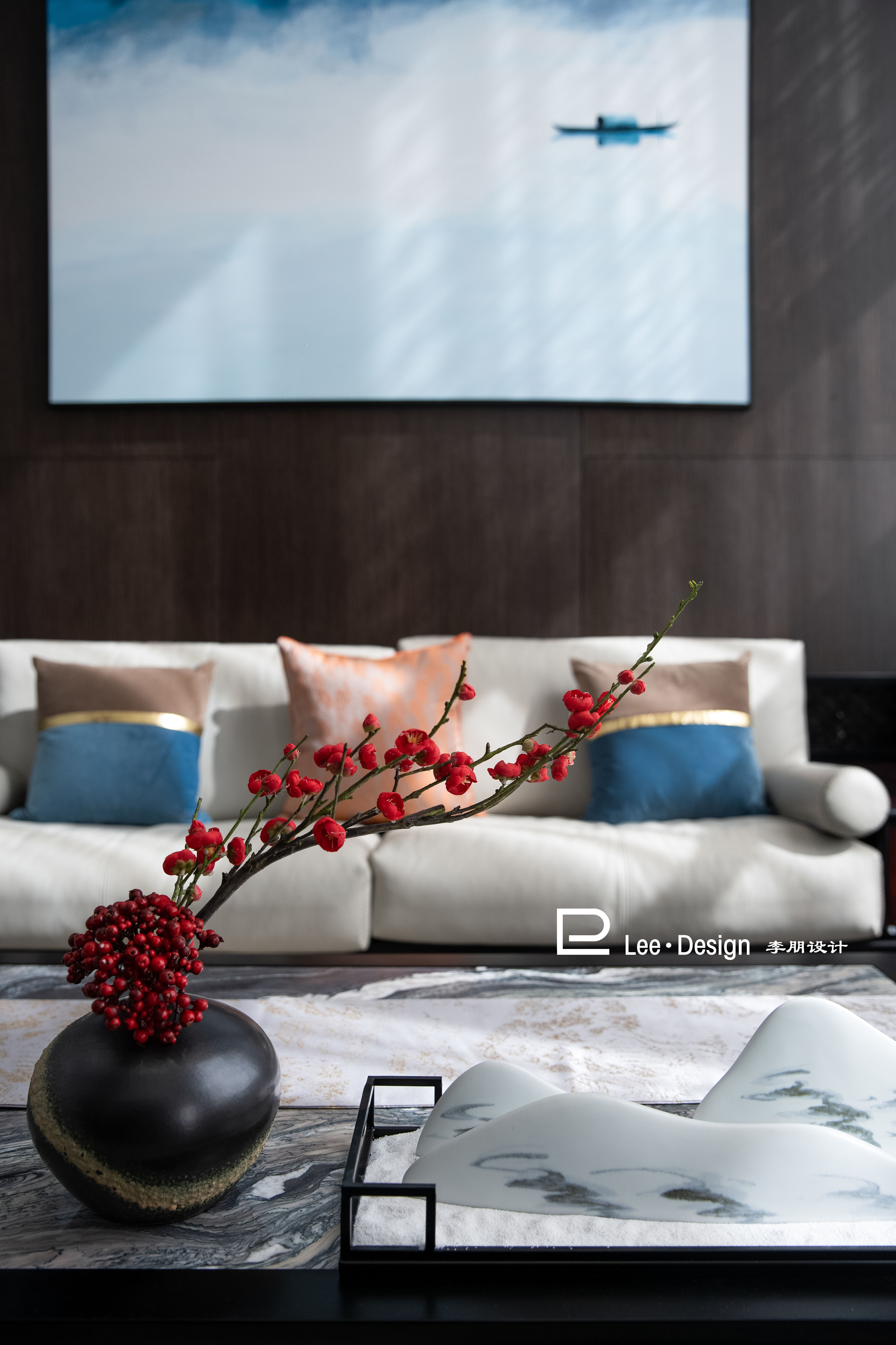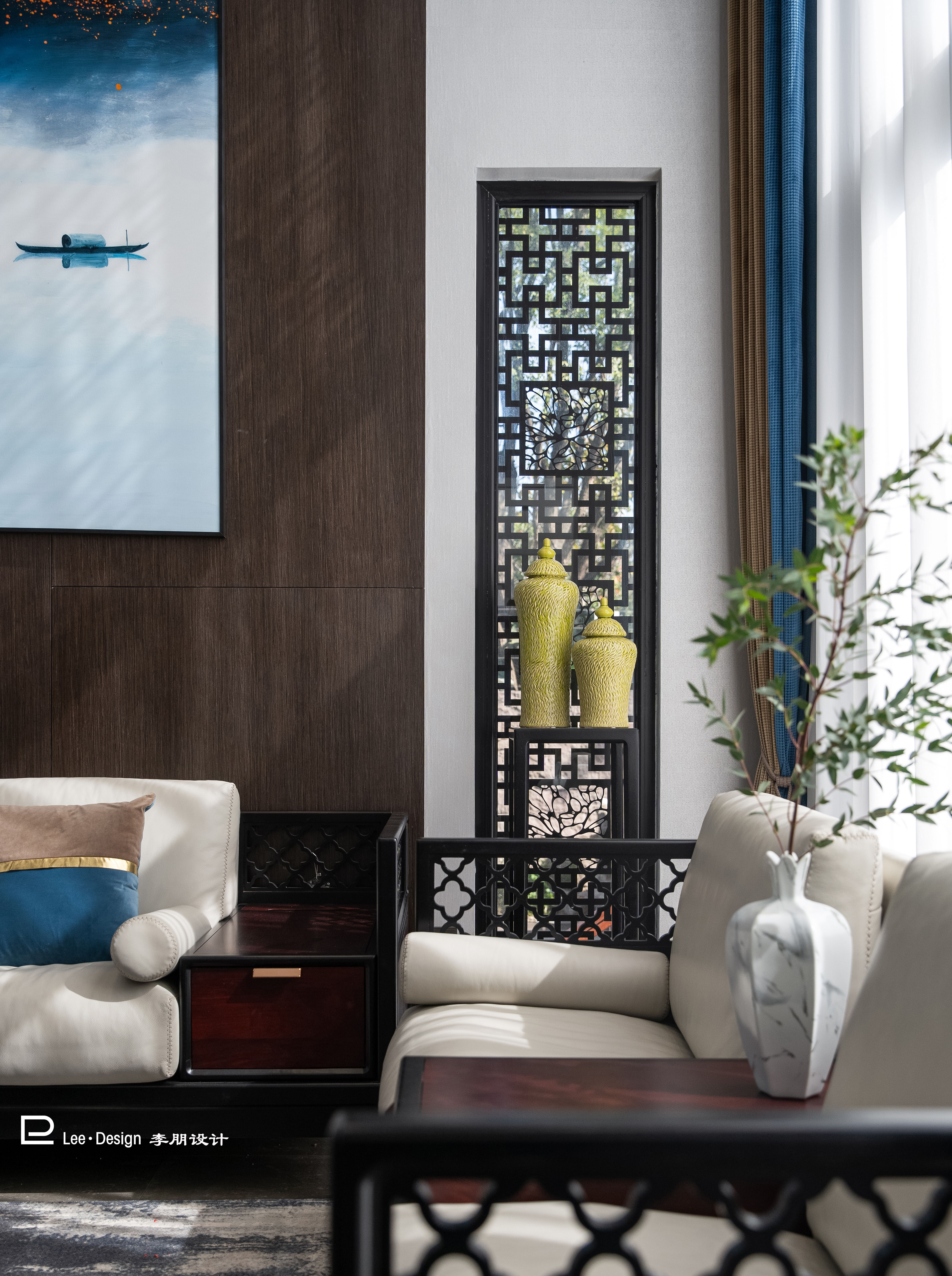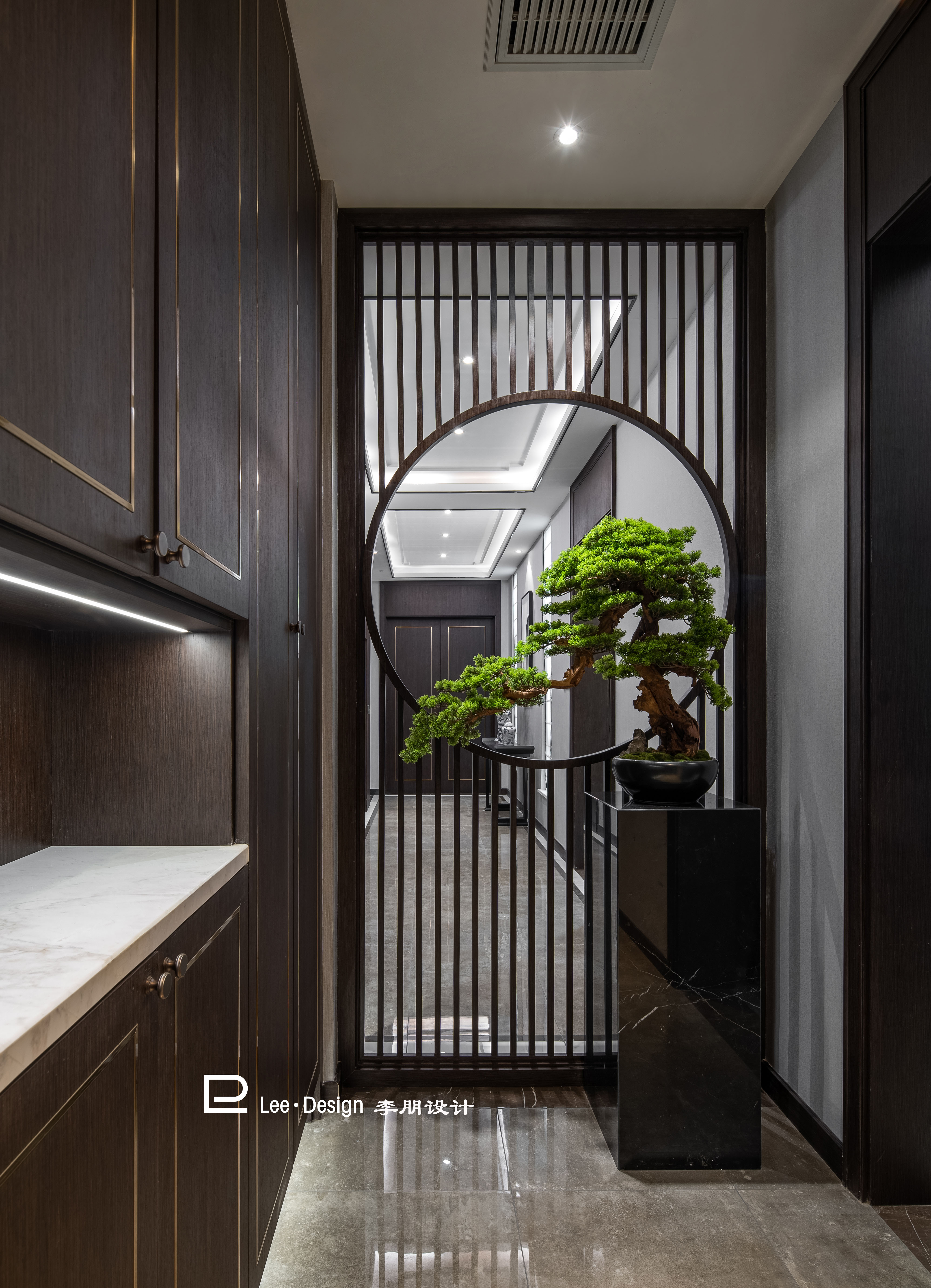 空间意境:结合整个楼盘的徽派建筑风格,营造出一种内敛的中式风格