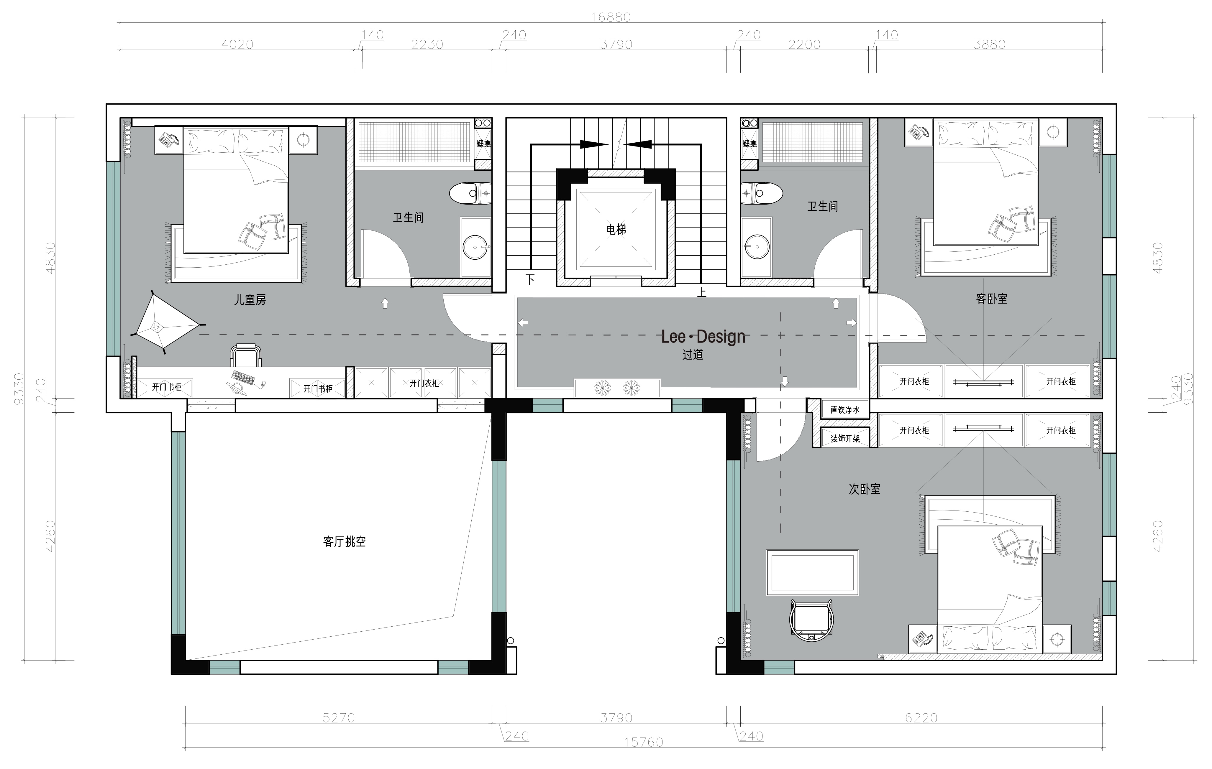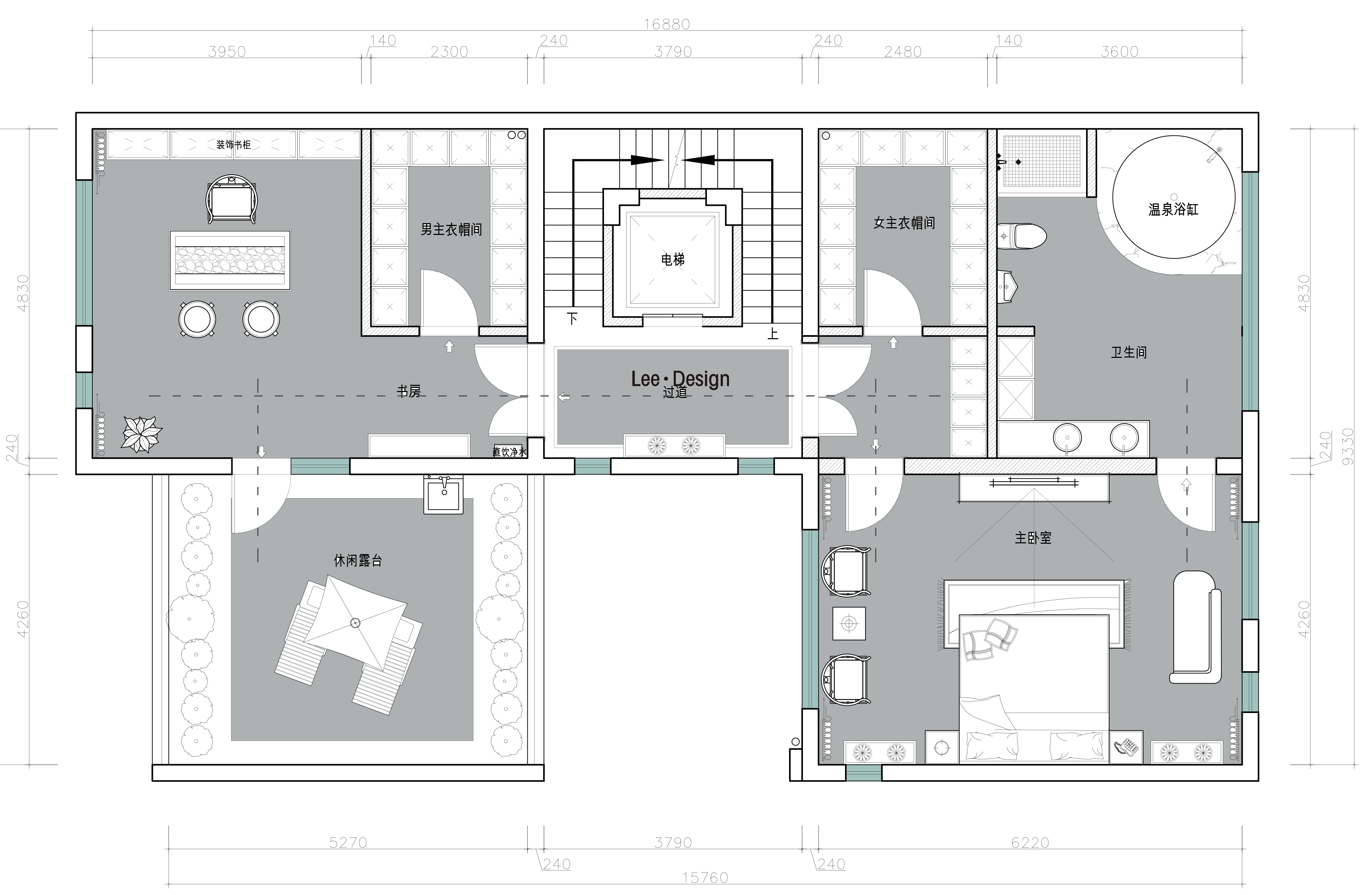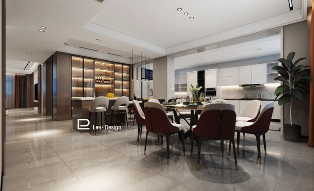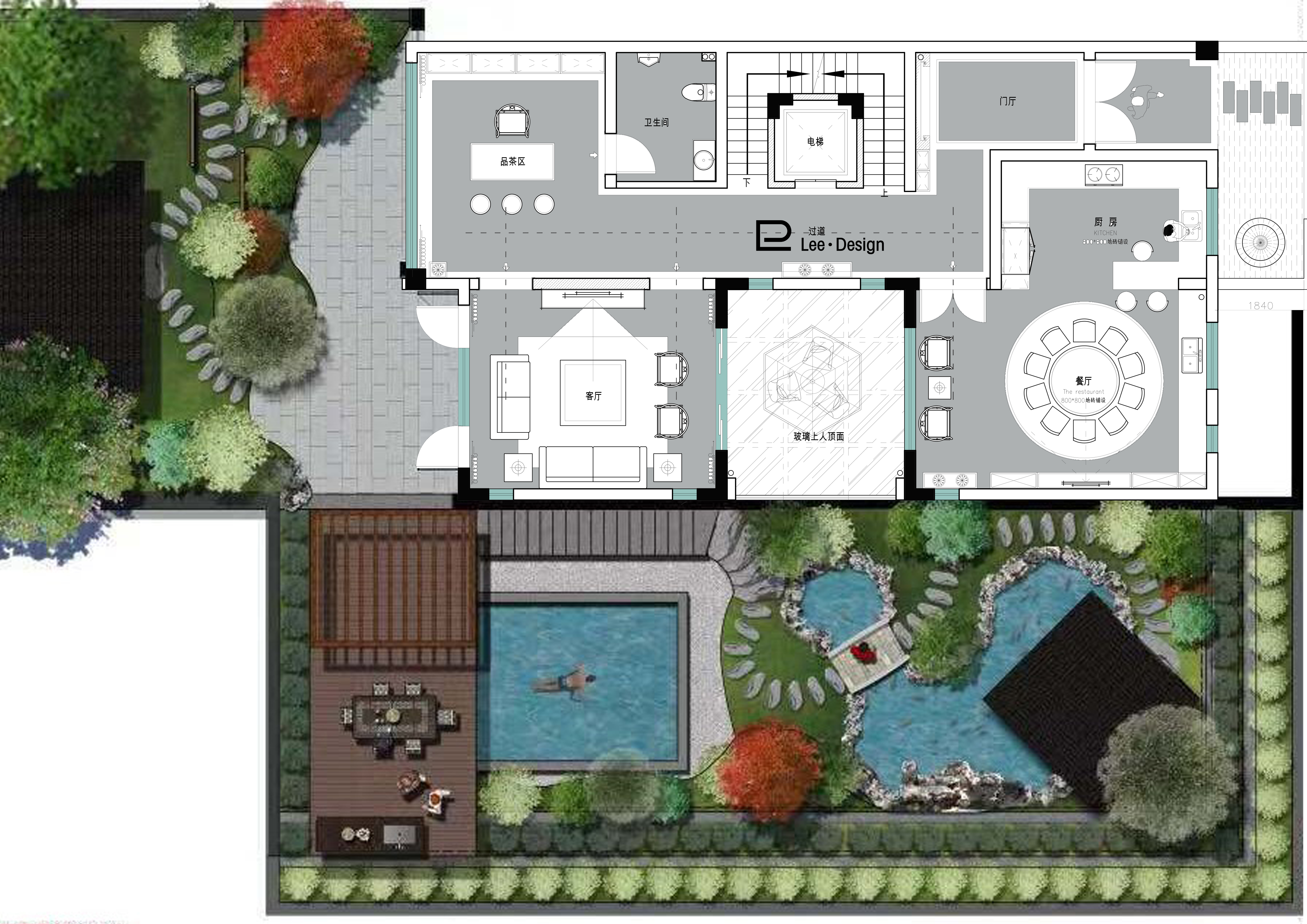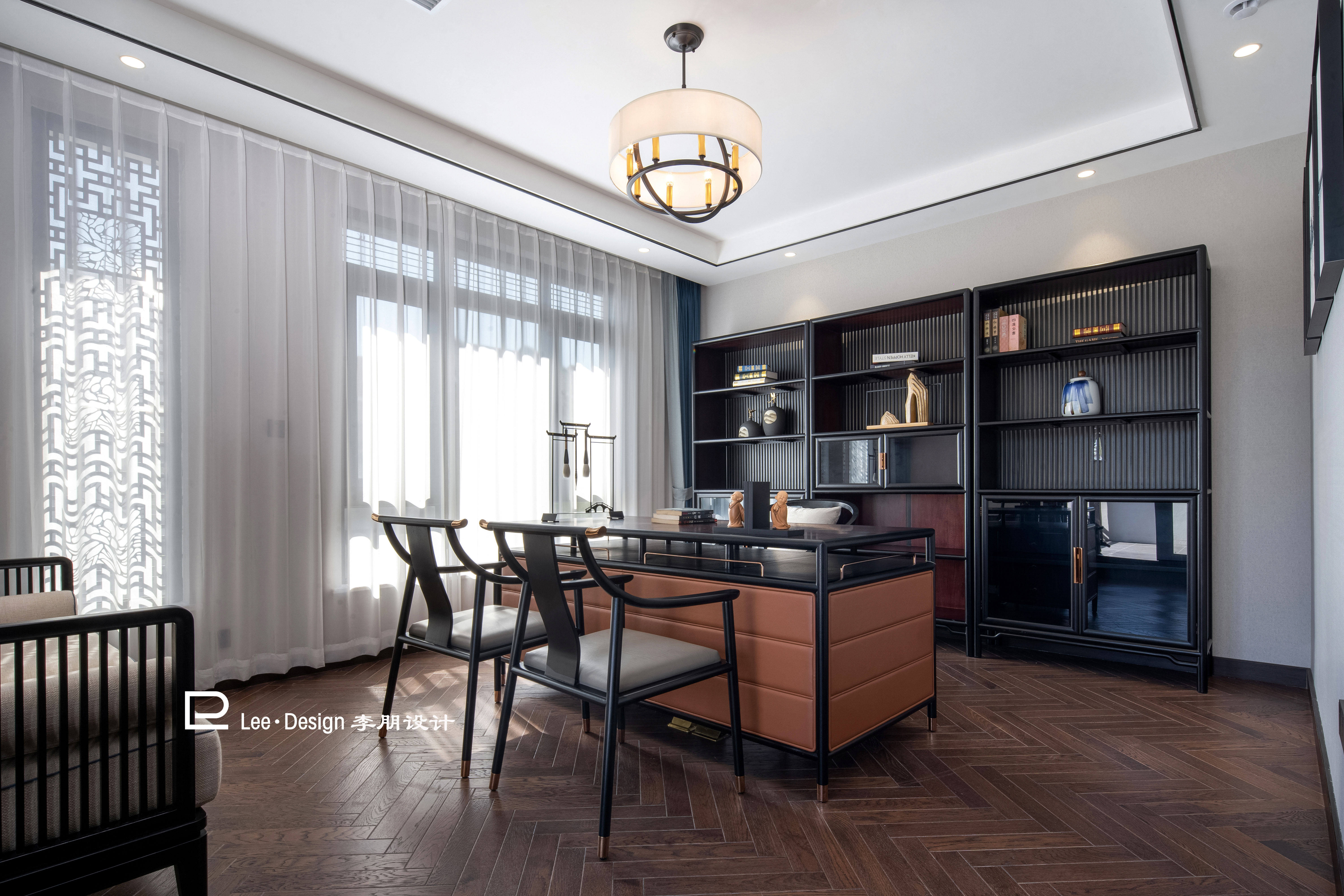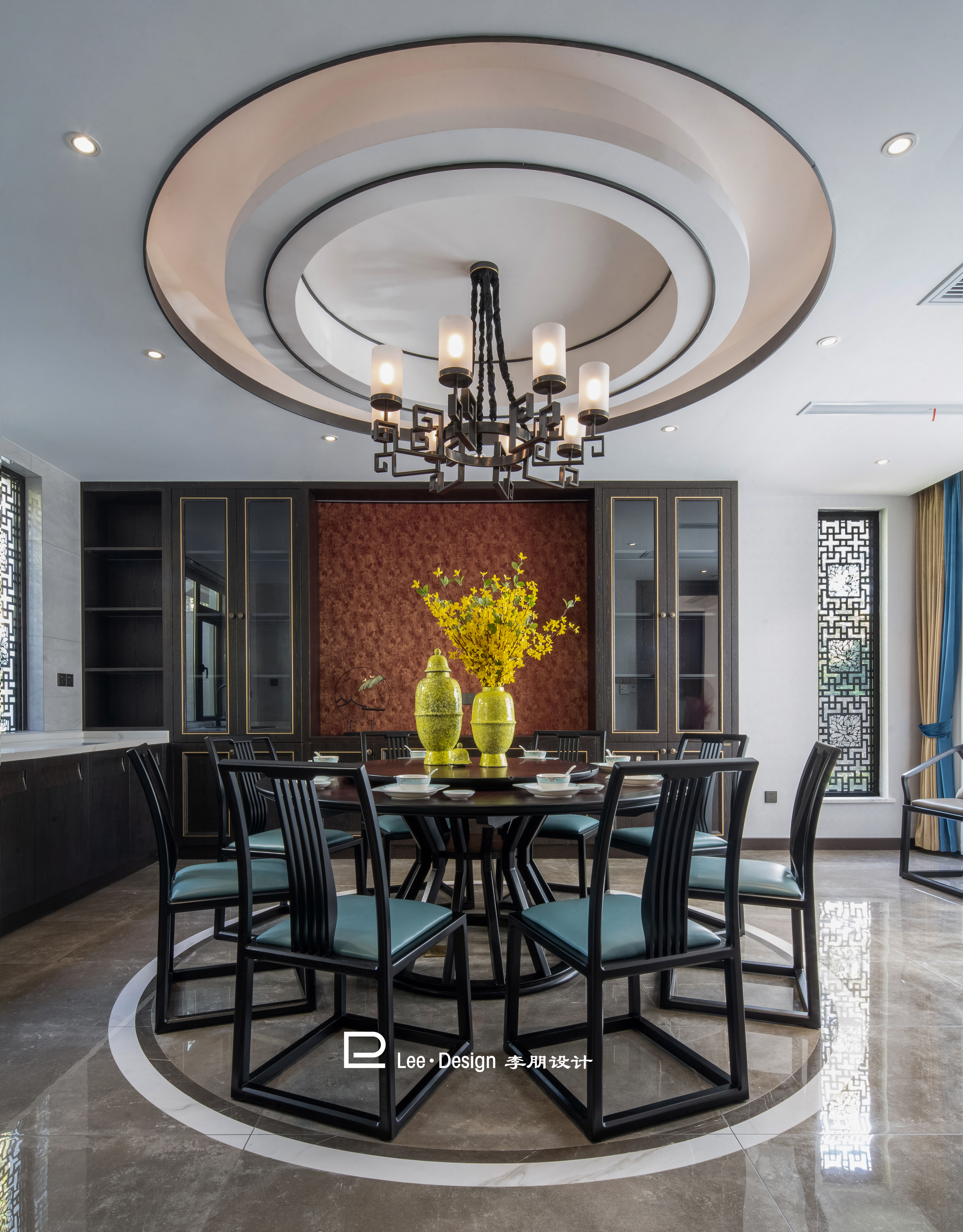 空间意境:结合整个楼盘的徽派建筑风格,营造出一种内敛的中式风格
