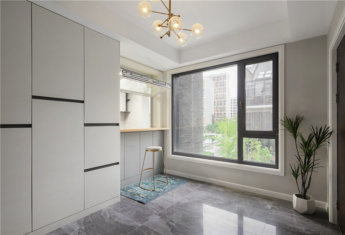 入户电梯进门,以块面为背景暗藏换鞋功能,打开厨房与玄关之间以增加空间互动性,孩子放学回来即可感受到母亲厨房料理的烟火气,家的温度油然而生;