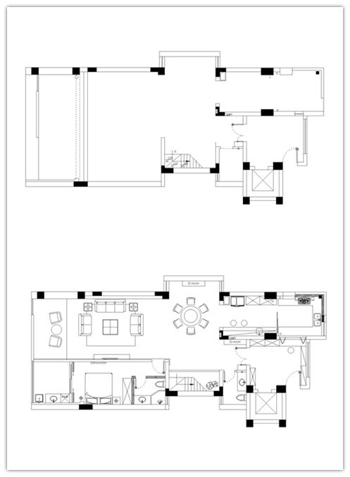 一层以公共活动区域为主;厨房延伸至建筑北边以增加采光;