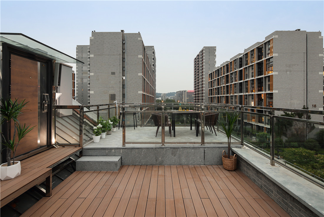 三层阁楼打造多功能集影视,孩童绘画工作为一体的休闲空间,同时巧妙设置一升降楼梯,打开老虎窗实现屋顶露台的户外休闲空间。