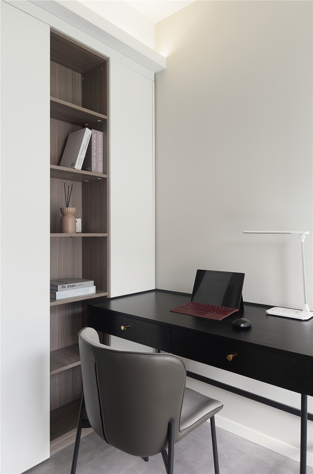 打开书房空间,将其与玄关鞋柜结合,增强储物功能的同时扩大空间感;