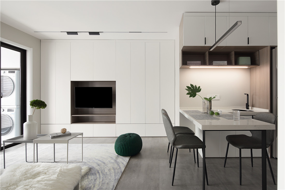 空间因人而更有爱,因有光而更温暖;本案是年轻的新婚夫妇,平日的工作忙碌几乎占用了两个人所有的业余时间,所以业主希望未来的家虽然小但是不乏精致温馨。我们以充分的收纳和干净的块面来处理空间以减少人的时间被琐碎事物的干扰,同时用功能叠加的方式加强使用性,以增加空间的开放感;