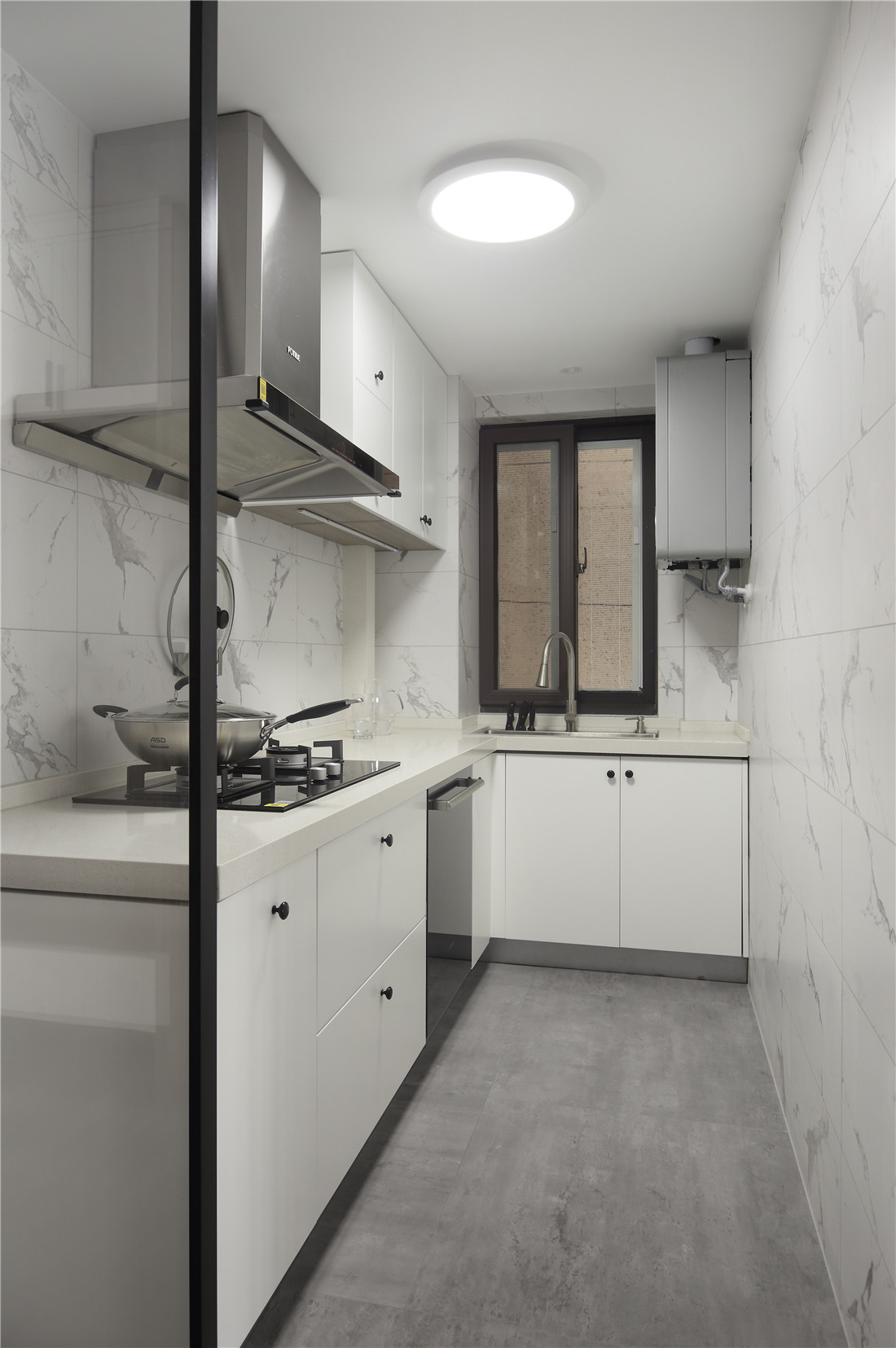 厨房采用外挂移门,常态下尽可能与餐厅融为一体,让人与人在空间中更好的互动;