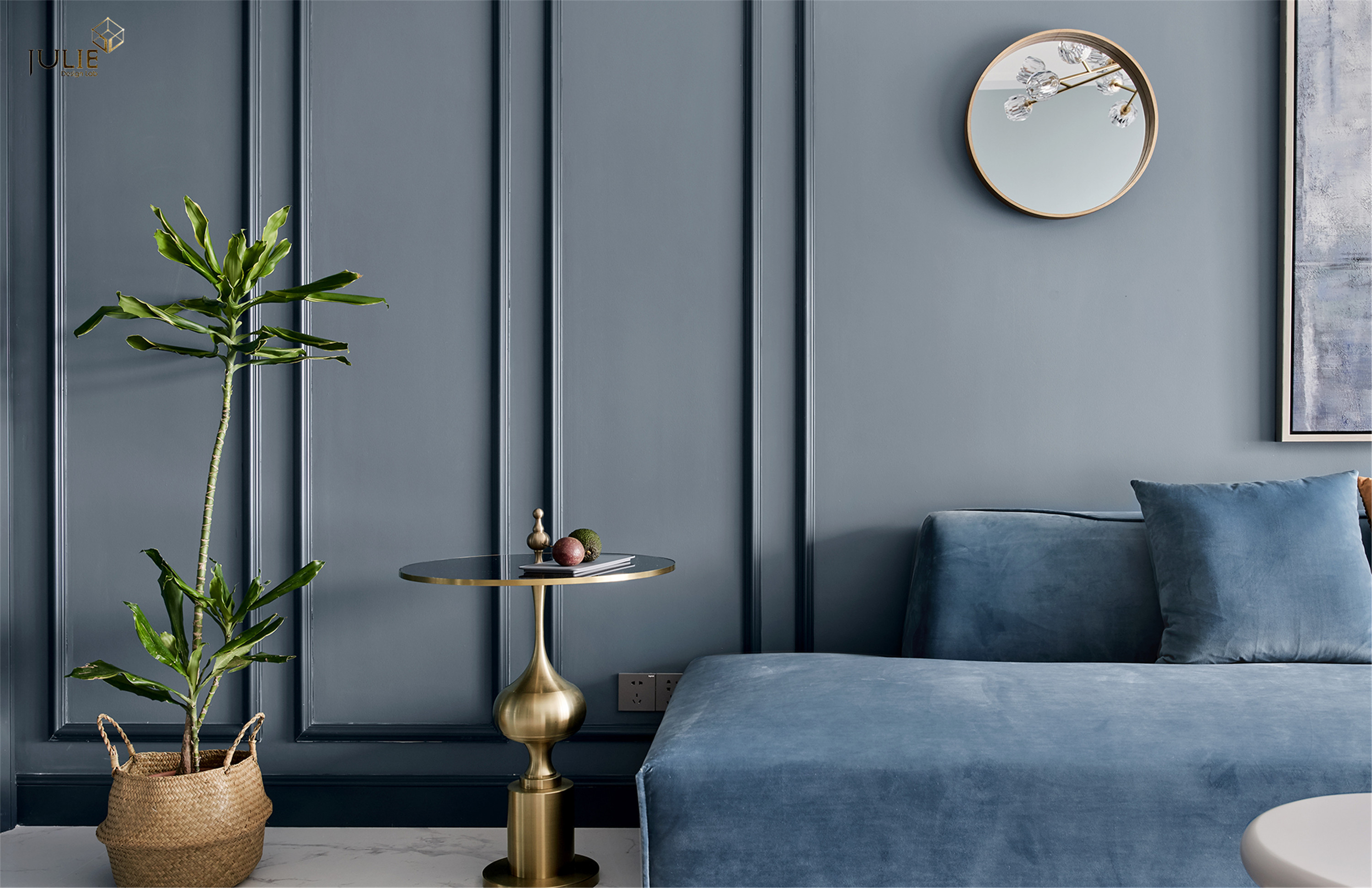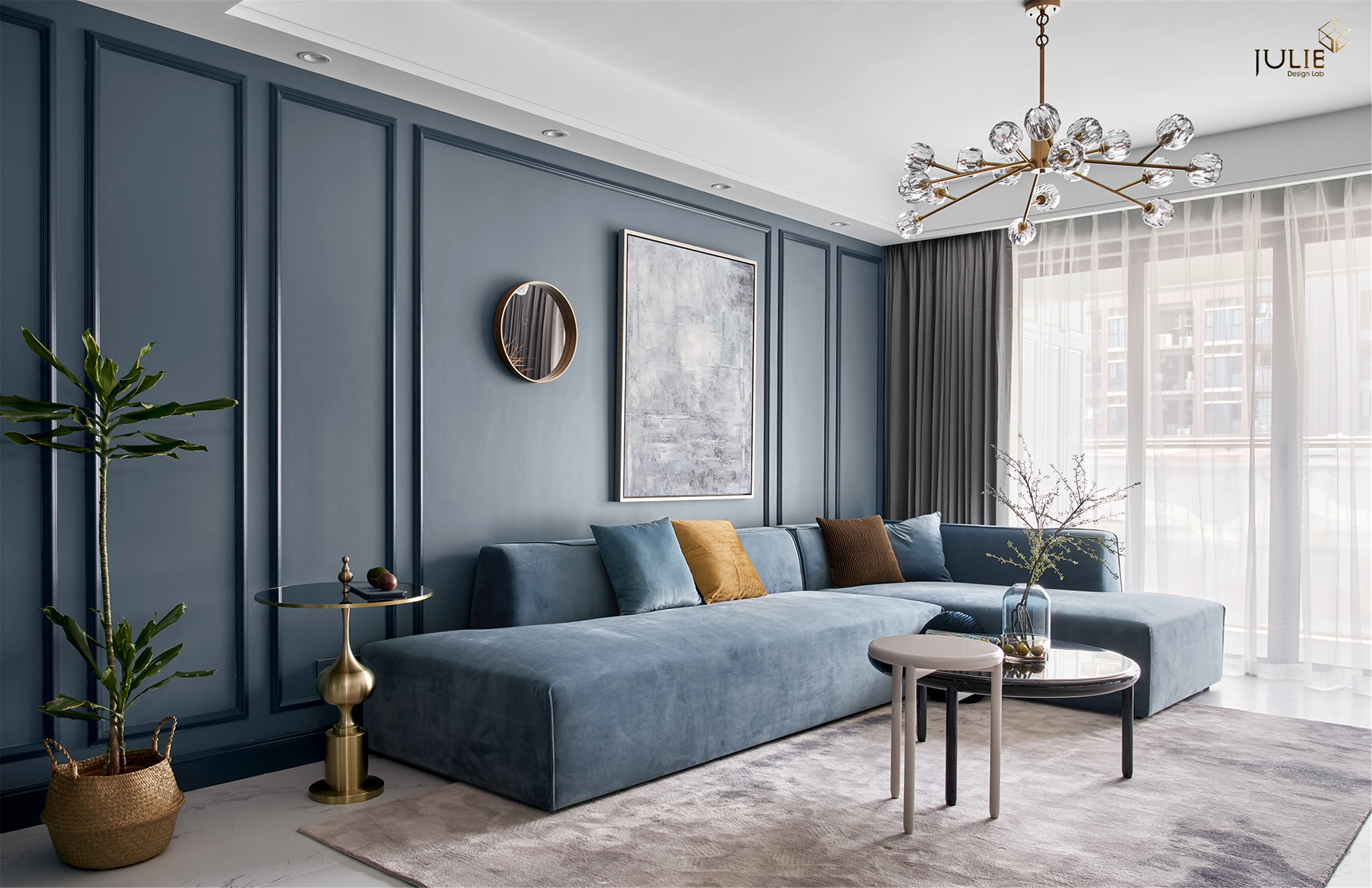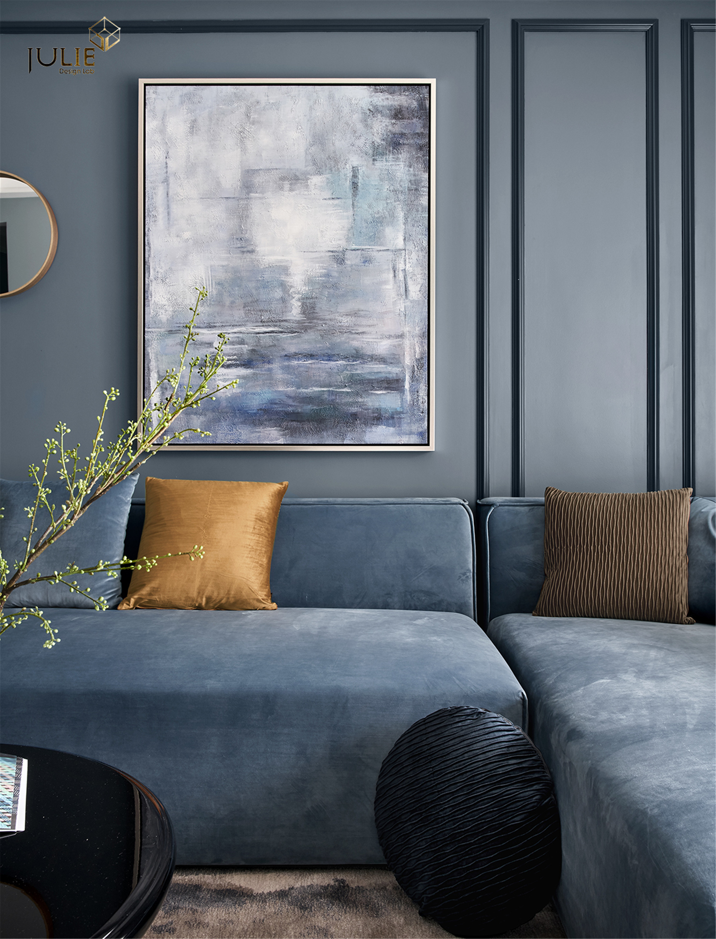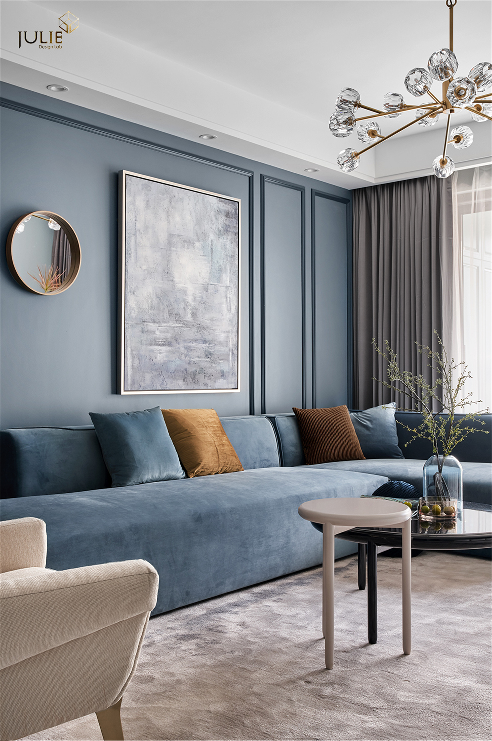 项目定位:打破常规的居家配色,采用雾霾蓝做主色调,让人沉静在轻松的氛围当中。