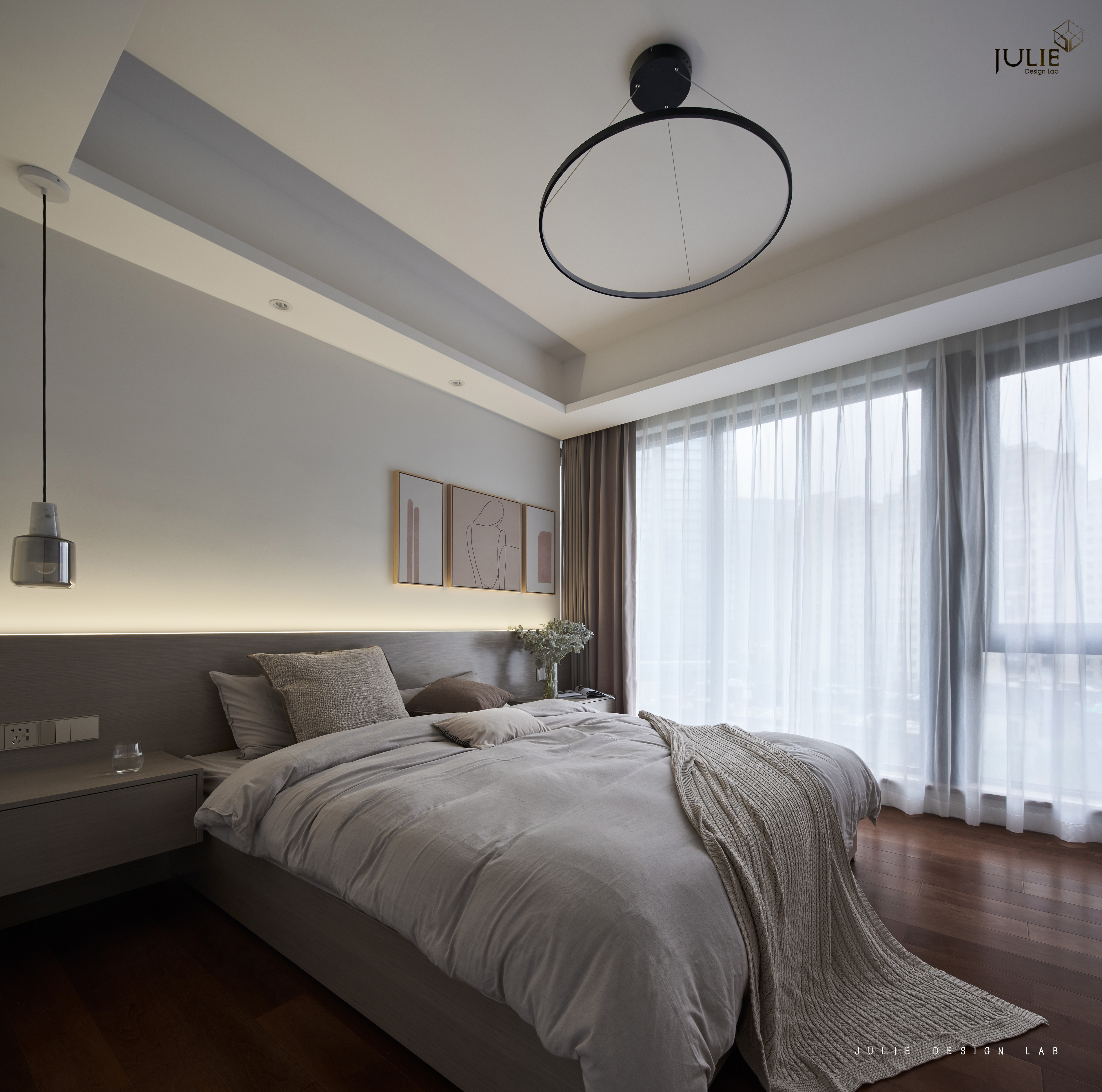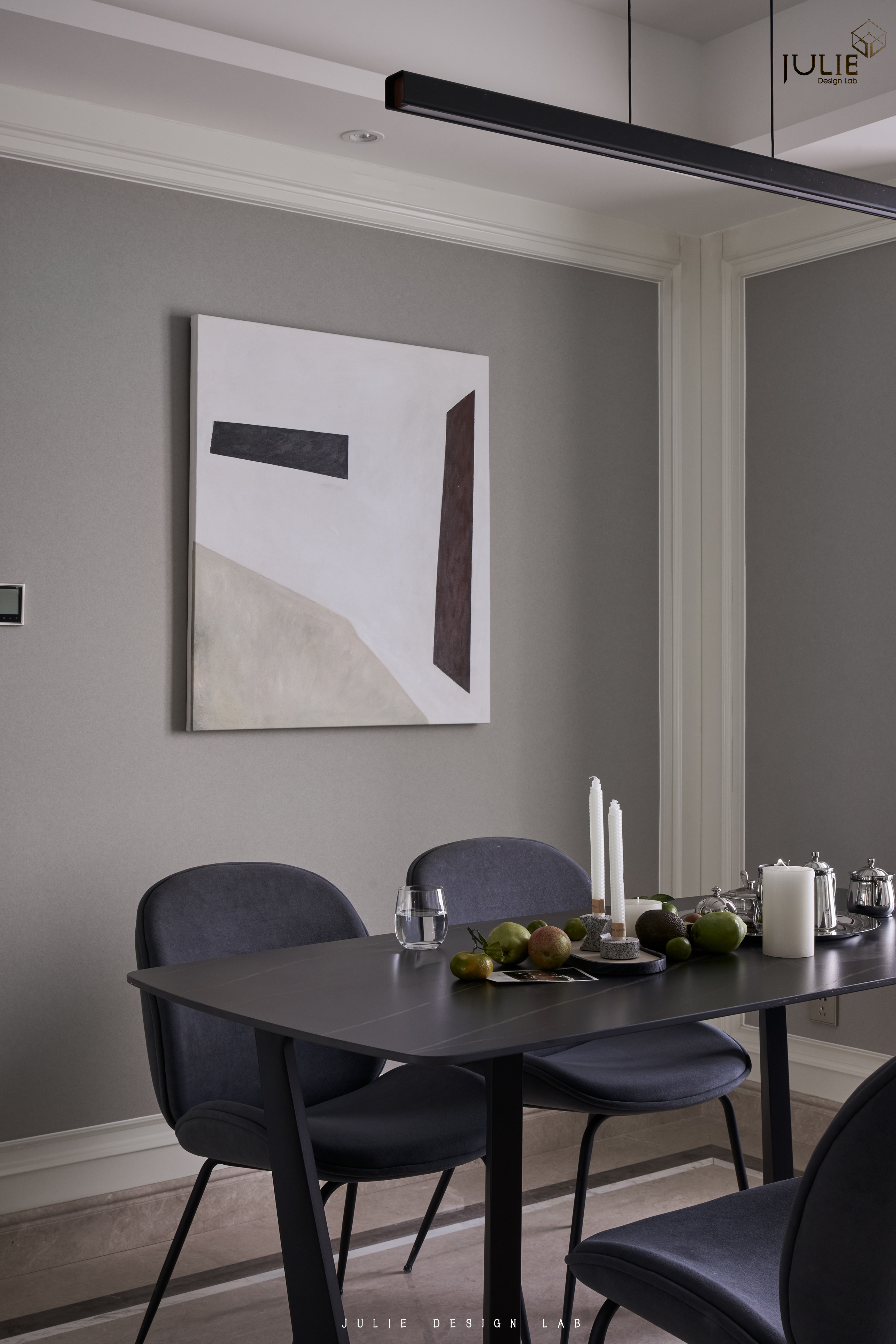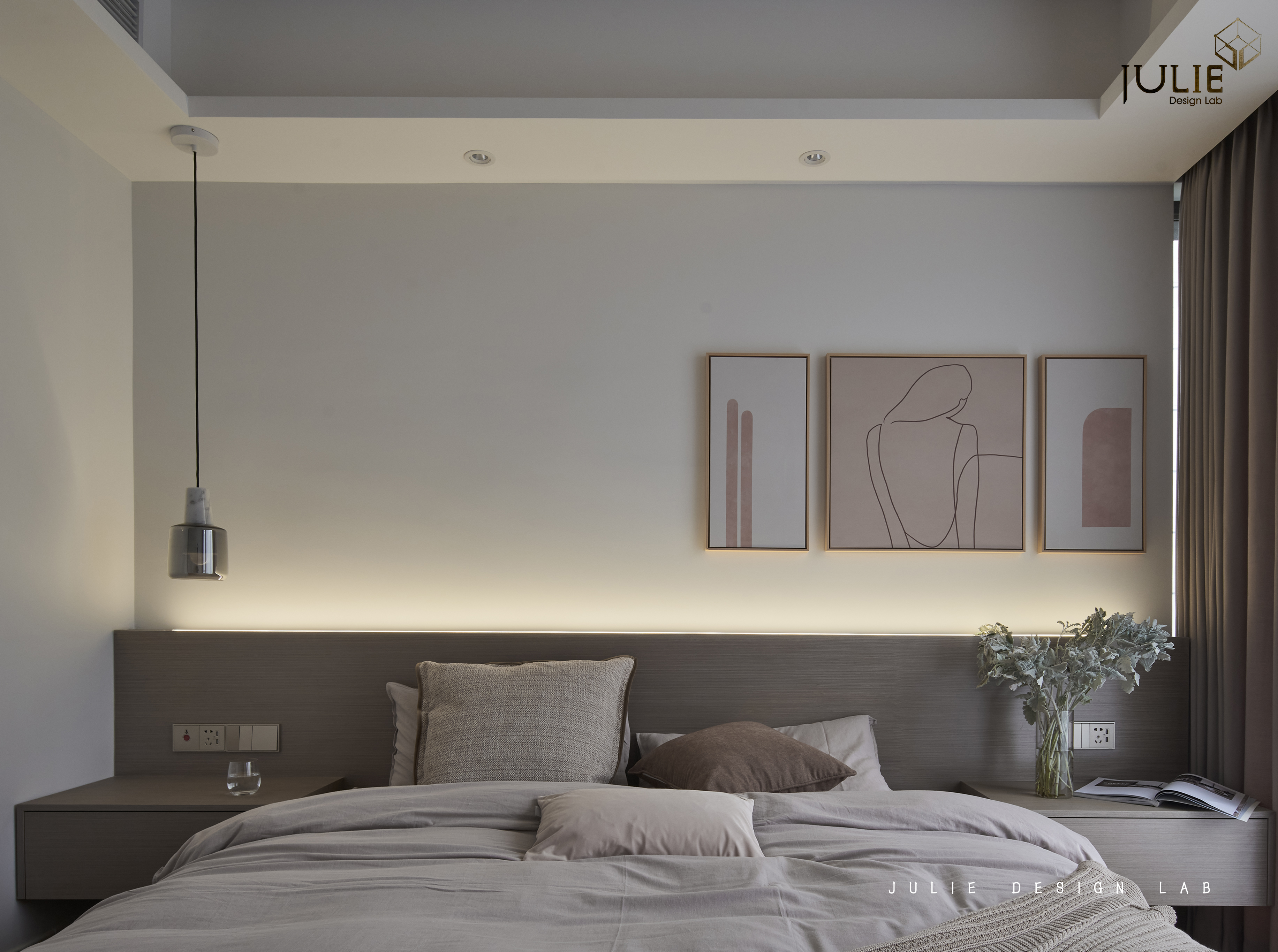 项目定位:客户是一对新婚年轻夫妇,喜欢现代简约,原有的精装有一些偏美式的线条,设计通过软装悄无声息的变成现代简约